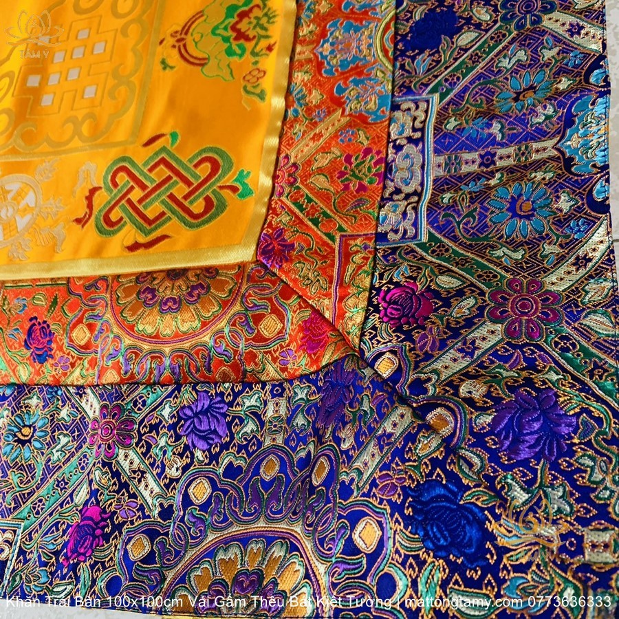 Kích thước: 100x100cm.Xuất xứ: Tây Tạng. Công dụng: trải bàn thờ, trang trí phòng thờ - tịnh thất Mật tông...