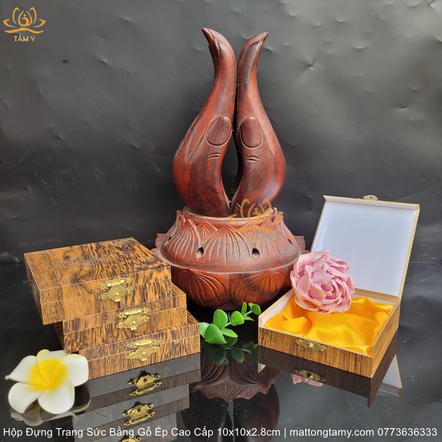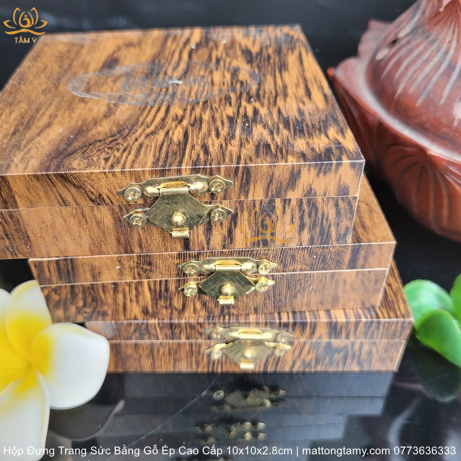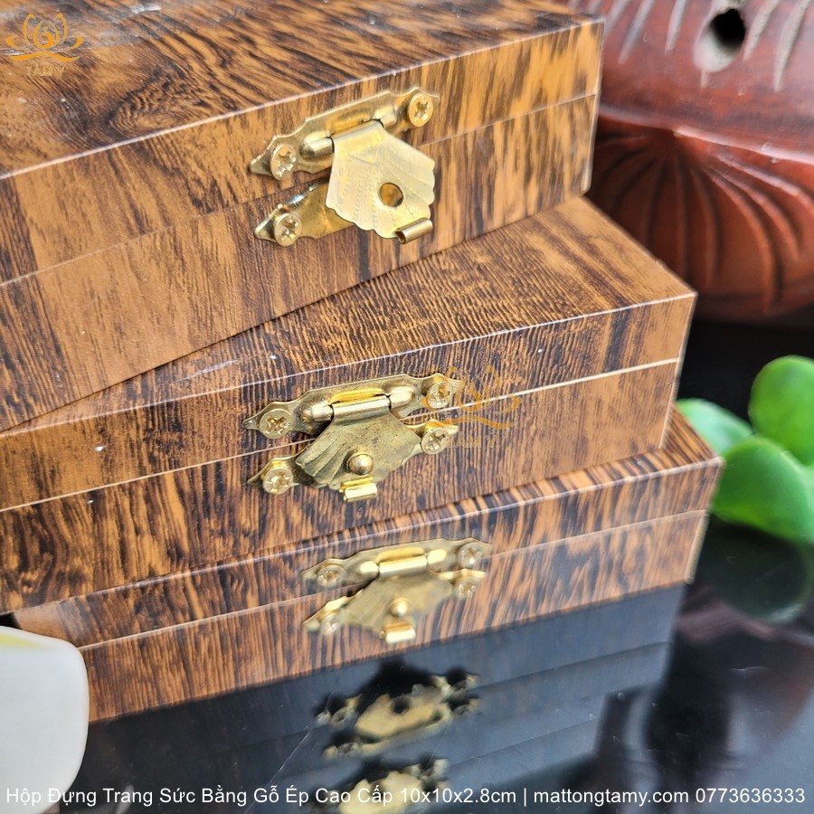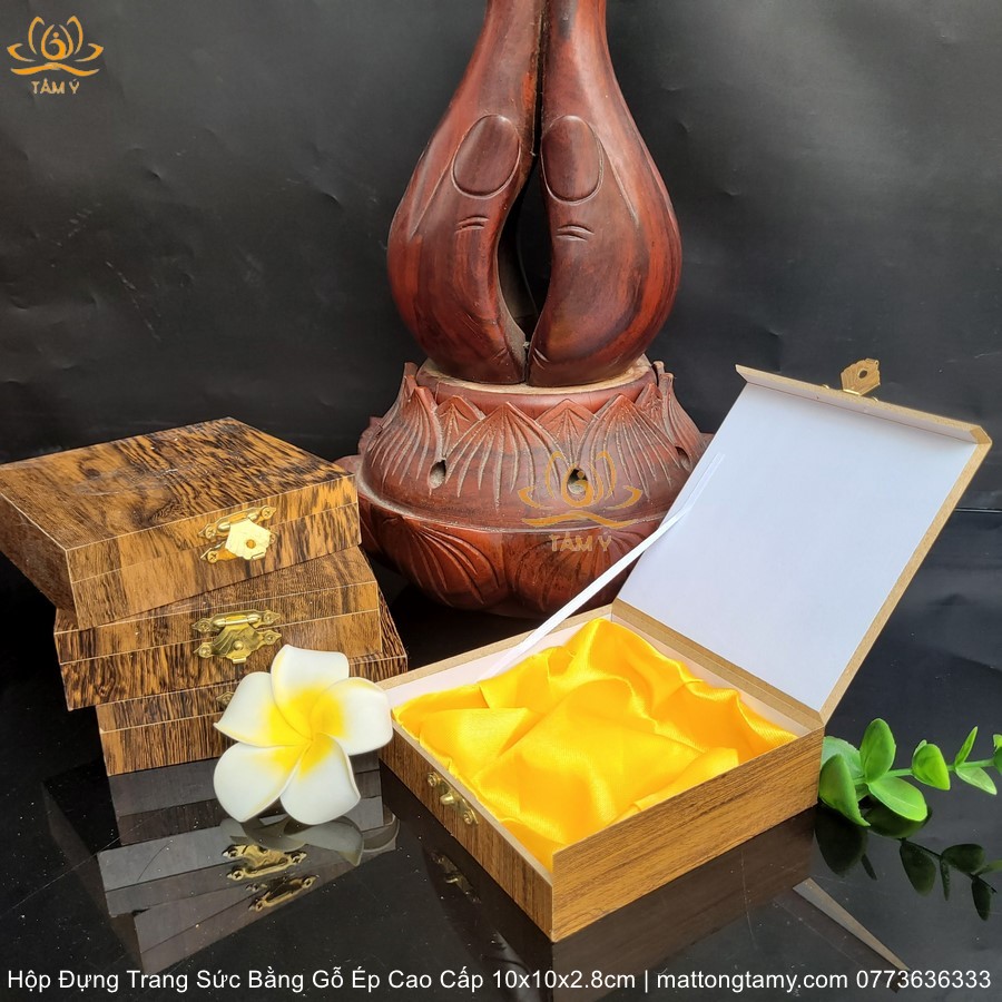 |10x10x2.8cm| Hộp Đựng Trang Sức, Dây Chuyền, Vòng Cổ, Nhẫn,... Bằng Gỗ Ép Cao Cấp