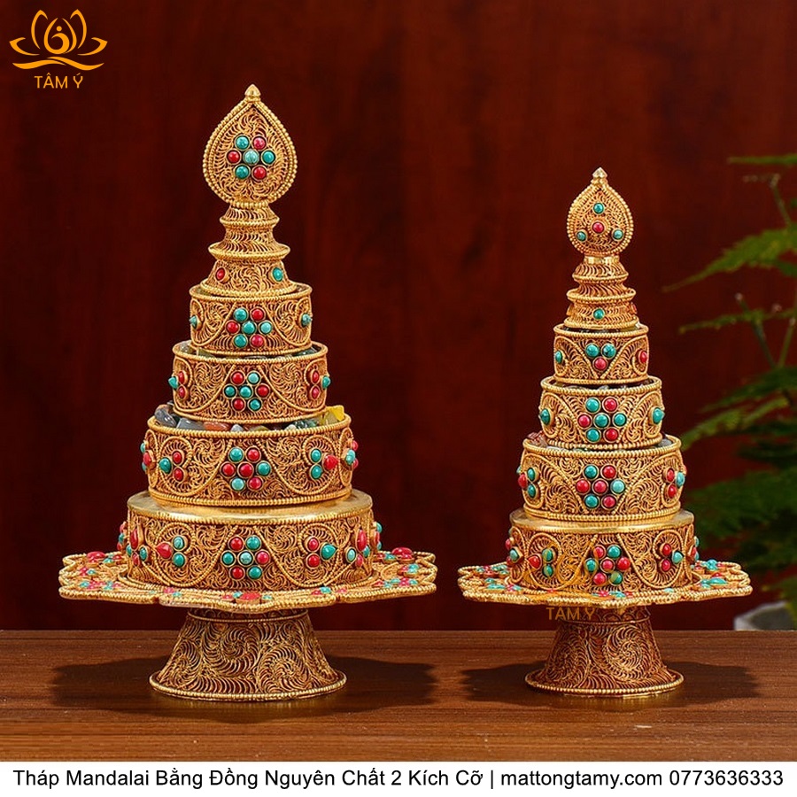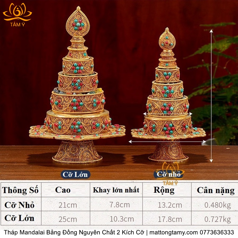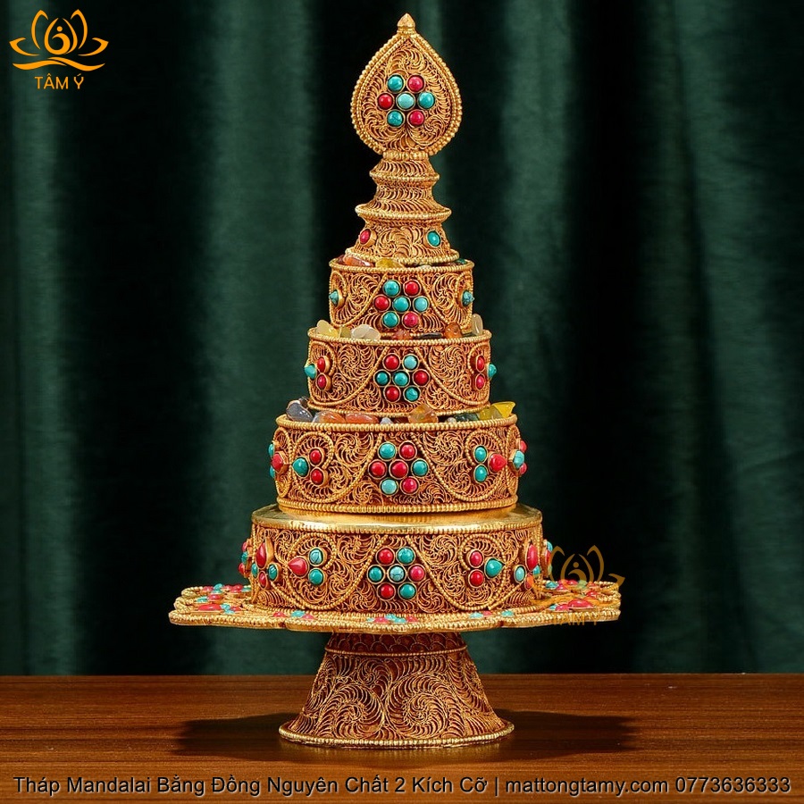 |2 Kích Cỡ| Tháp Madala - Núi Tu Di, Bằng Đồng Nguyên Chất Đính Đá, Thiết Kế Sang Trọng TMDL56