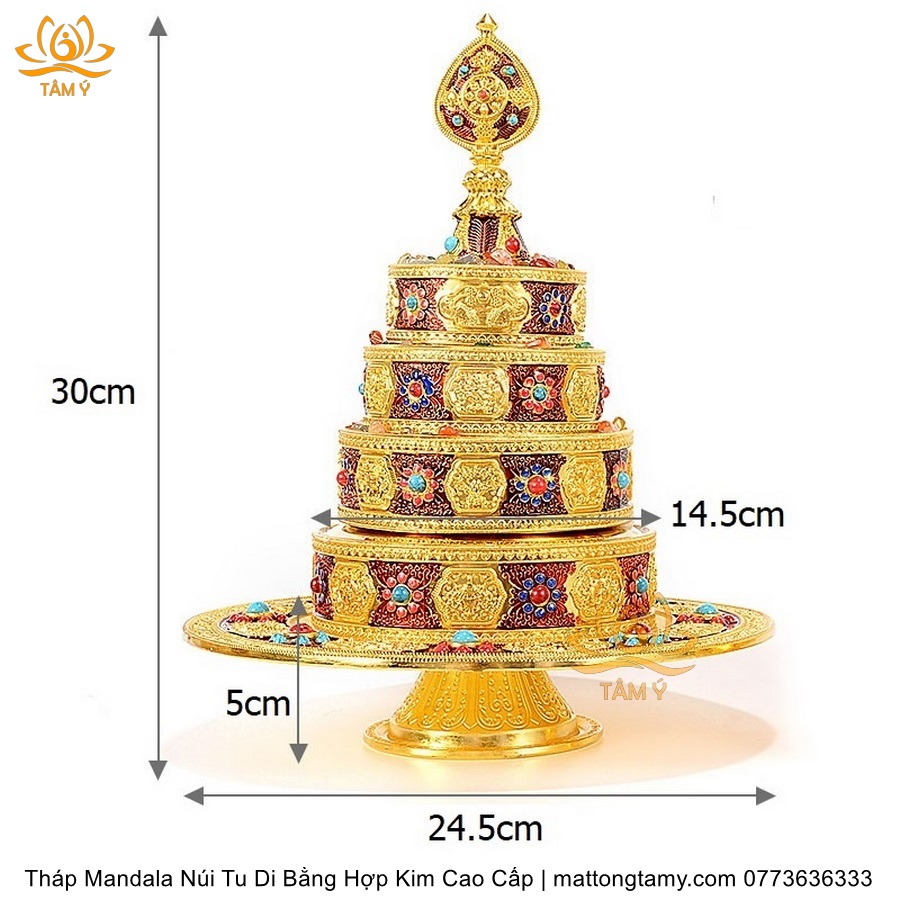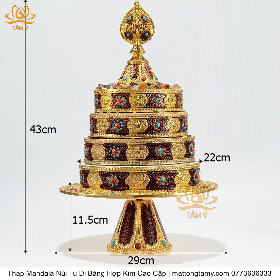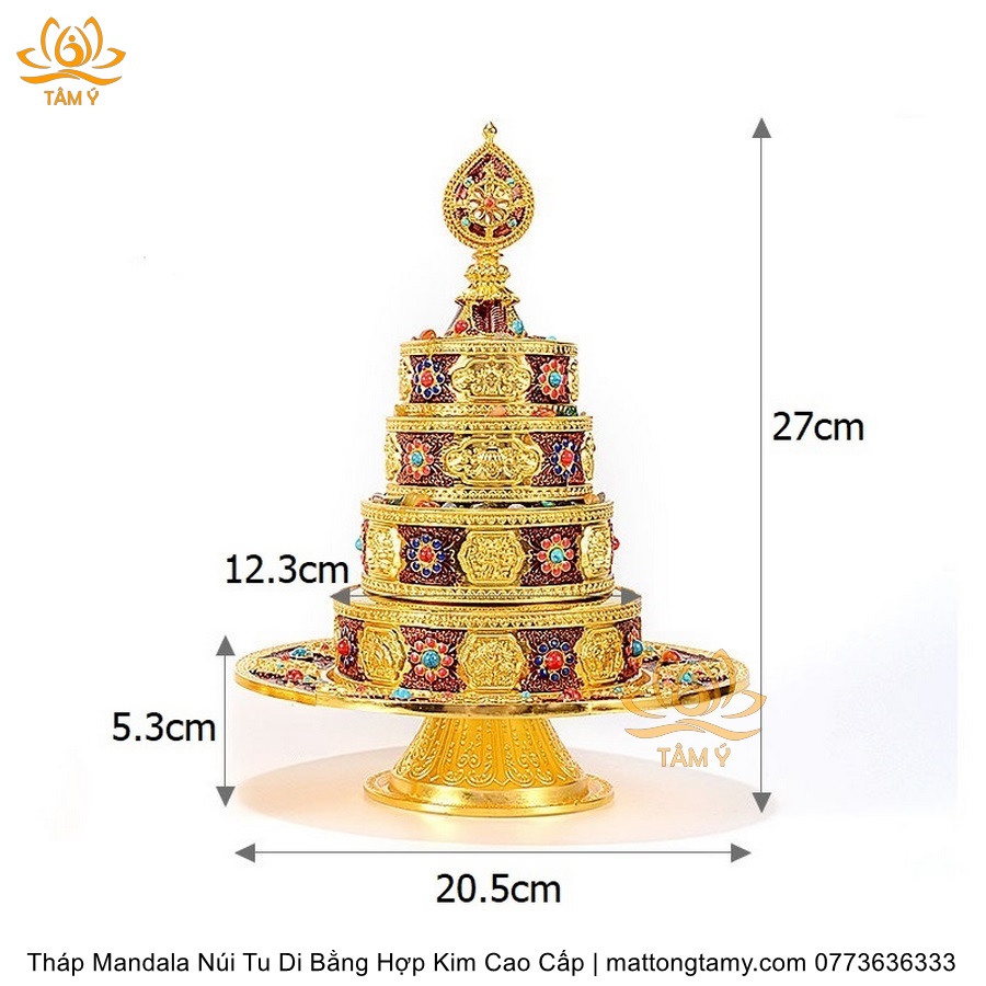 |6 Kích Thước| Tháp Madala - Núi Tu Di, Bằng Đồng Nguyên Chất, Thiết Kế Độc Đáo Cổ Điển TMDL122