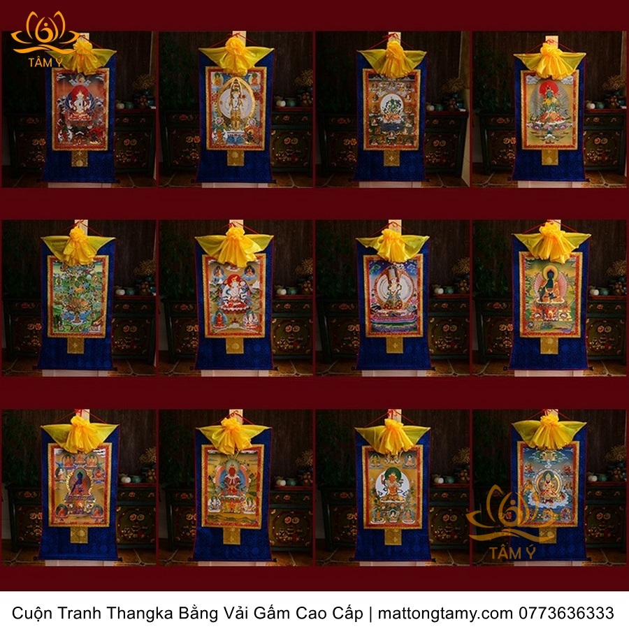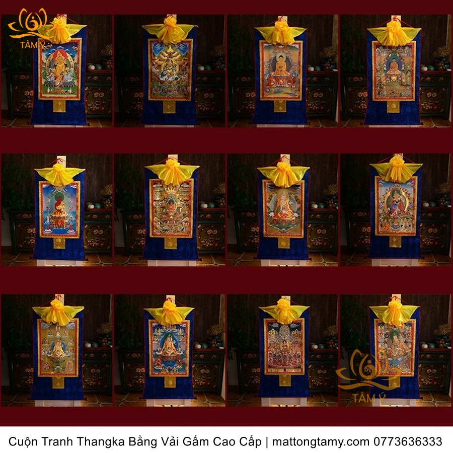 |25 phân loại| Tổng Hợp Cuộn Tranh ThangKa Các Vị Phật - Bồ Tát Mật Tông Bằng Vải Gấm Cao Cấp, Kiểu 2, TCT104
