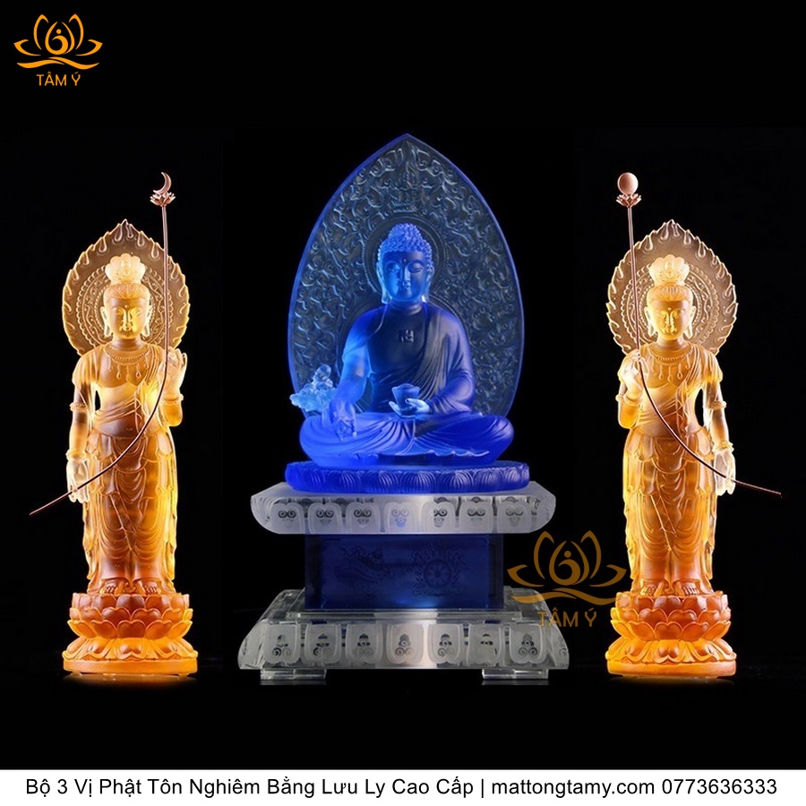 |3 Kích Cỡ| Bộ Tượng 3 Vị Đông Phương Tam Thánh Bằng Lưu Ly Cao Cấp Thiết Kế Sang Trọng TP136