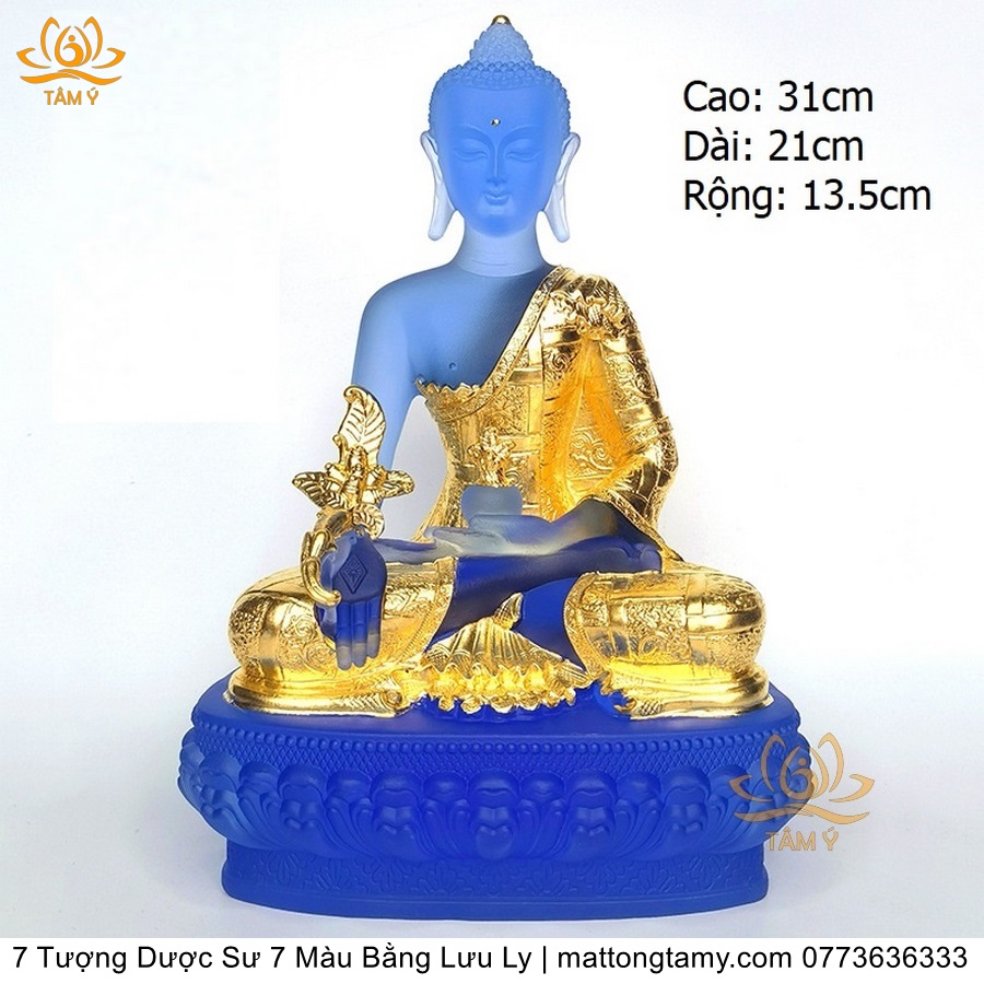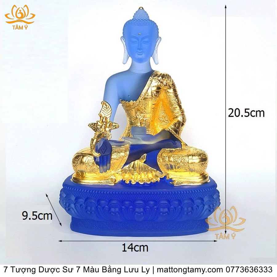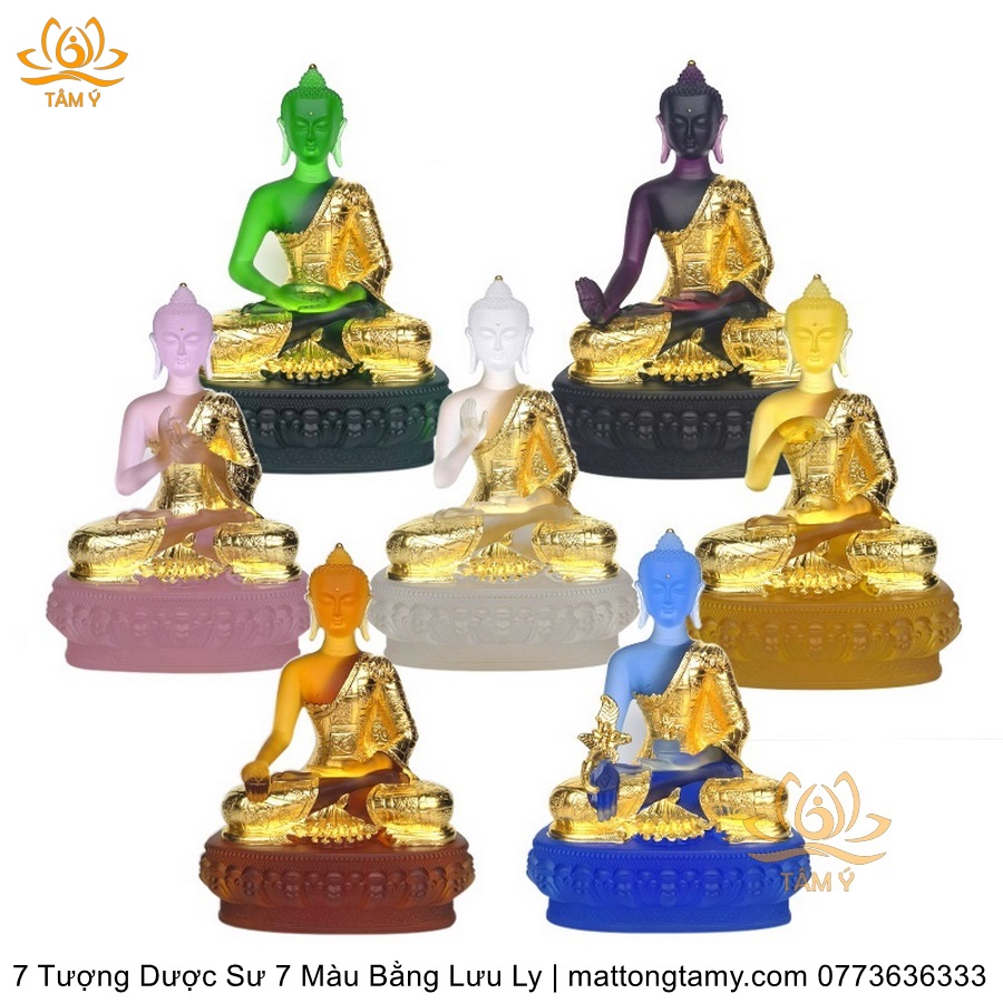 |3 Kích Thước| Bộ 7 Màu Tượng Phật Dược Sư (Dáng Ngồi) Bằng Lưu Ly Cao Cấp Mạ Vàng Thiết Kế Sang Trọng TP259(2)