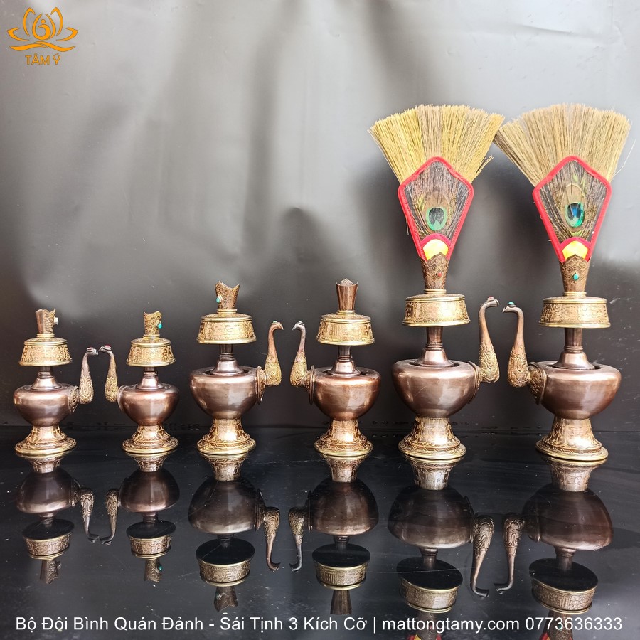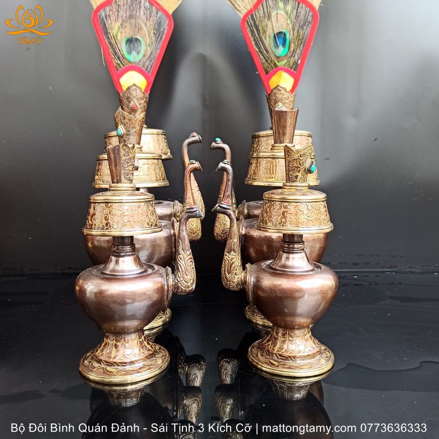 |3 Kích Thước| Bộ Đôi Bình Quán Đảnh - Sái Tịnh Bằng Đồng Nguyên Chất, Hàng Thủ Công Nepal