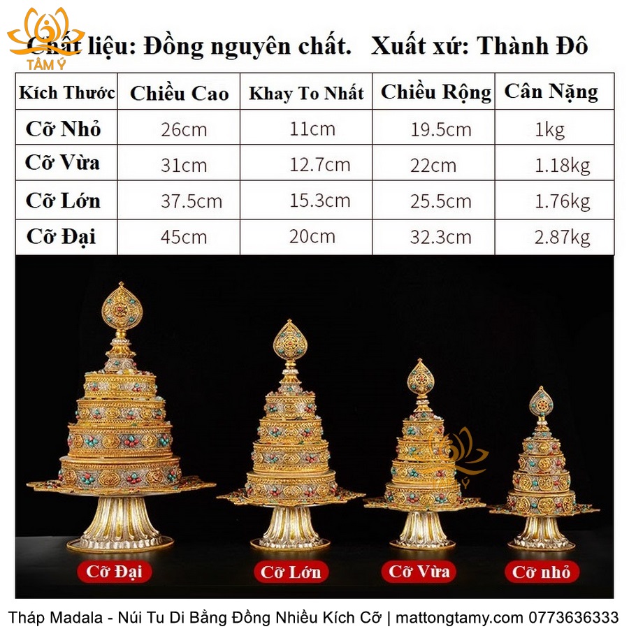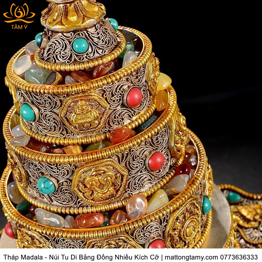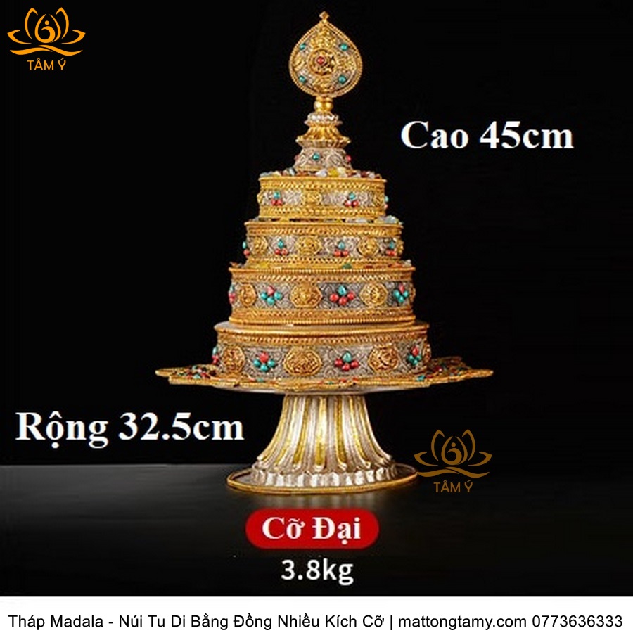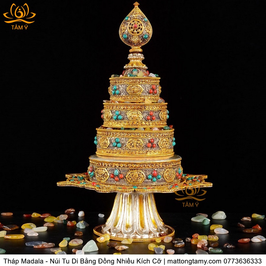 |4 Kích Cỡ| Tháp Madala - Núi Tu Di, Bằng Đồng Nguyên Chất Đính Đá, Thiết Kế Sang Trọng TMDL51