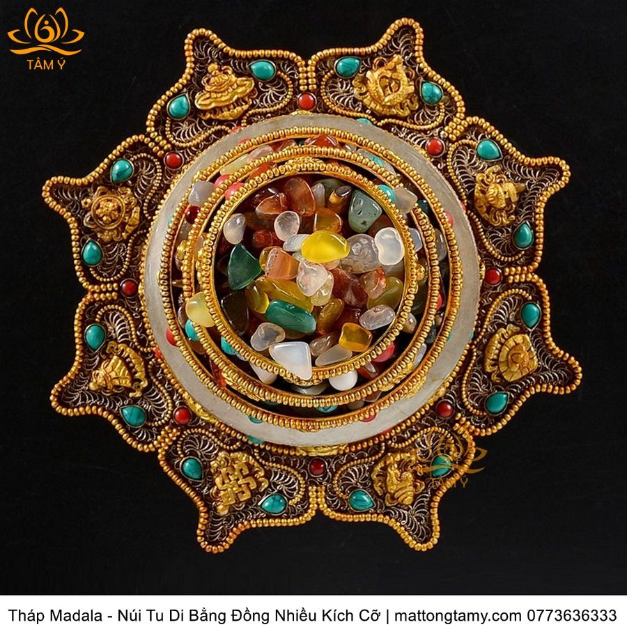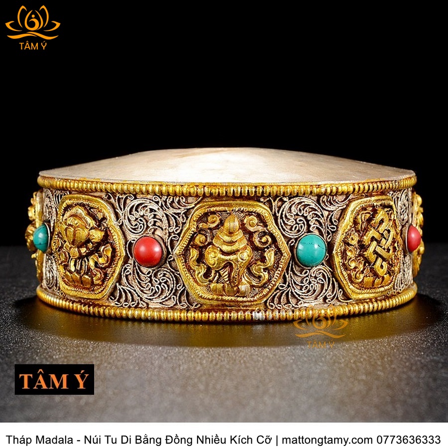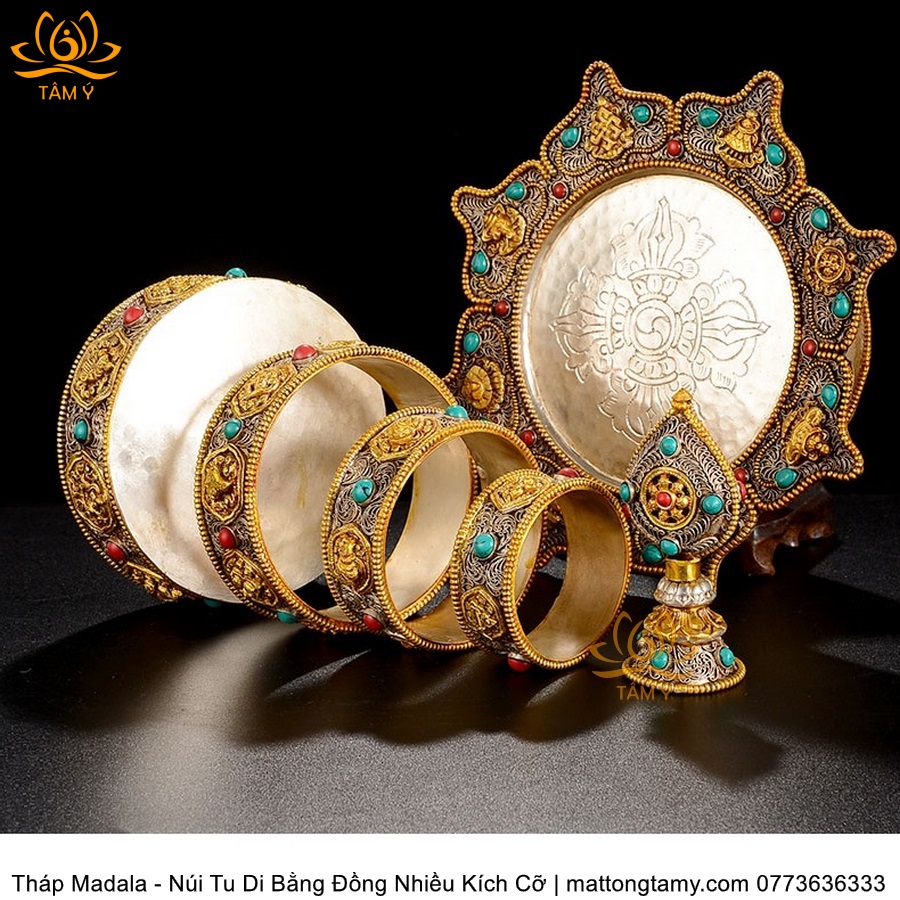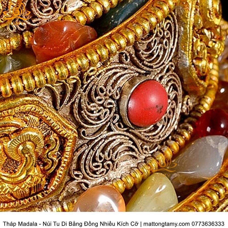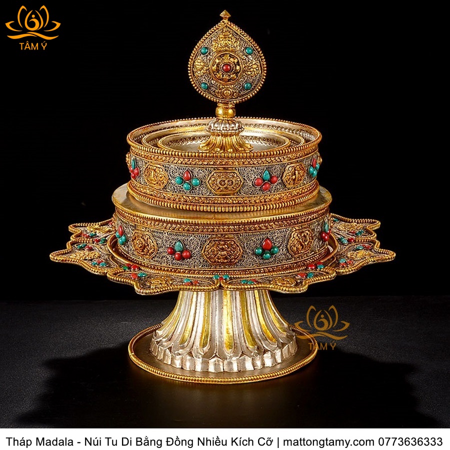 |4 Kích Cỡ| Tháp Madala - Núi Tu Di, Bằng Đồng Nguyên Chất Đính Đá, Thiết Kế Sang Trọng TMDL51