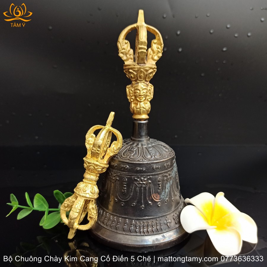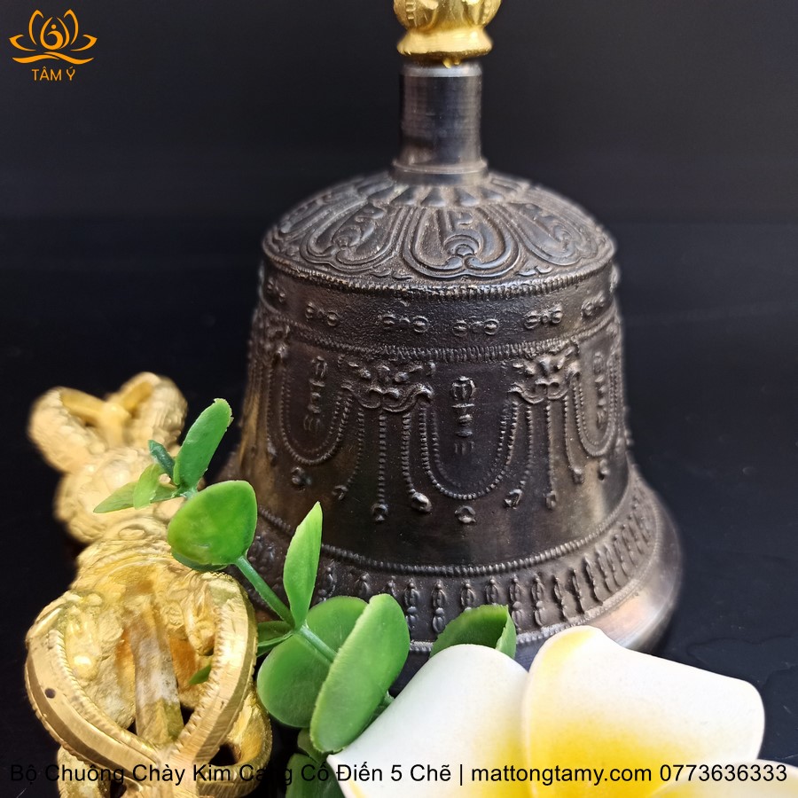 |5 Chẽ| Bộ Chuông Chày Bằng Đồng Nguyên Chất MS11, Họa Tiết Cổ Điển