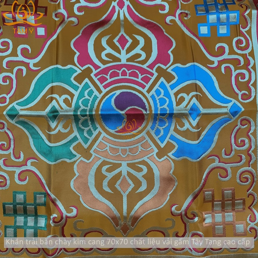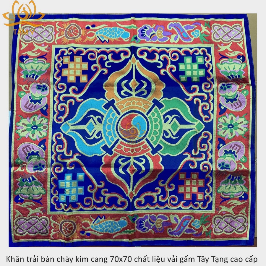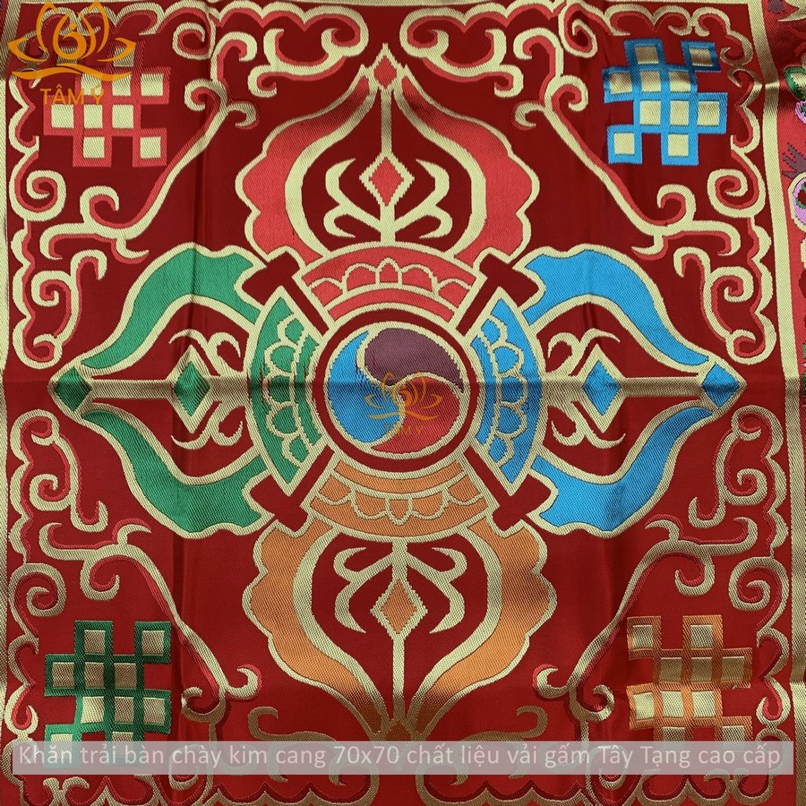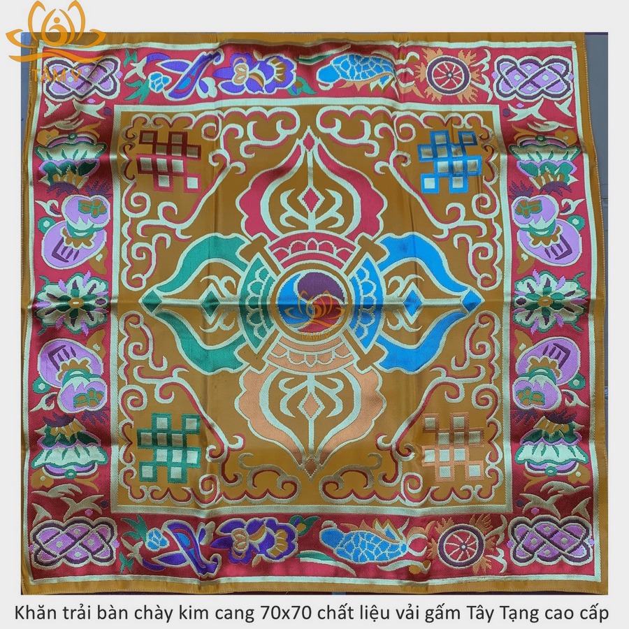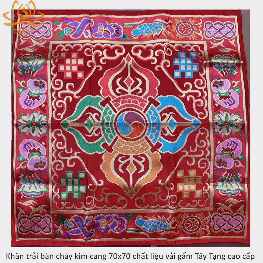 |70x70cm| Khăn trải bàn chày kim cang bát cát tường rất đẹp Mật Tông vải gấm Tây Tạng nhiều kích thước có lớp lót vải lụa KTB04