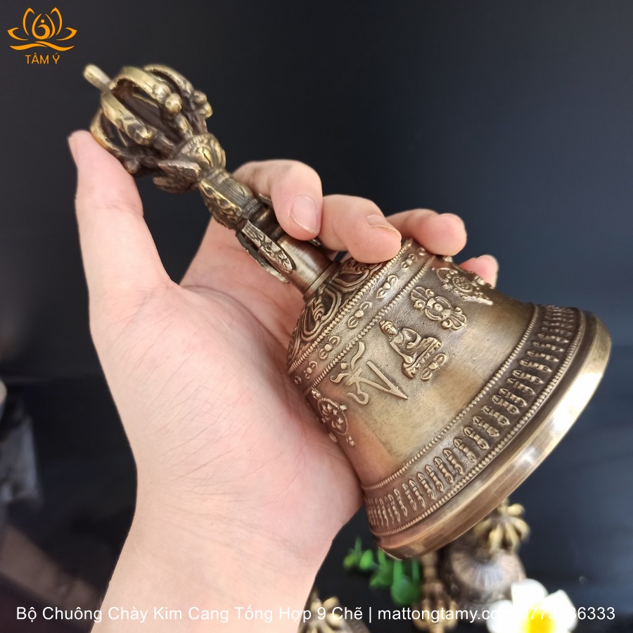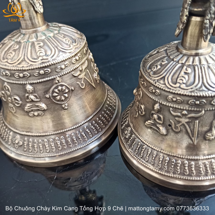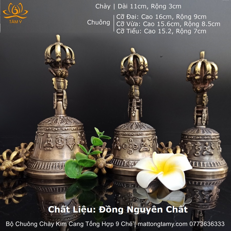 |9 Chẽ, 3 Kích Thước| Bộ Chuông Chày Bằng Đồng Nguyên Chất MS13, Họa Tiết Tổng Hợp
