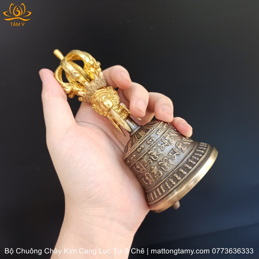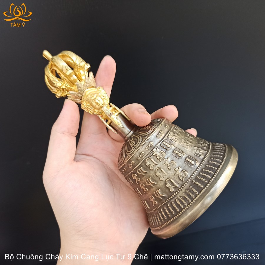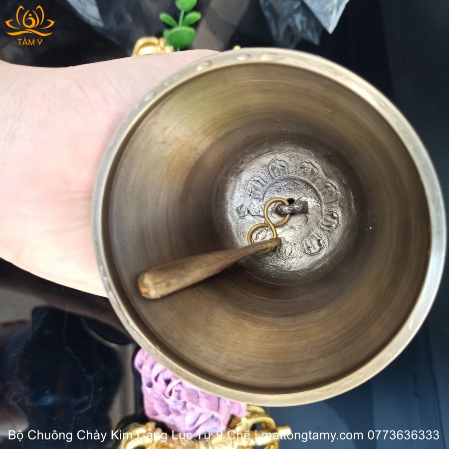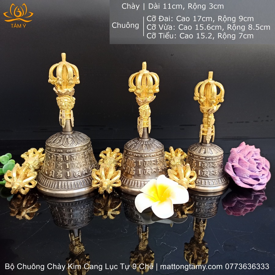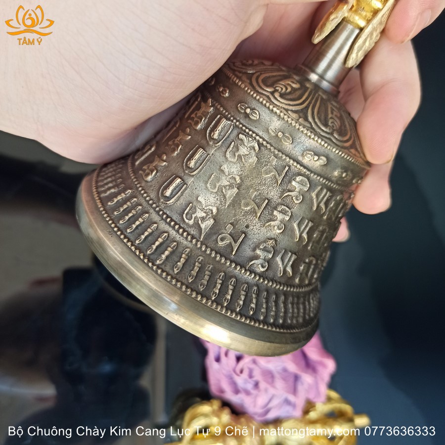 |9 Chẽ, 3 Kích Thước| Bộ Chuông Chày Bằng Đồng Nguyên Chất MS15, Om Mani Padme Hum