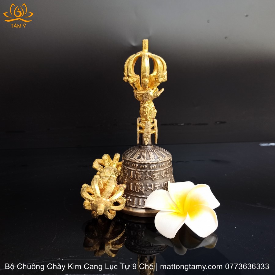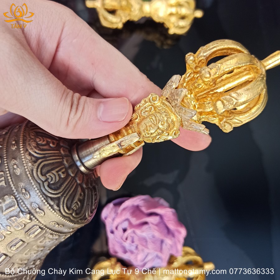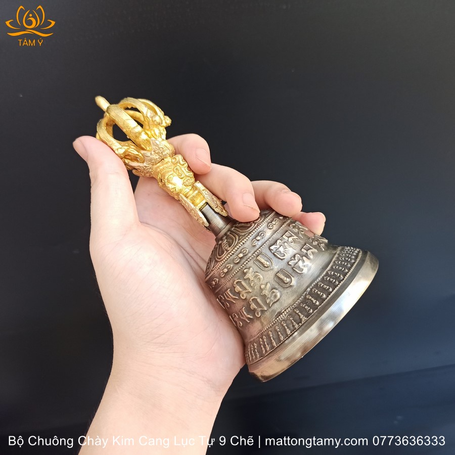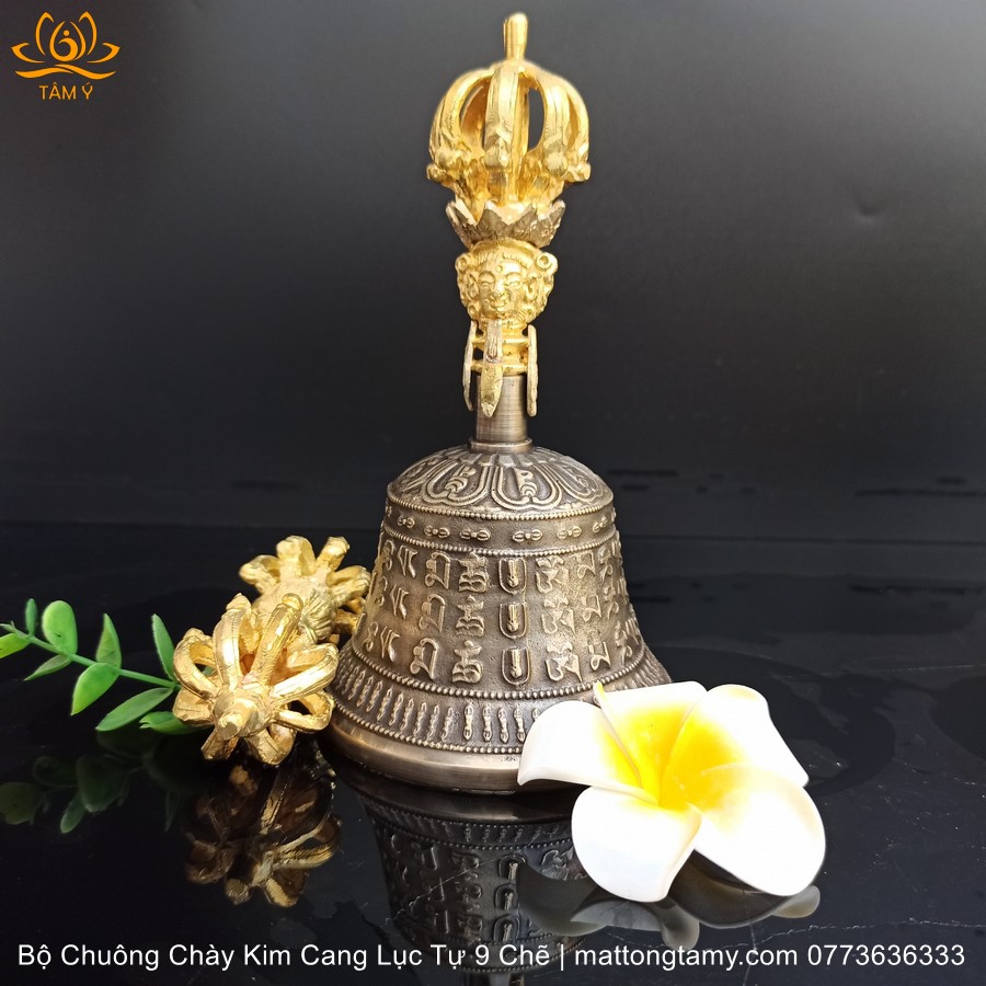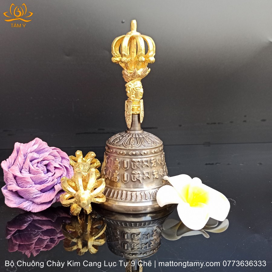 |9 Chẽ, 3 Kích Thước| Bộ Chuông Chày Bằng Đồng Nguyên Chất MS15, Om Mani Padme Hum