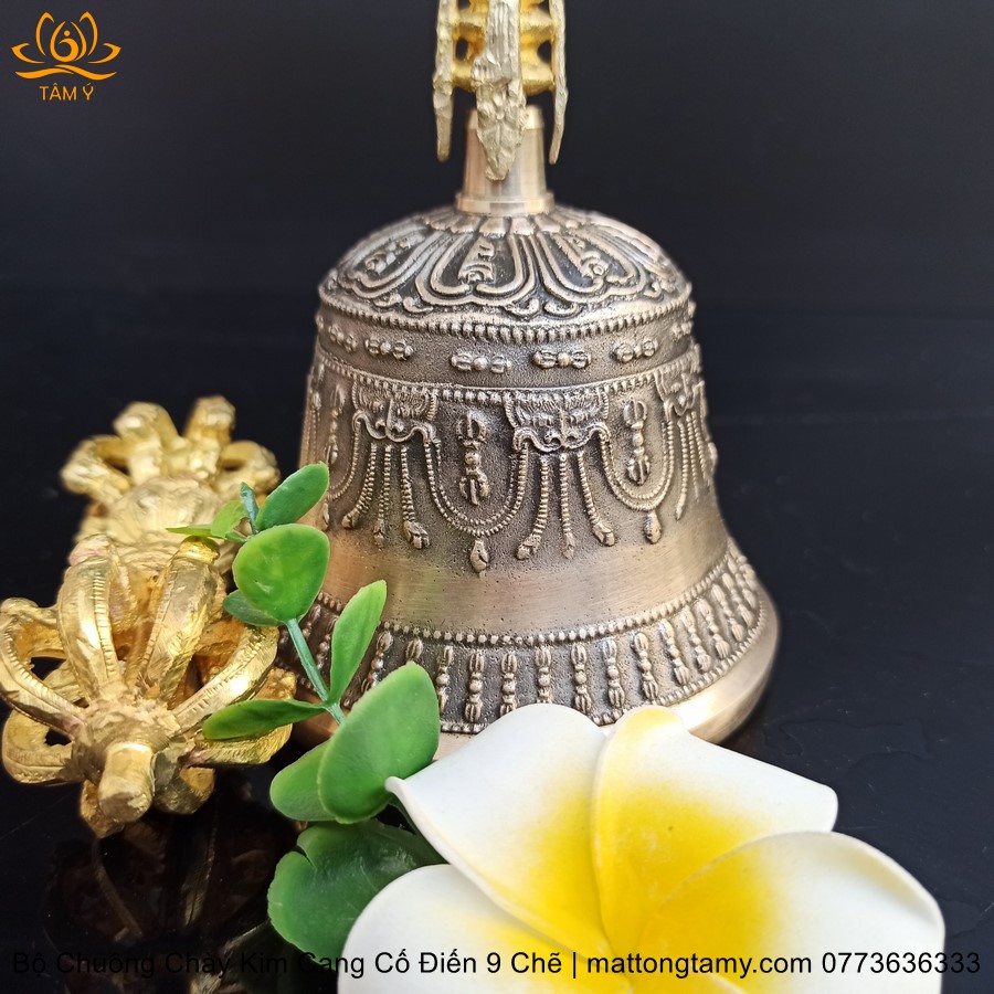 |9 Chẽ| Bộ Chuông Chày Bằng Đồng Nguyên Chất MS12, Họa Tiết Cổ Điển