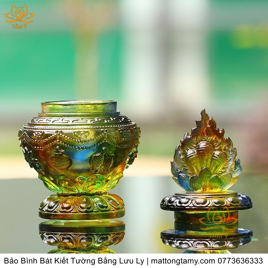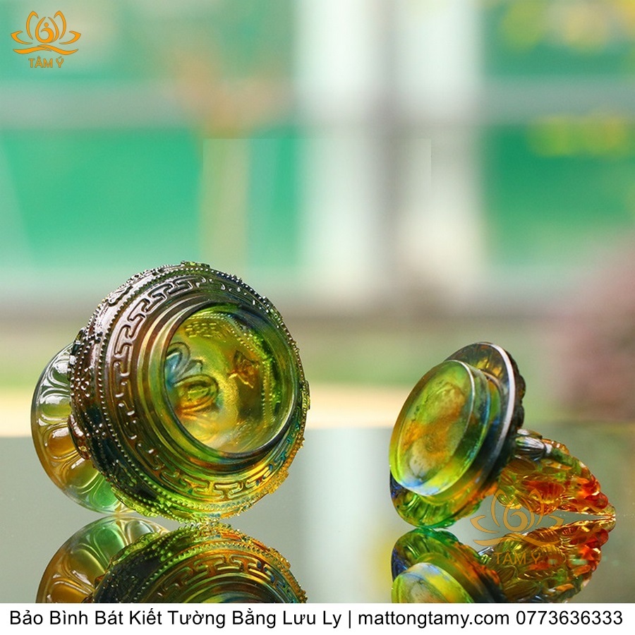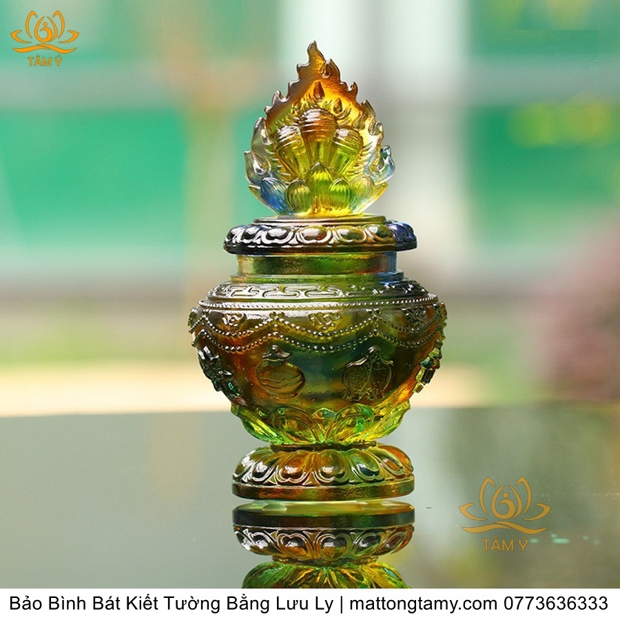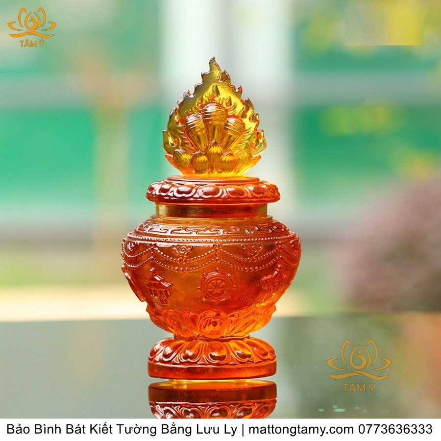 Bảo Bình Khắc Bát Kiết Tường Bằng Lưu Ly Cao Cấp