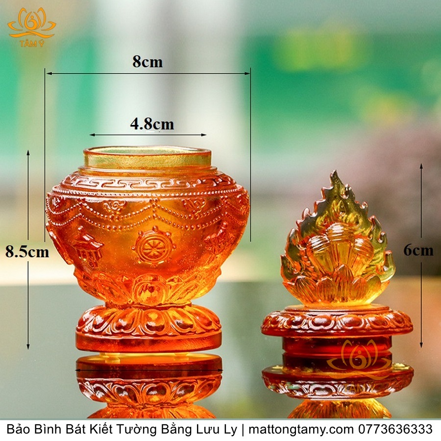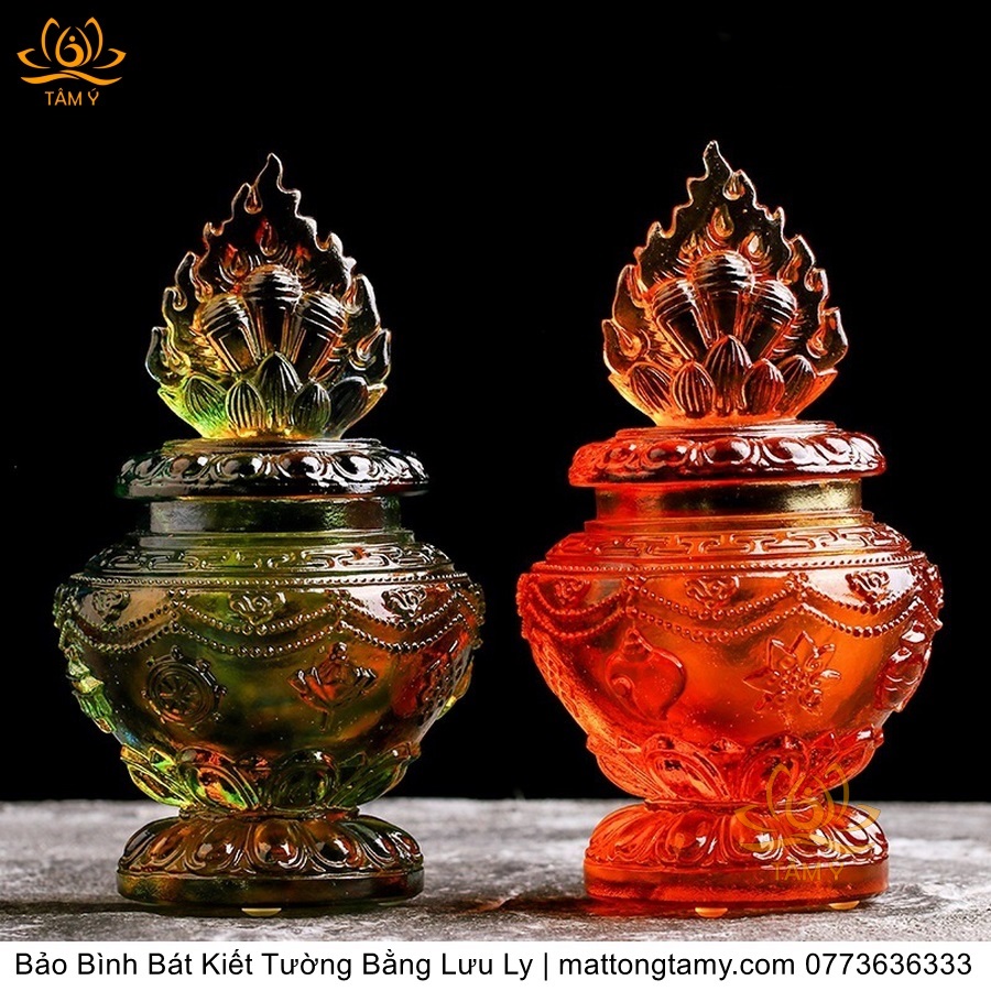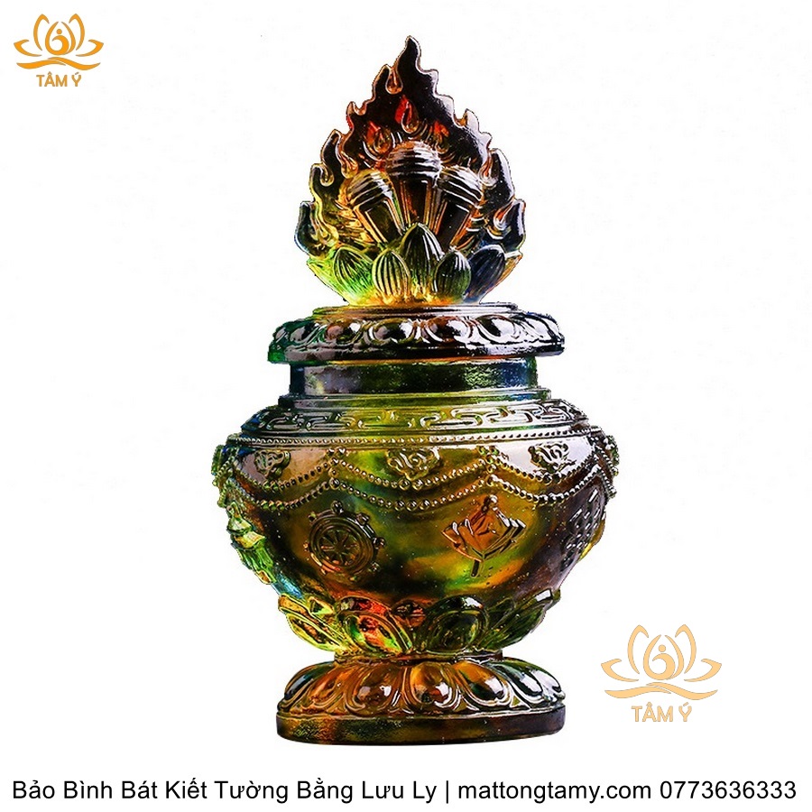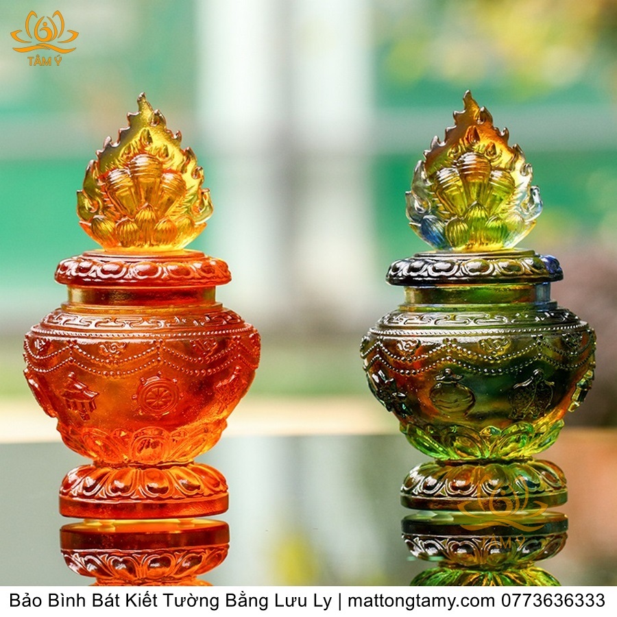 Bảo Bình Khắc Bát Kiết Tường Bằng Lưu Ly Cao Cấp