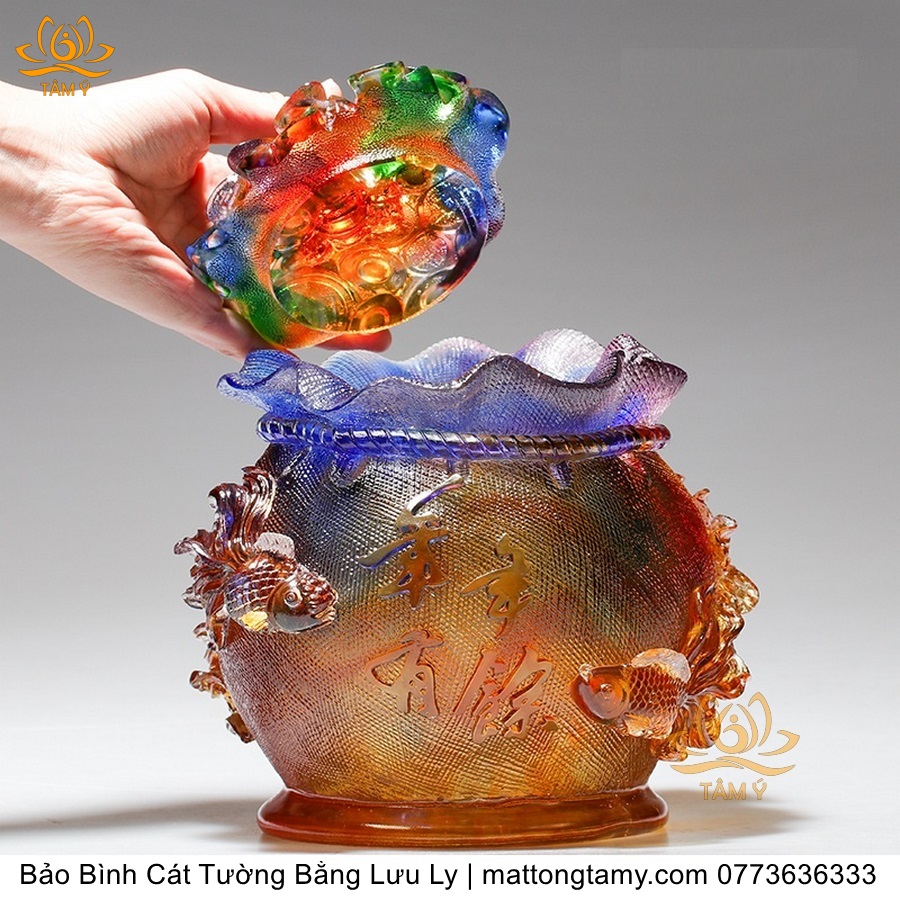 Bảo Bình Khắc Cát Tường Bằng Lưu Ly Cao Cấp
