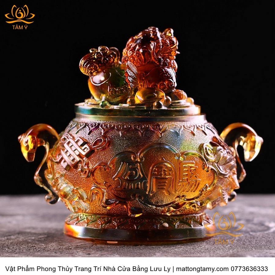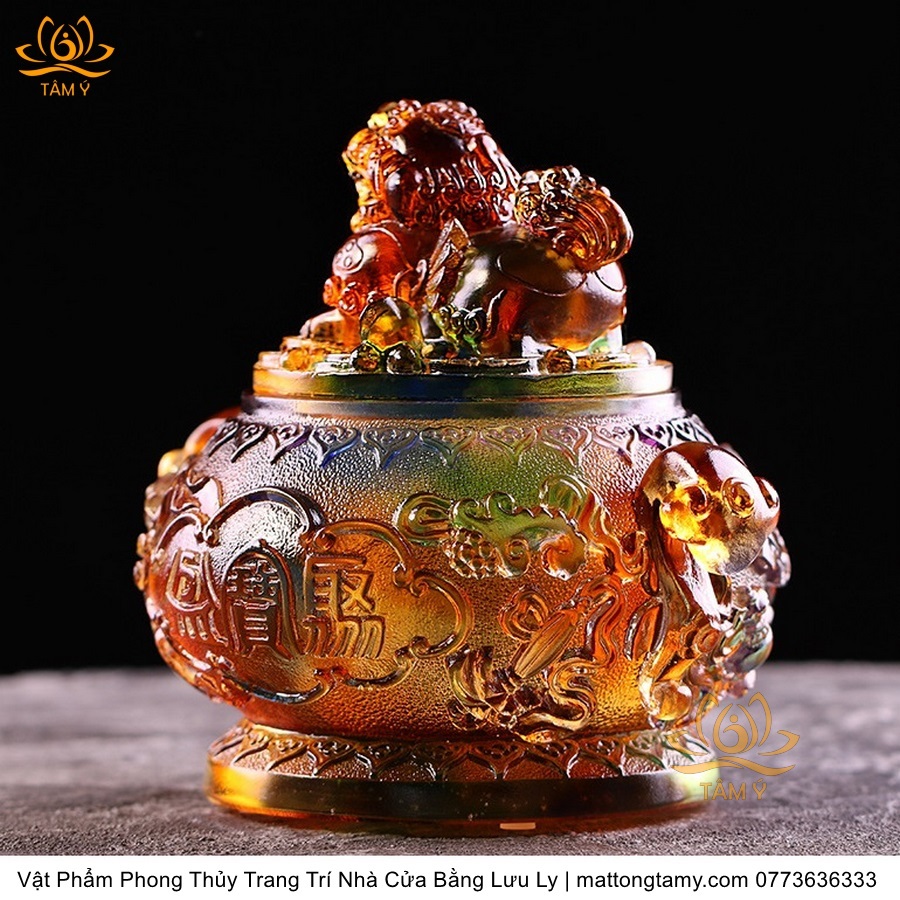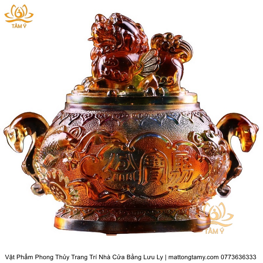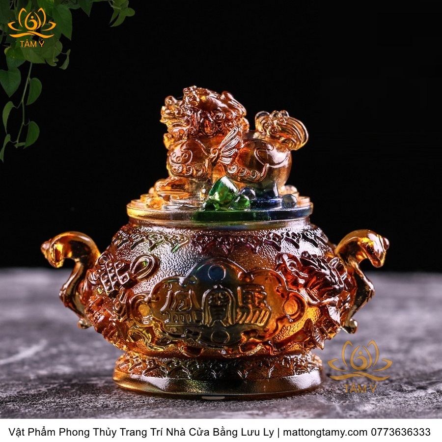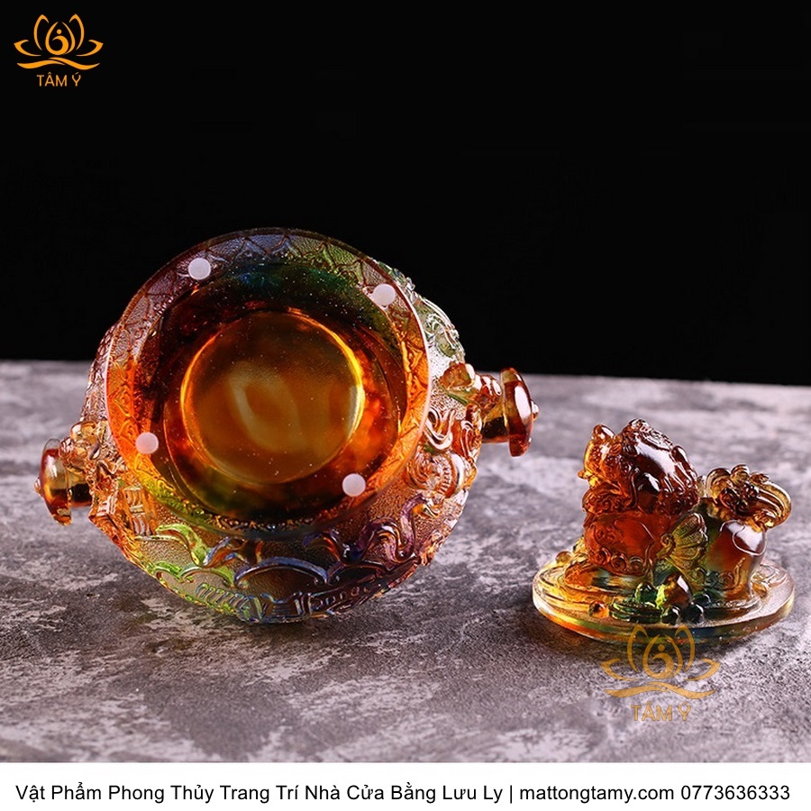 Bảo Bình Khắc Kì Lân Trên Nắp Bằng Lưu Ly Cao Cấp Vật Phẩm Phong Thủy Trang Trí Nhà Cửa DTT134