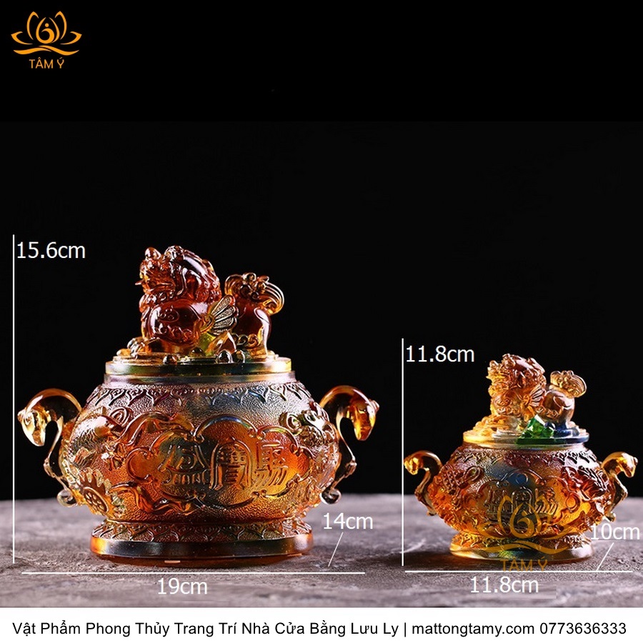 Chất liệu: Lưu ly cao cấp. Màu sắc: Ngũ sắc, Hổ phách.