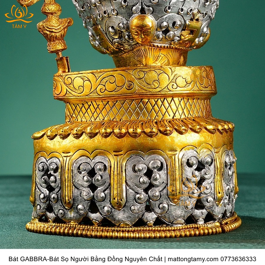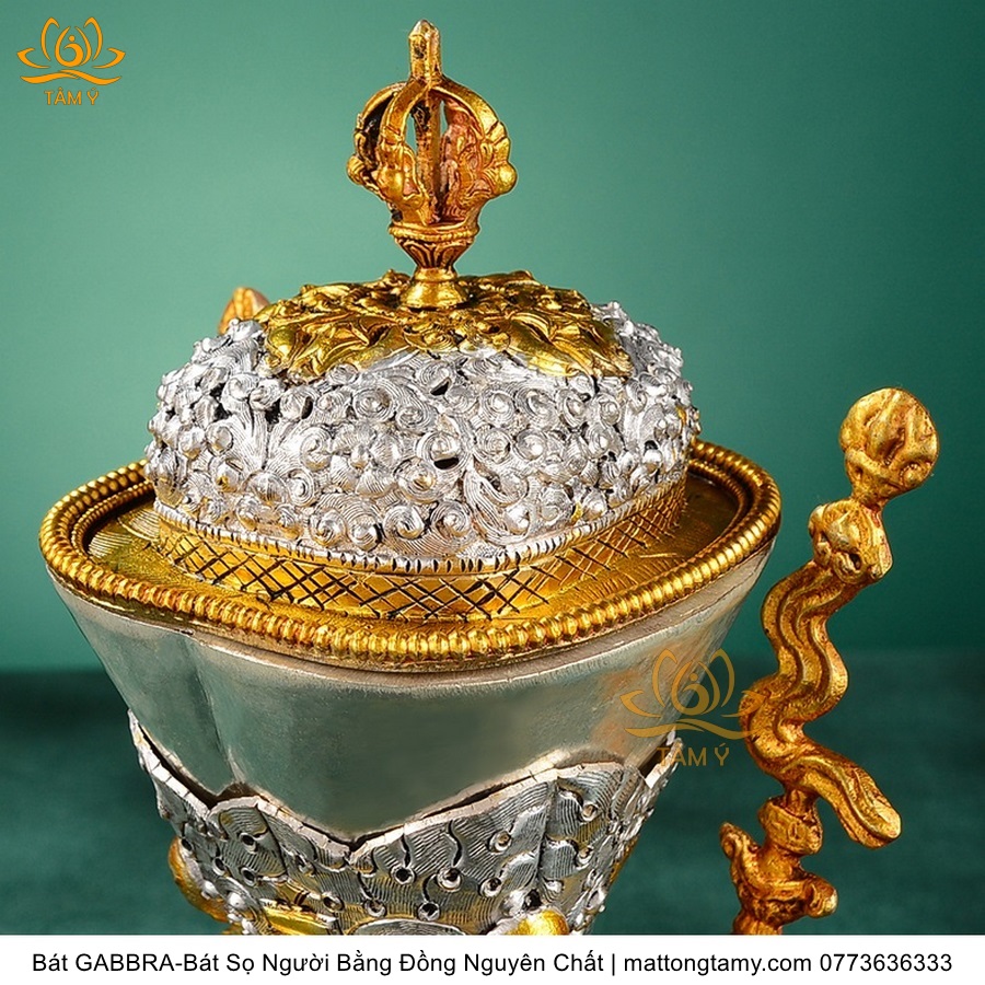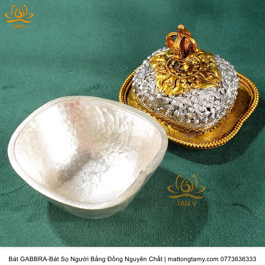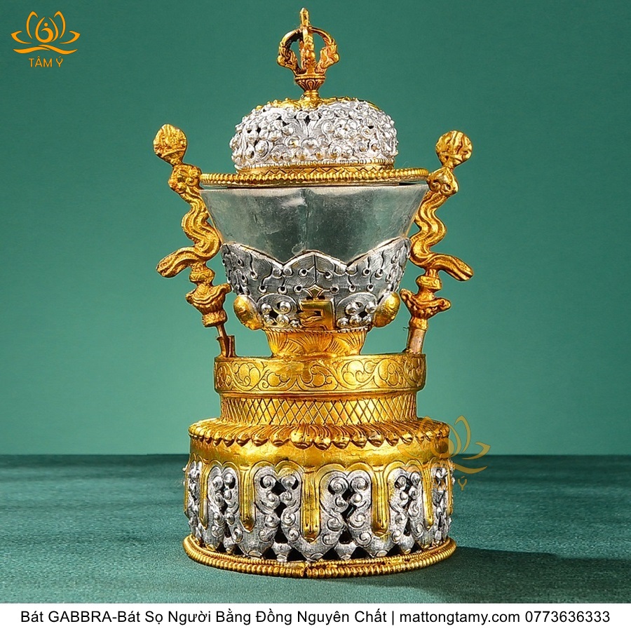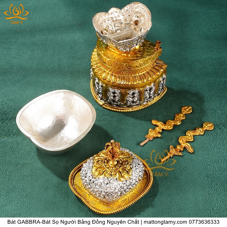 Chiếc bát đặc biệt ở chỗ, nó được làm từ…xương đầu của người tu hành, là một loại pháp khí rất thường dùng trong Phật giáo Tạng truyền. Gabbra ( Bát sọ người) được các nhà tu hành sử dụng khi thực hiện nghi thức quán đỉnh trong phép tu Vô thượng Du già mật tục của Phật giáo Tạng truyền; và cũng là vật cúng, bát ăn hoặc bát dùng để tế tự của đa số thần linh Kim Cương thừa.