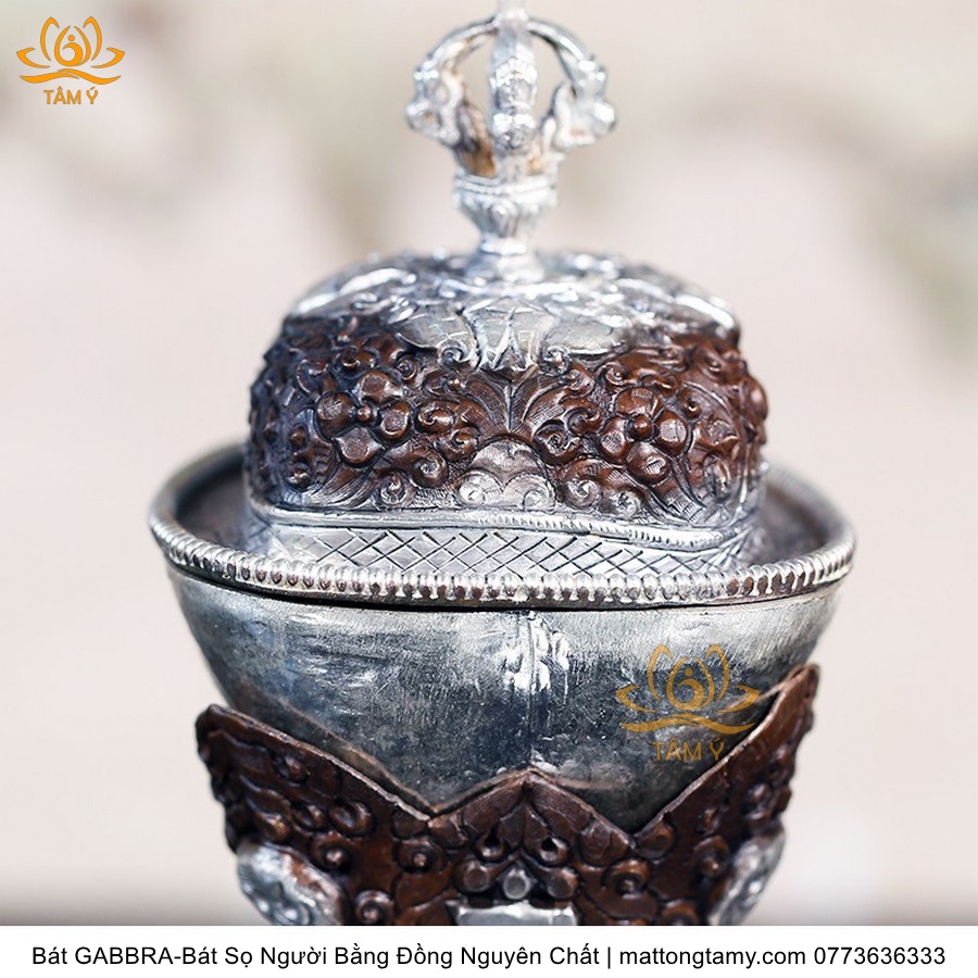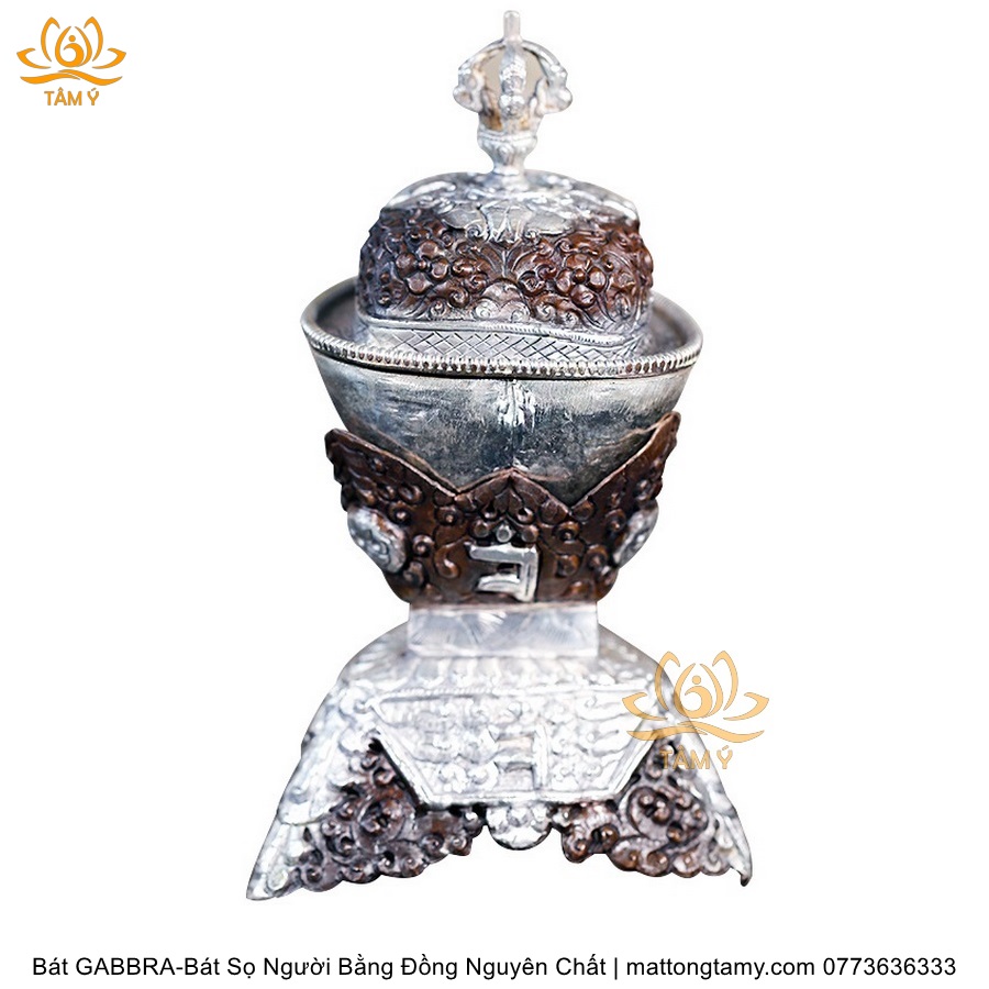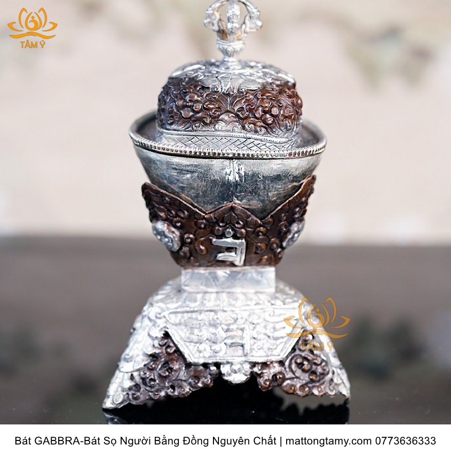 Chiếc bát đặc biệt ở chỗ, nó được làm từ…xương đầu của người tu hành, là một loại pháp khí rất thường dùng trong Phật giáo Tạng truyền. Gabbra ( Bát sọ người) được các nhà tu hành sử dụng khi thực hiện nghi thức quán đỉnh trong phép tu Vô thượng Du già mật tục của Phật giáo Tạng truyền; và cũng là vật cúng, bát ăn hoặc bát dùng để tế tự của đa số thần linh Kim Cương thừa.
