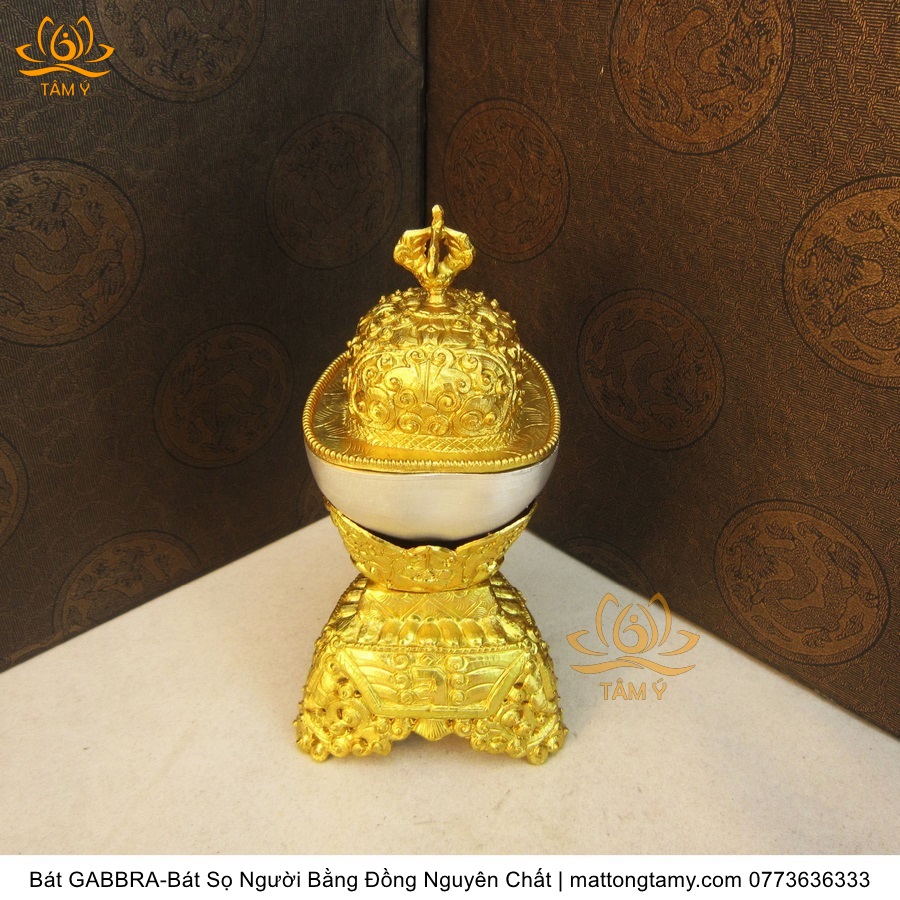 Chiếc bát đặc biệt ở chỗ, nó được làm từ…xương đầu của người tu hành, là một loại pháp khí rất thường dùng trong Phật giáo Tạng truyền. Gabbra ( Bát sọ người) được các nhà tu hành sử dụng khi thực hiện nghi thức quán đỉnh trong phép tu Vô thượng Du già mật tục của Phật giáo Tạng truyền; và cũng là vật cúng, bát ăn hoặc bát dùng để tế tự của đa số thần linh Kim Cương thừa.