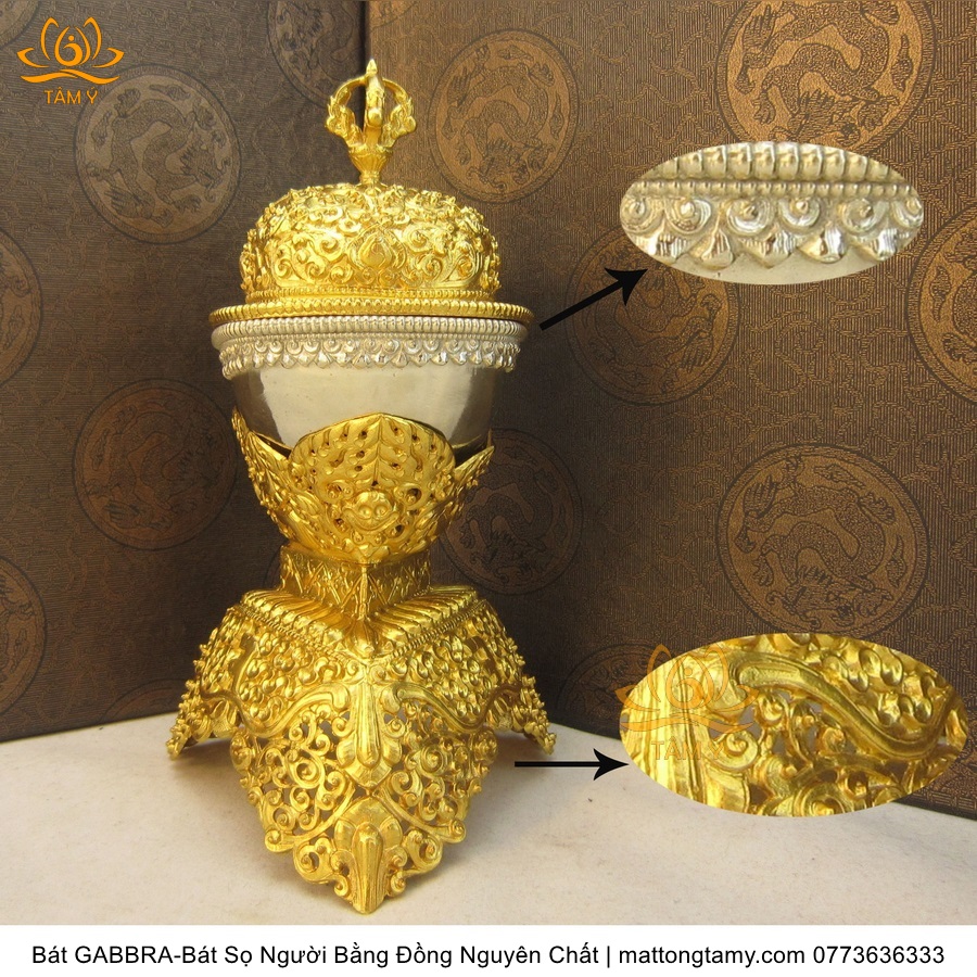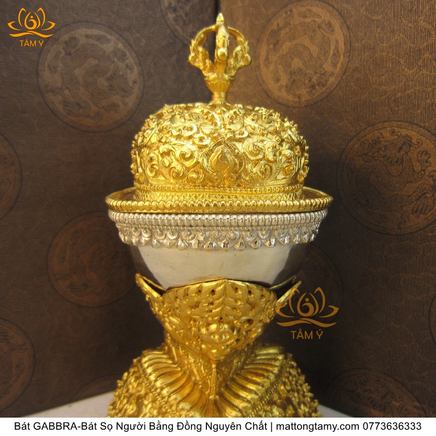 Chiếc bát đặc biệt ở chỗ, nó được làm từ…xương đầu của người tu hành, là một loại pháp khí rất thường dùng trong Phật giáo Tạng truyền. Gabbra ( Bát sọ người) được các nhà tu hành sử dụng khi thực hiện nghi thức quán đỉnh trong phép tu Vô thượng Du già mật tục của Phật giáo Tạng truyền; và cũng là vật cúng, bát ăn hoặc bát dùng để tế tự của đa số thần linh Kim Cương thừa.