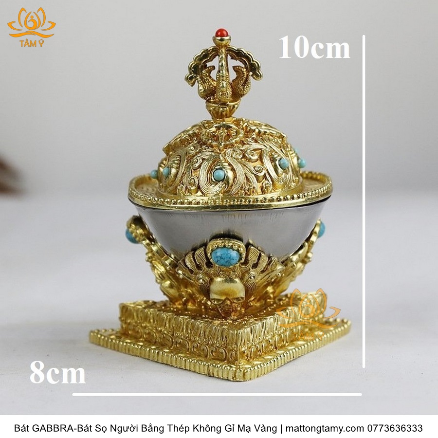 Chiếc bát đặc biệt ở chỗ, nó được làm từ…xương đầu của người tu hành, là một loại pháp khí rất thường dùng trong Phật giáo Tạng truyền. Gabbra ( Bát sọ người) được các nhà tu hành sử dụng khi thực hiện nghi thức quán đỉnh trong phép tu Vô thượng Du già mật tục của Phật giáo Tạng truyền; và cũng là vật cúng, bát ăn hoặc bát dùng để tế tự của đa số thần linh Kim Cương thừa.
