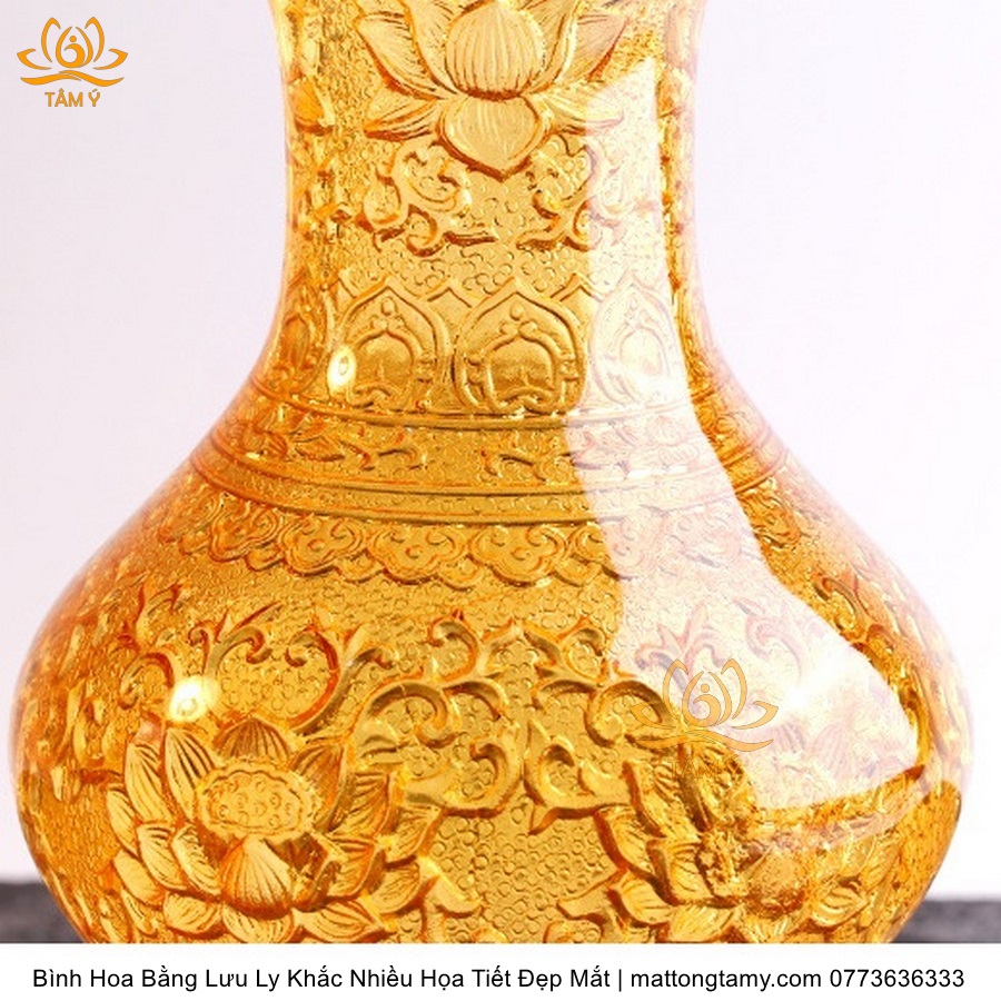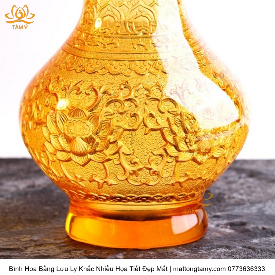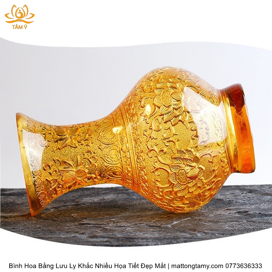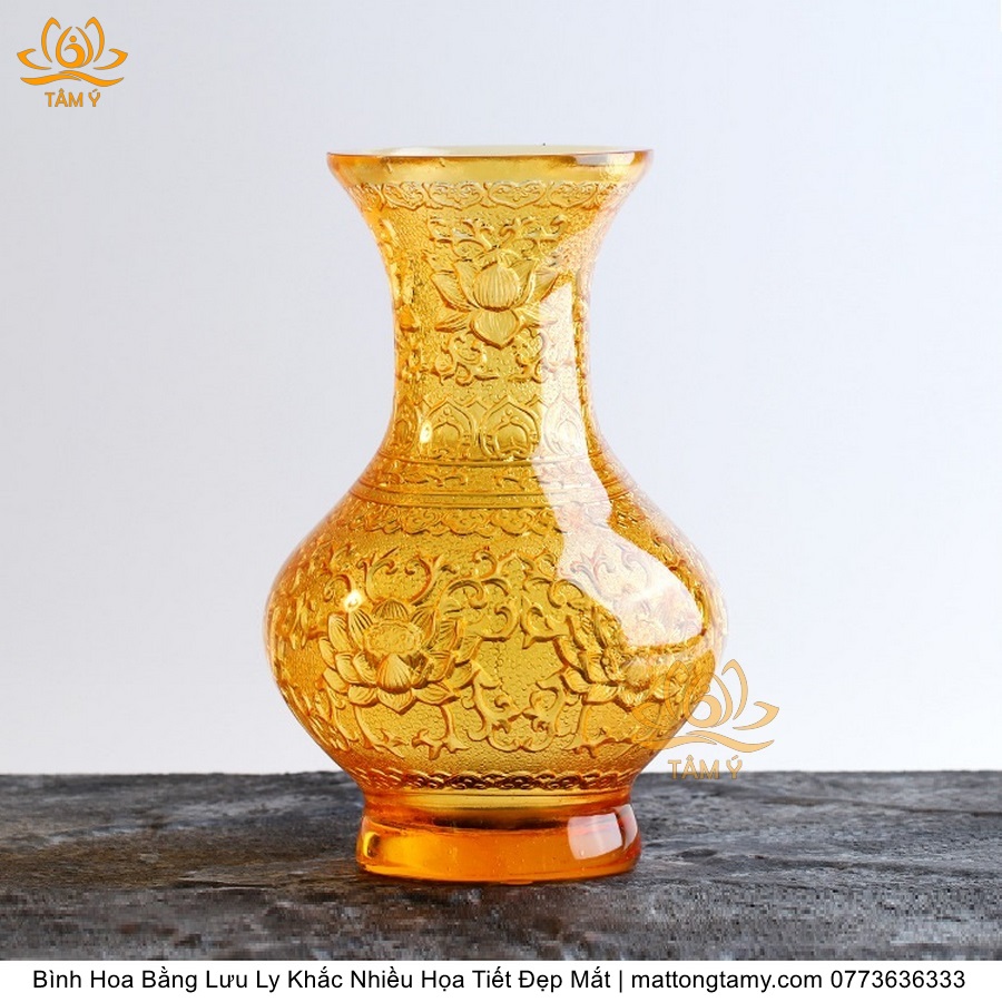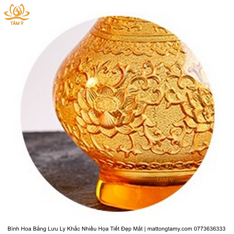 Bình Hoa Bằng Lưu Ly Cao Cấp Khắc Hình Bông Sen Trang Trí, Thiết Kế Sang Trọng, Tinh Xảo BH02