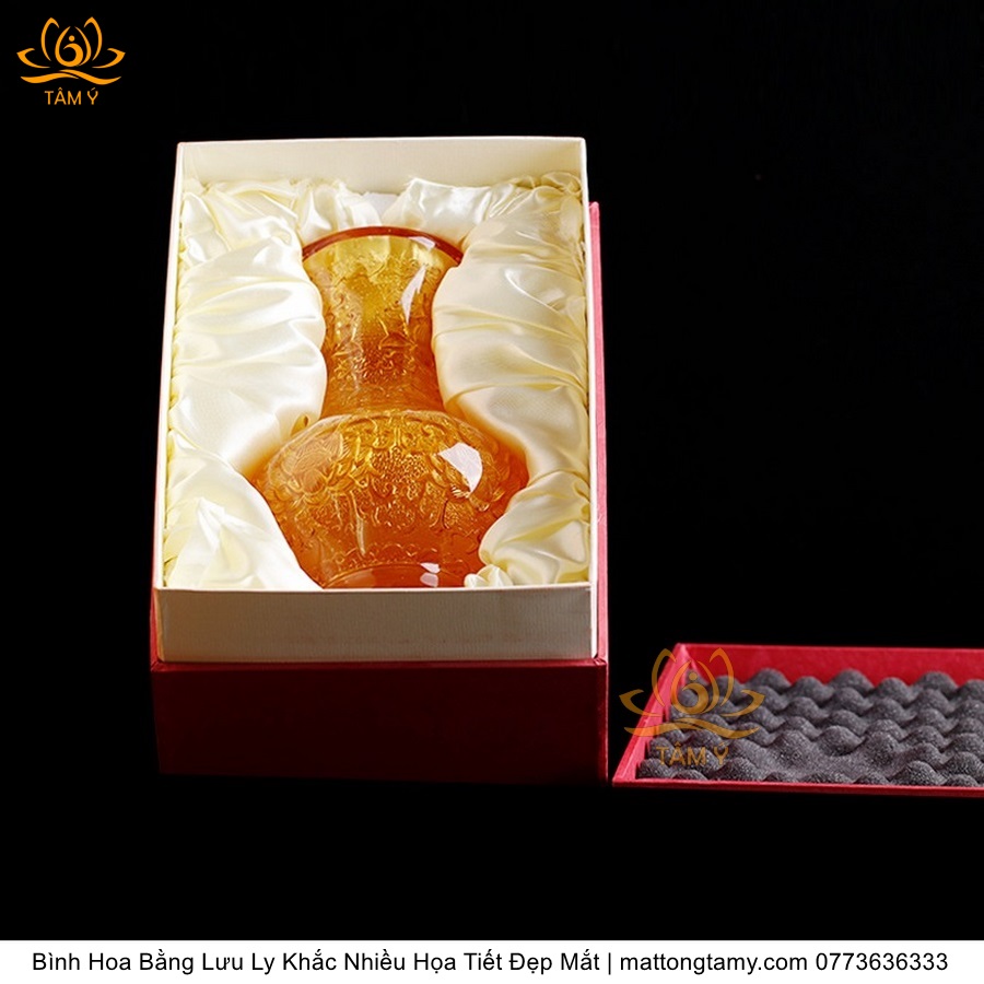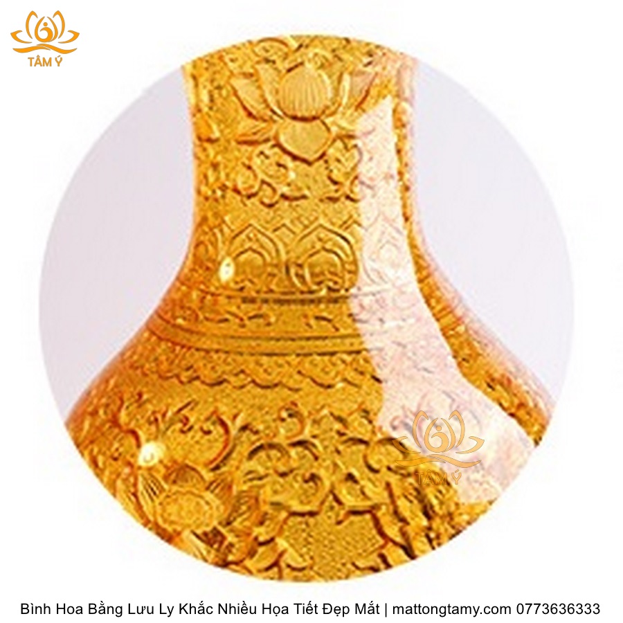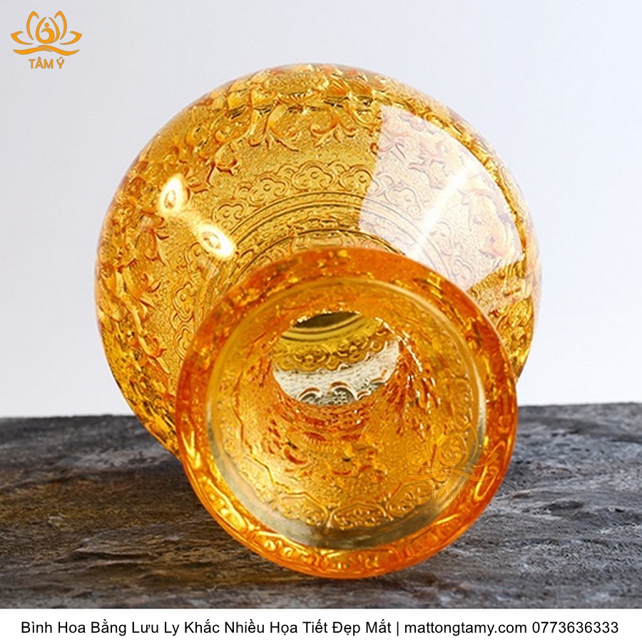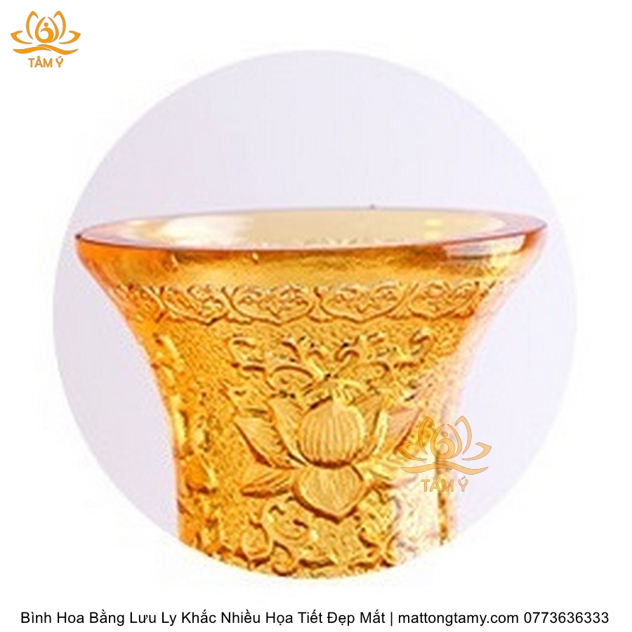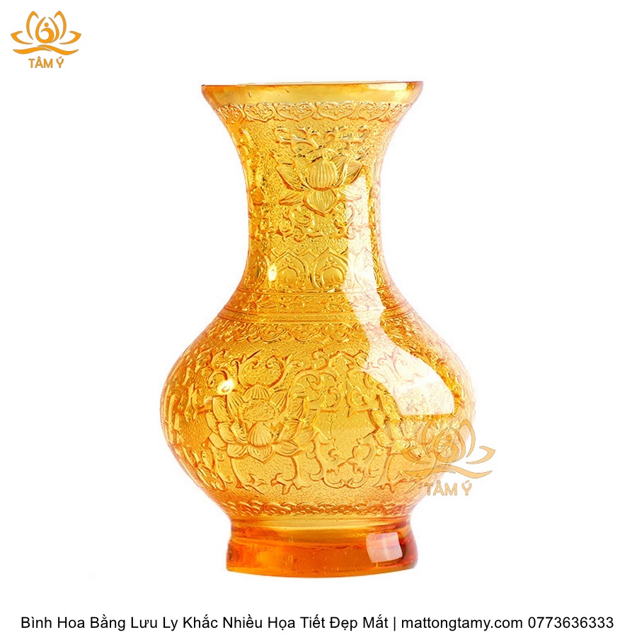 Bình Hoa Bằng Lưu Ly Cao Cấp Khắc Hình Bông Sen Trang Trí, Thiết Kế Sang Trọng, Tinh Xảo BH02