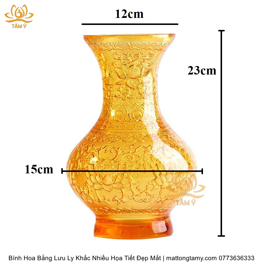 Kích Thước: Cao 23cm, đường kính lớn nhất 15cm, đường kính miệng 12cm.