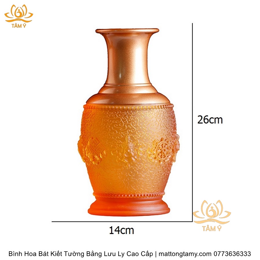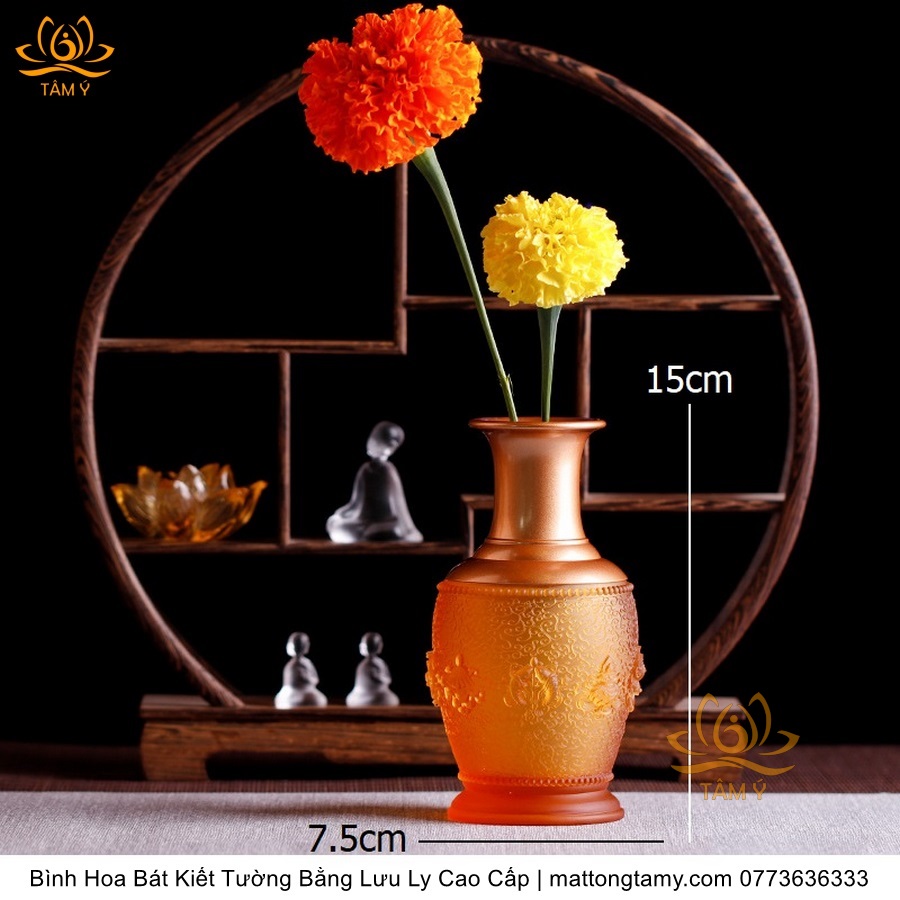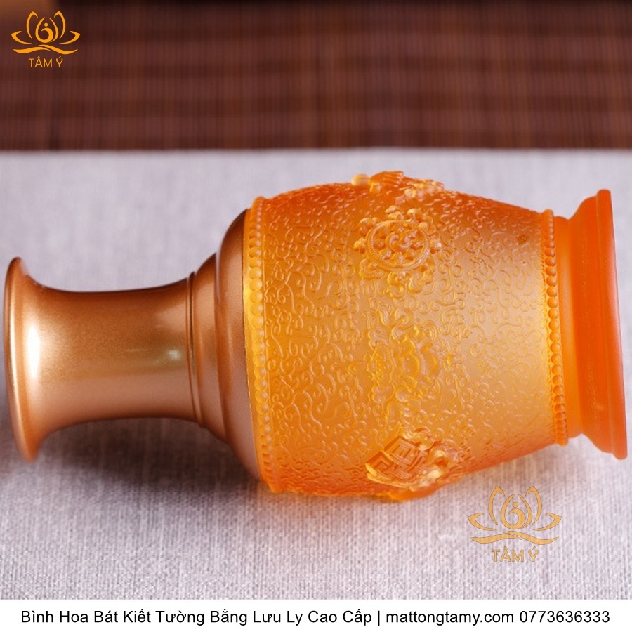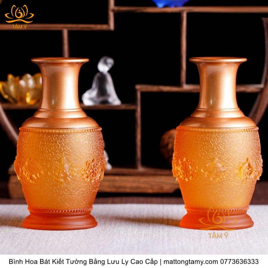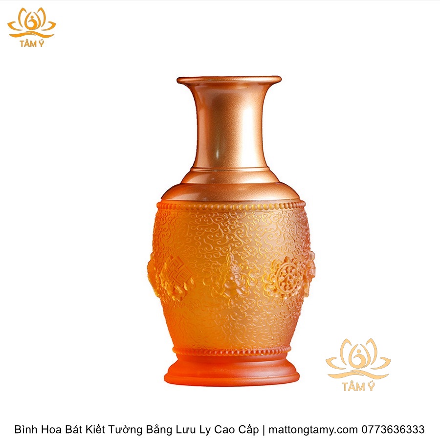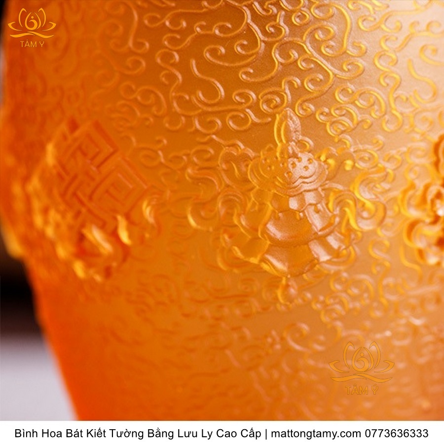 Bình Hoa Khắc Biểu Tượng Bát Kiết Tường Bằng Lưu Ly Cao Cấp, Thiết Kế Sang Trọng, Tinh Xảo BH04