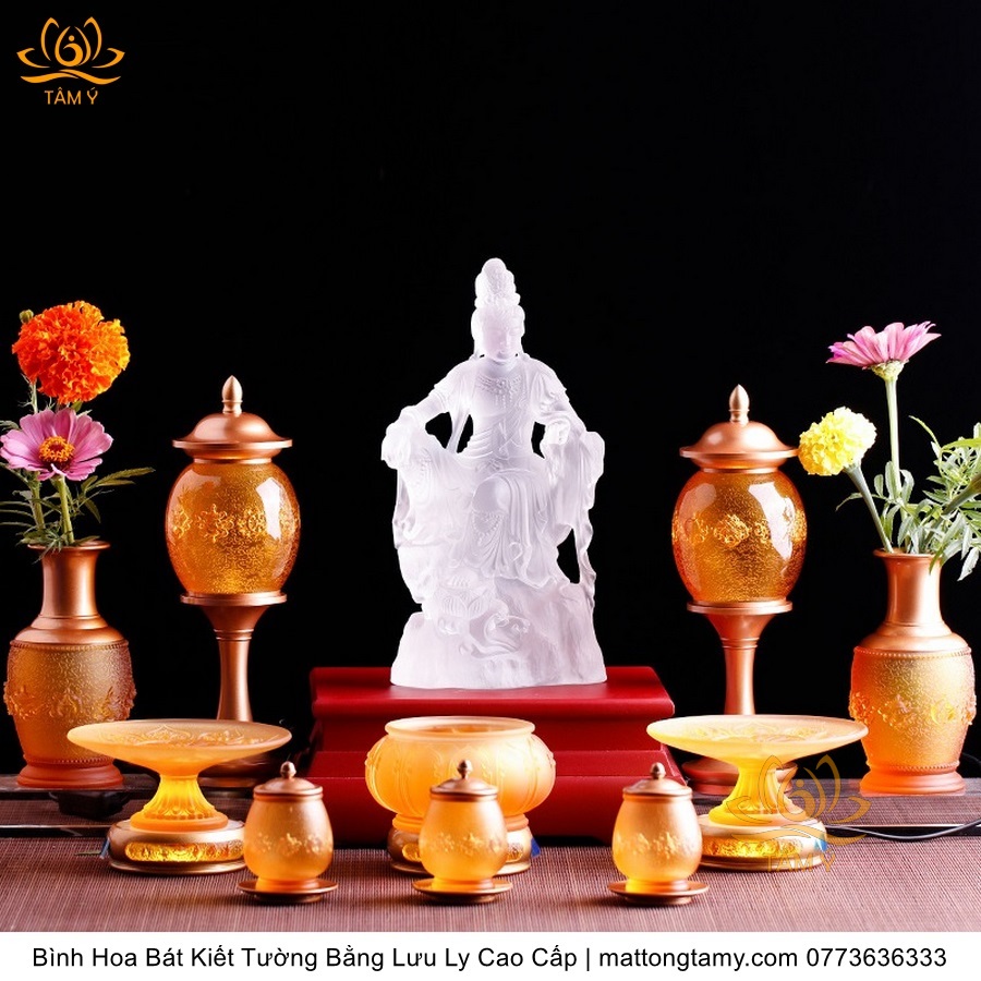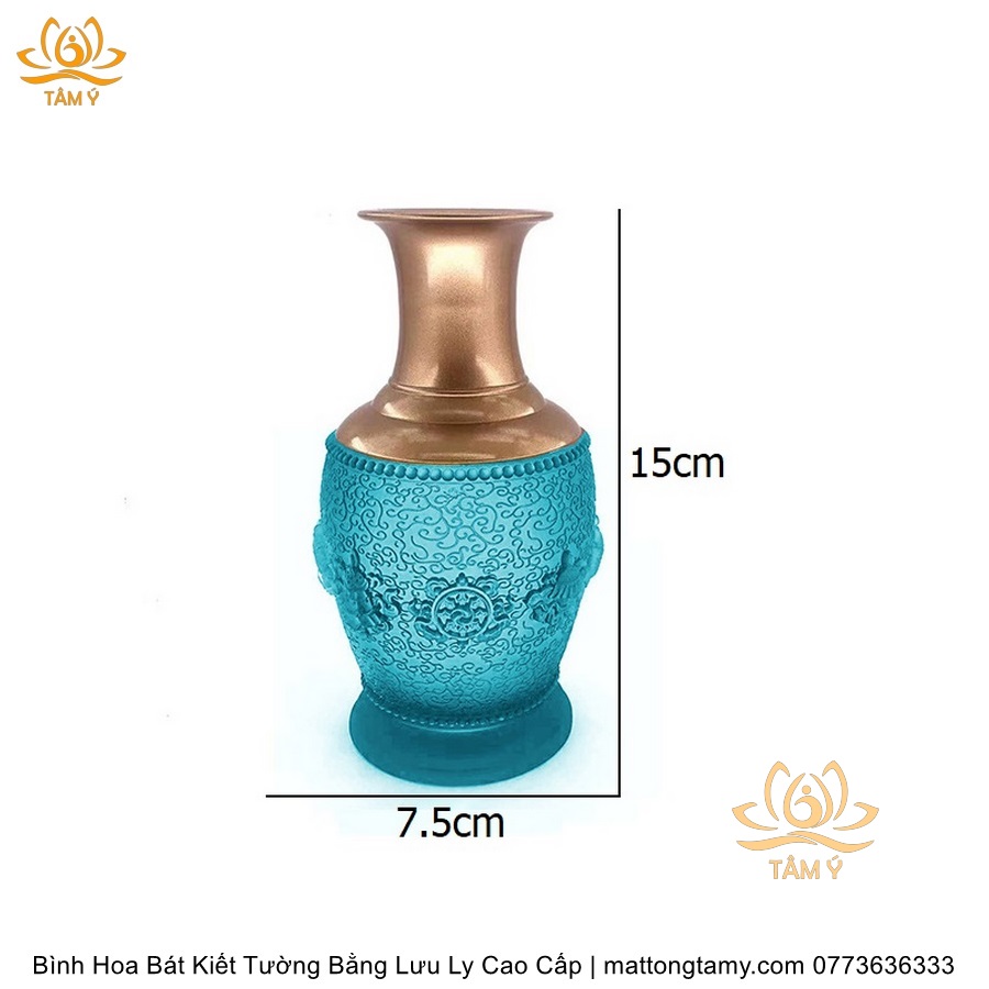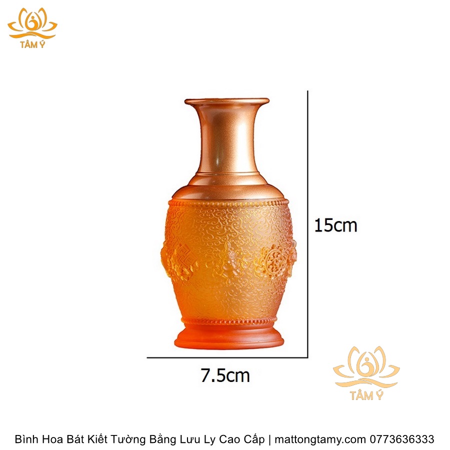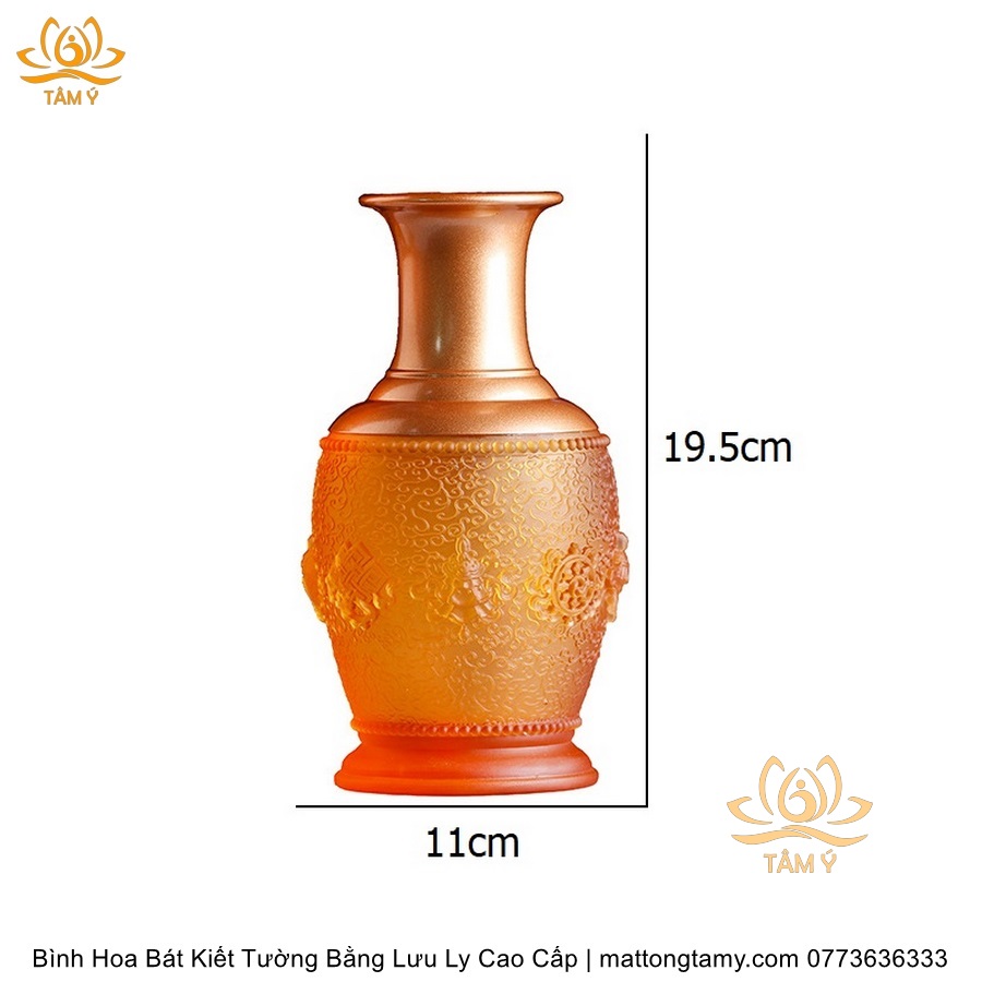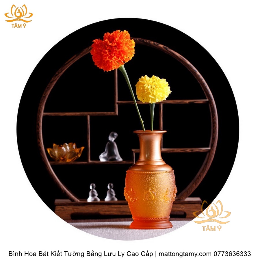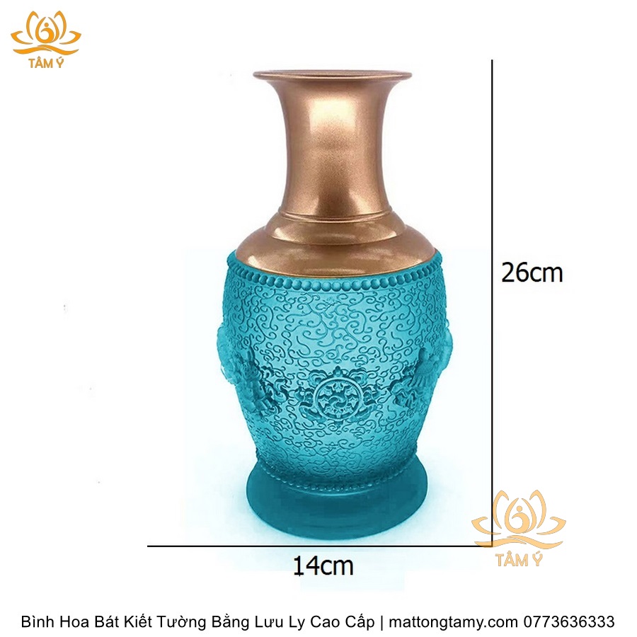 Bình Hoa Khắc Biểu Tượng Bát Kiết Tường Bằng Lưu Ly Cao Cấp, Thiết Kế Sang Trọng, Tinh Xảo BH04