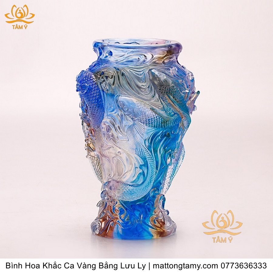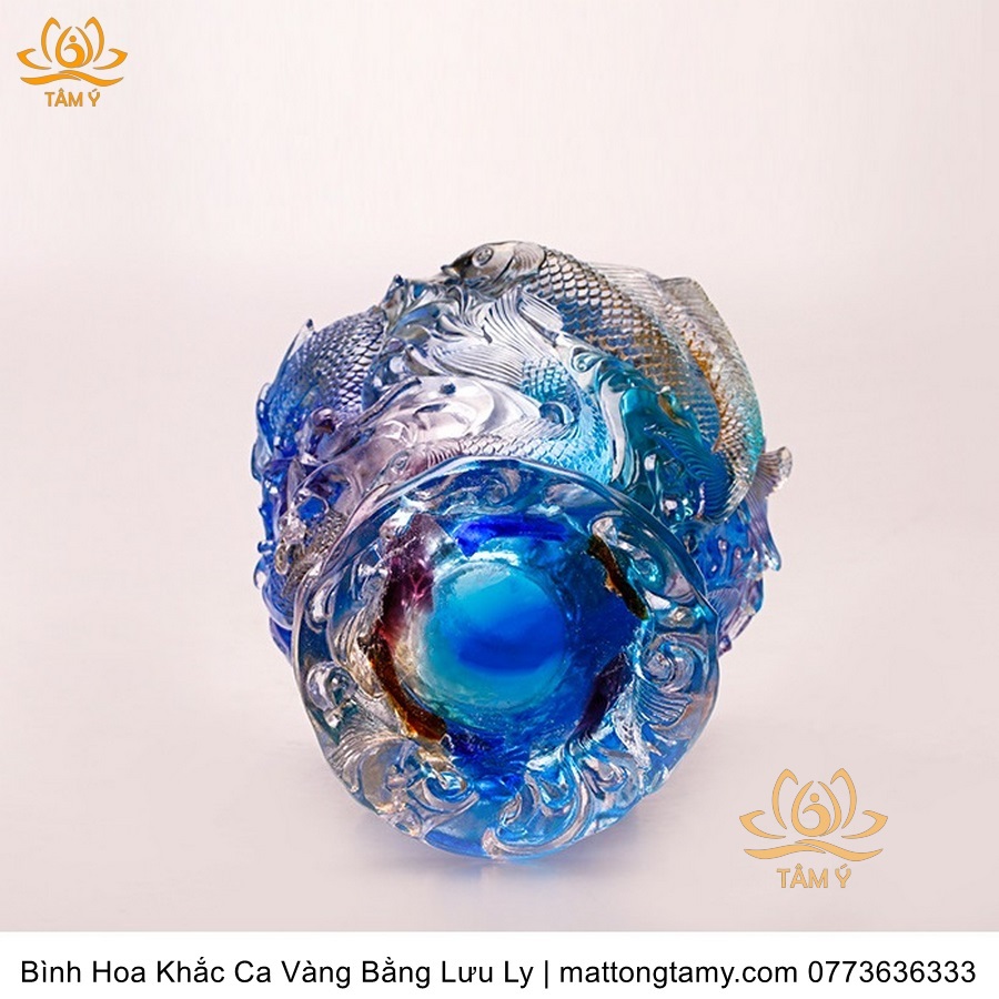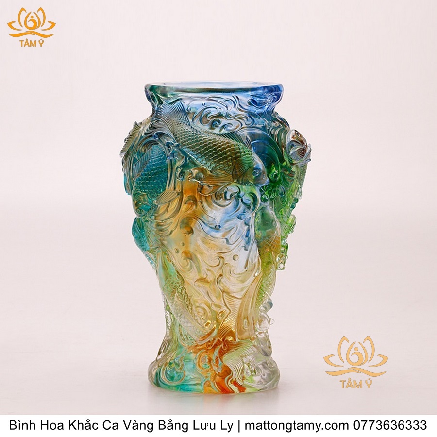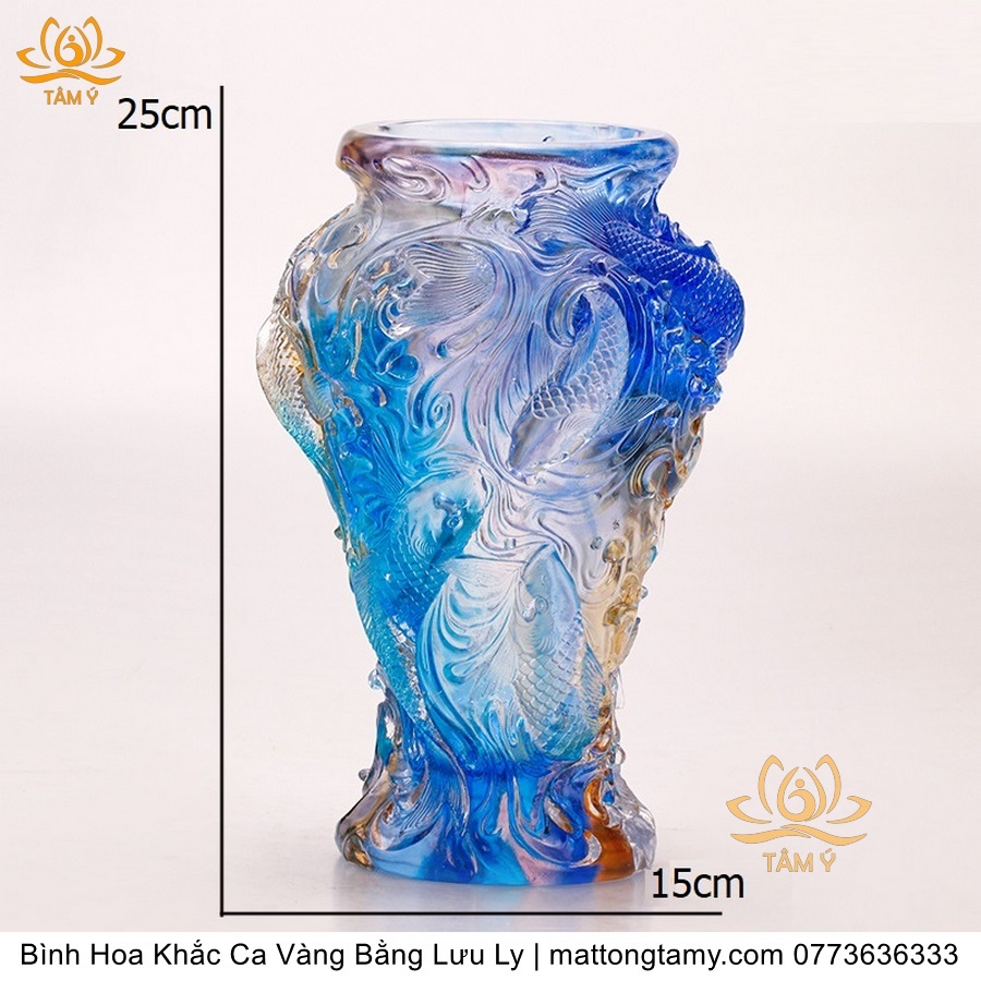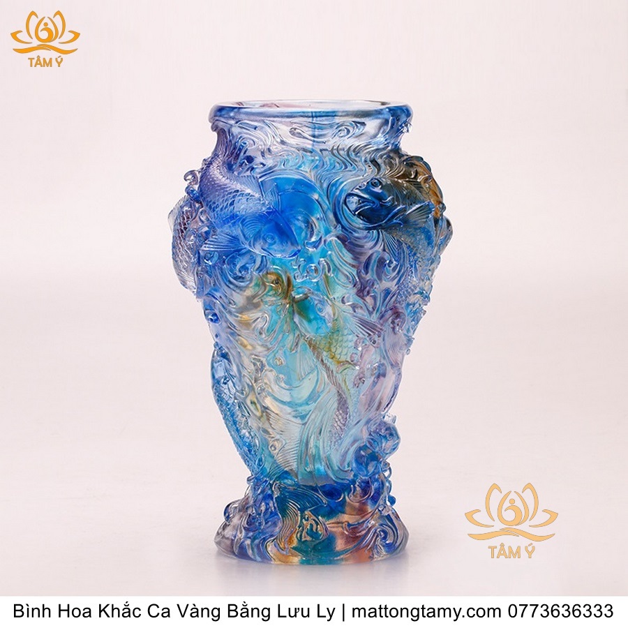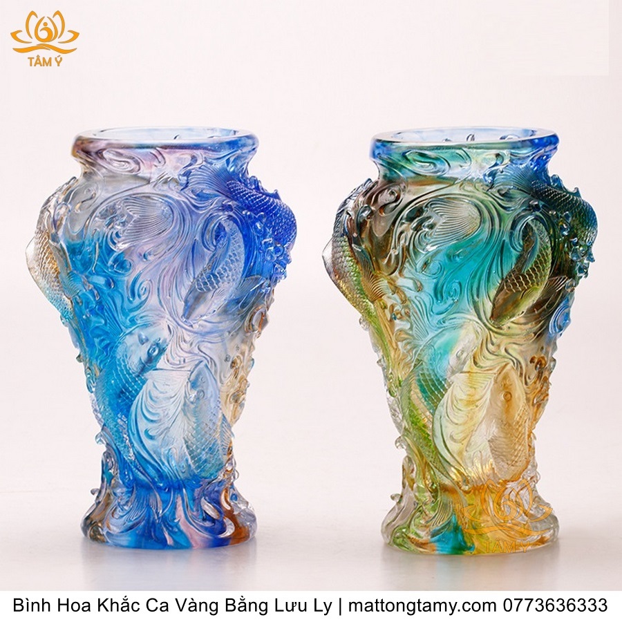 Bình Hoa Khắc Cá Vàng Bằng Lưu Ly Cao Cấp, Thiết Kế Sang Trọng, Tinh Xảo BH06