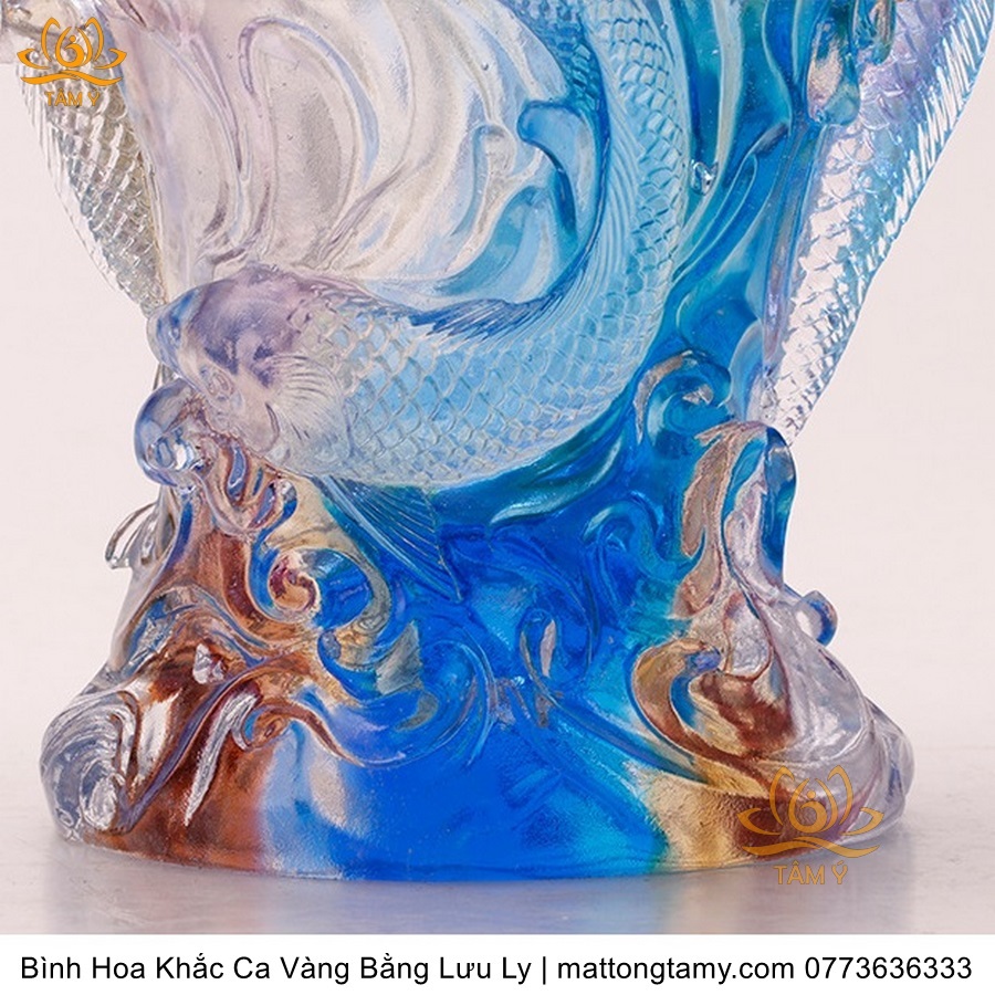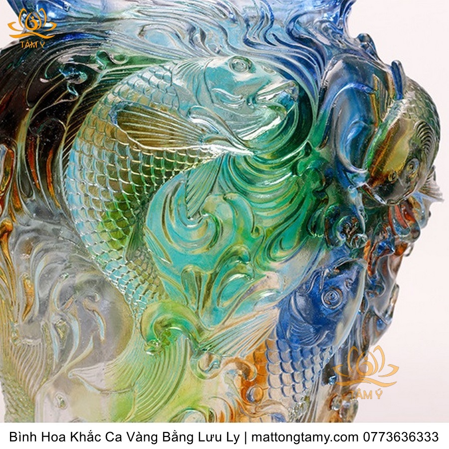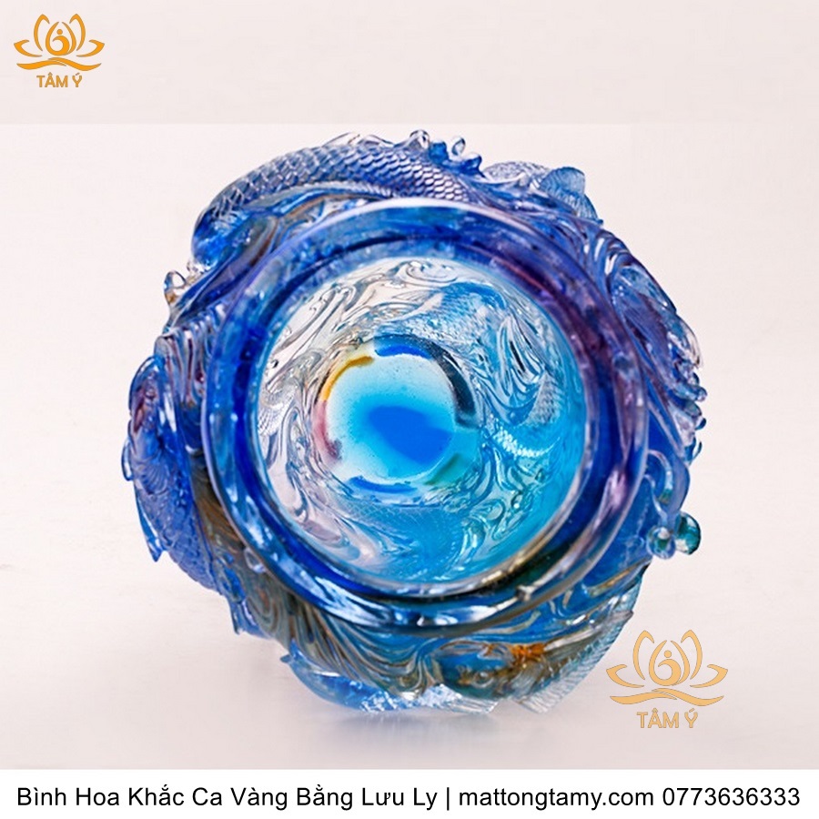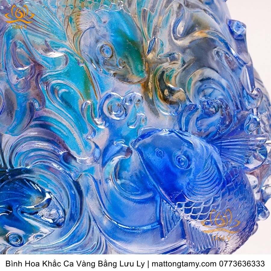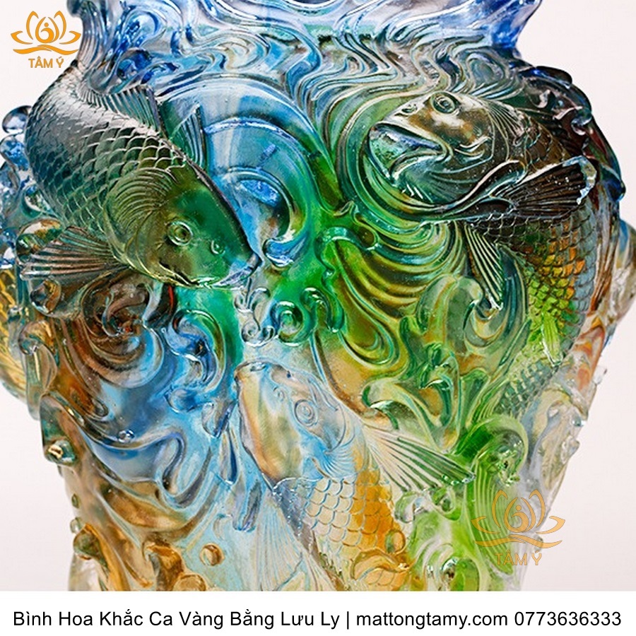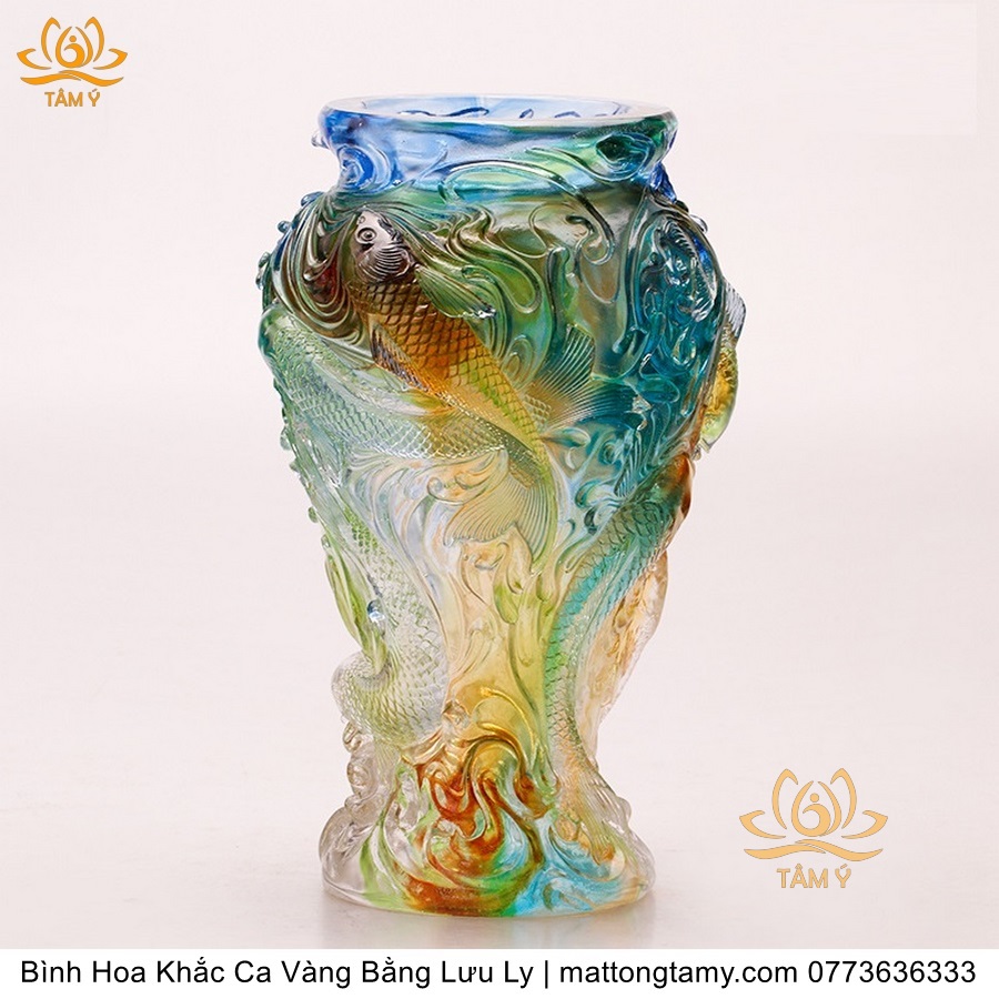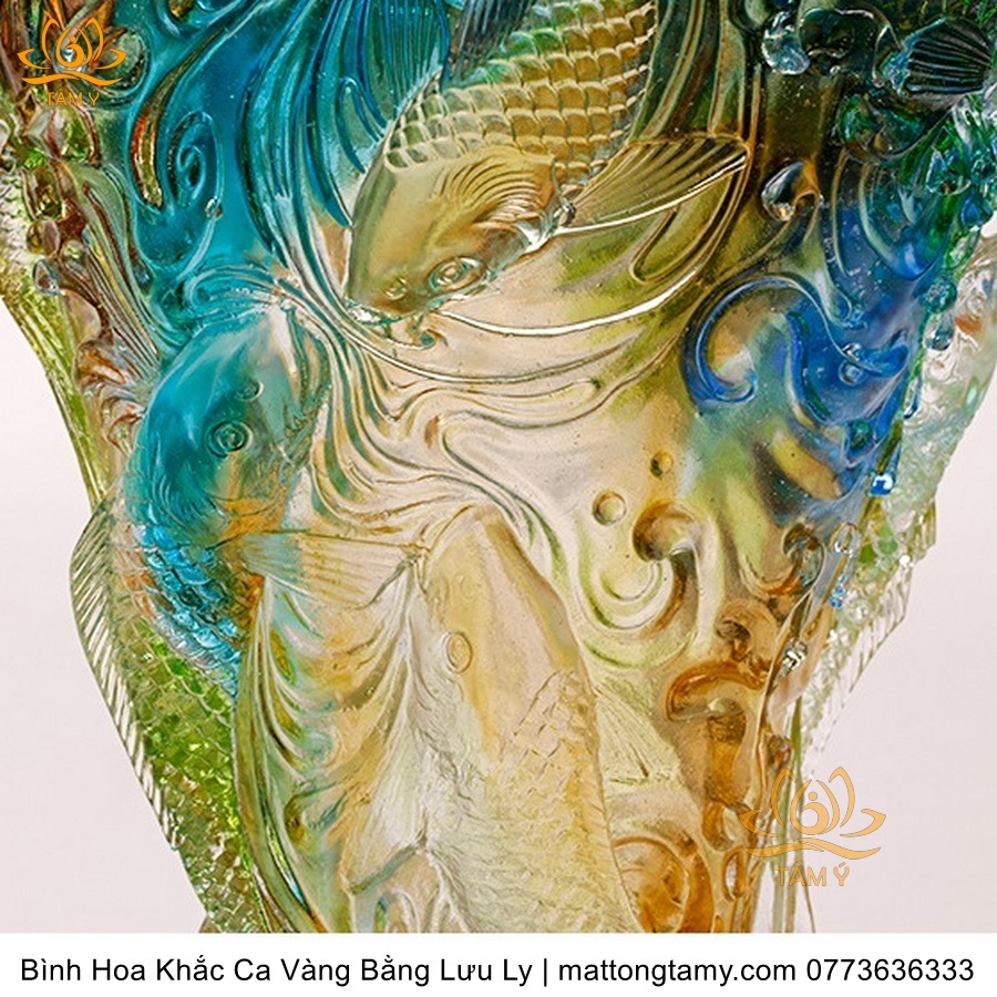 Bình Hoa Khắc Cá Vàng Bằng Lưu Ly Cao Cấp, Thiết Kế Sang Trọng, Tinh Xảo BH06