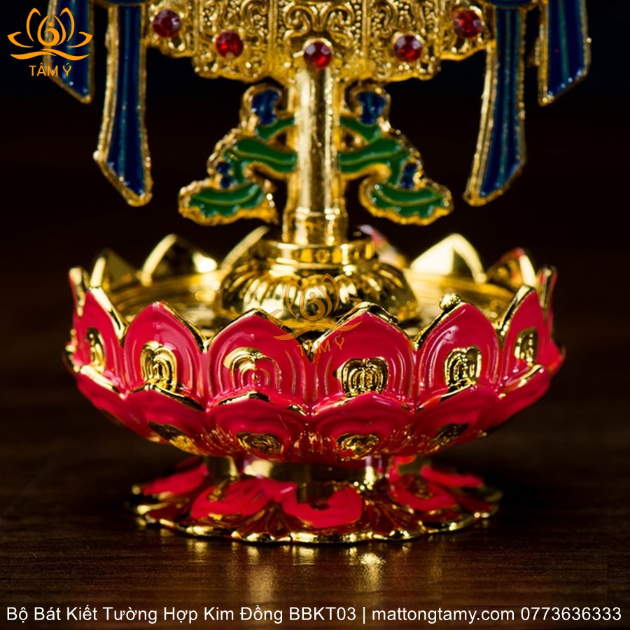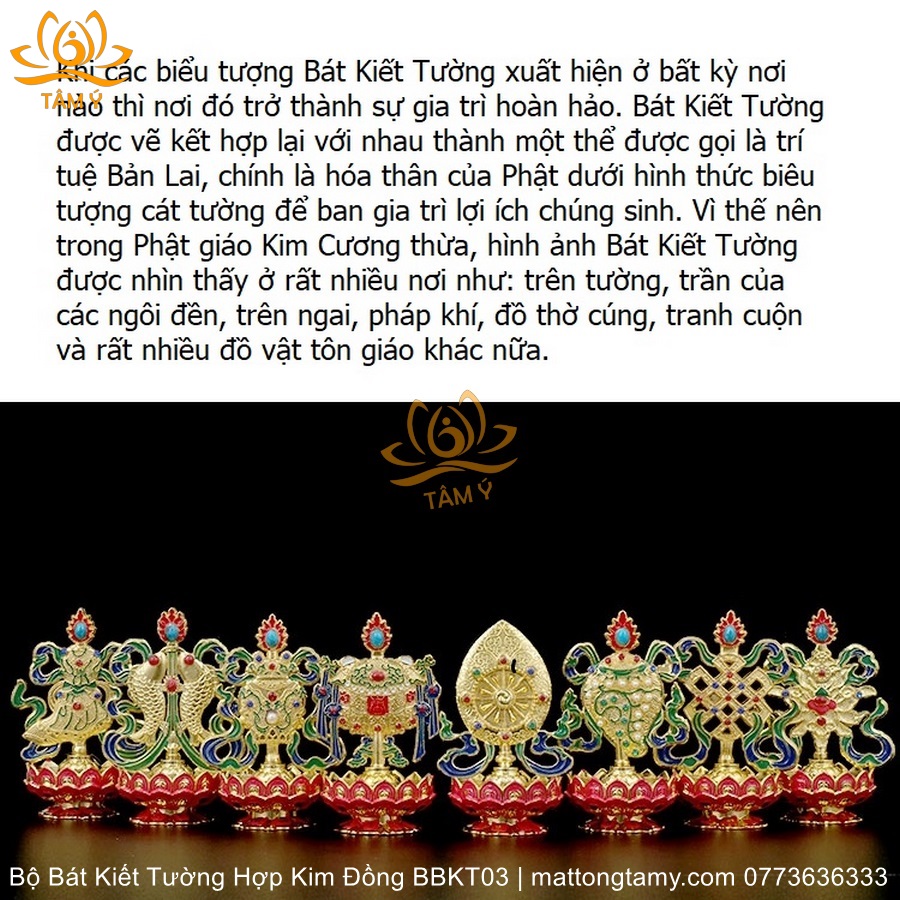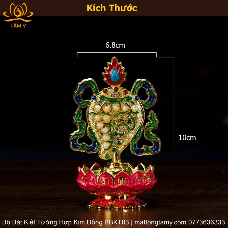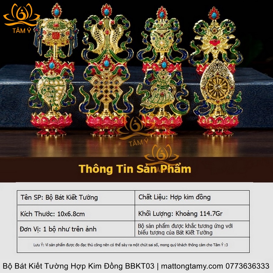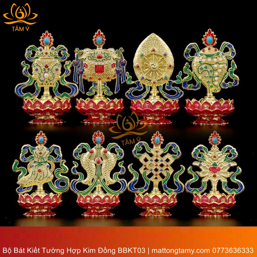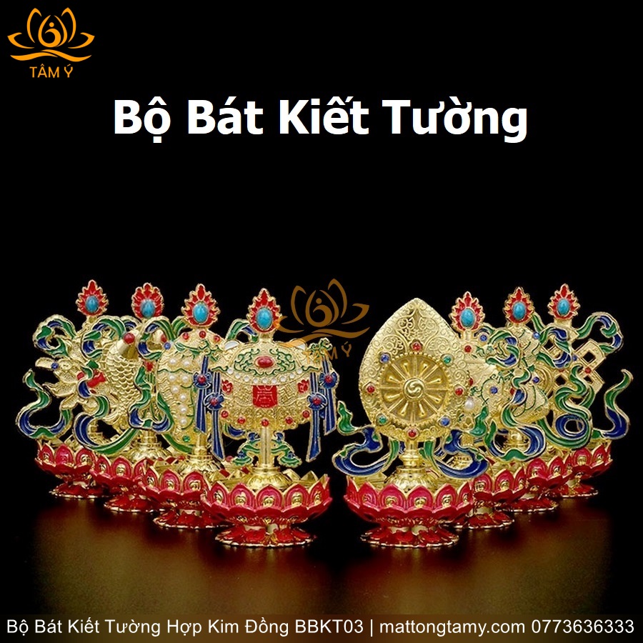 Bộ Bát Kiết Tường (Bát Đại Cát Tường - Tám Tướng Cát Tường) Bệ Sen Bằng Hợp Kim Đồng, Hoàn Thiện Thủ Công BBKT03