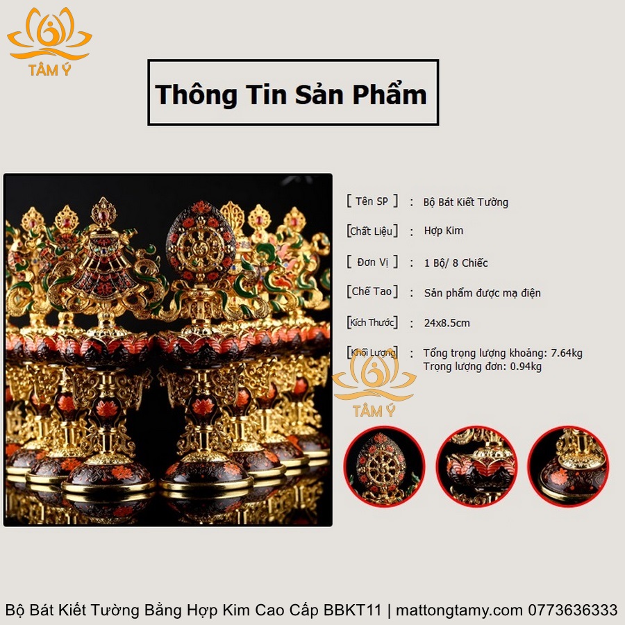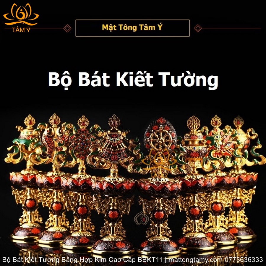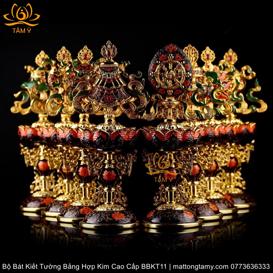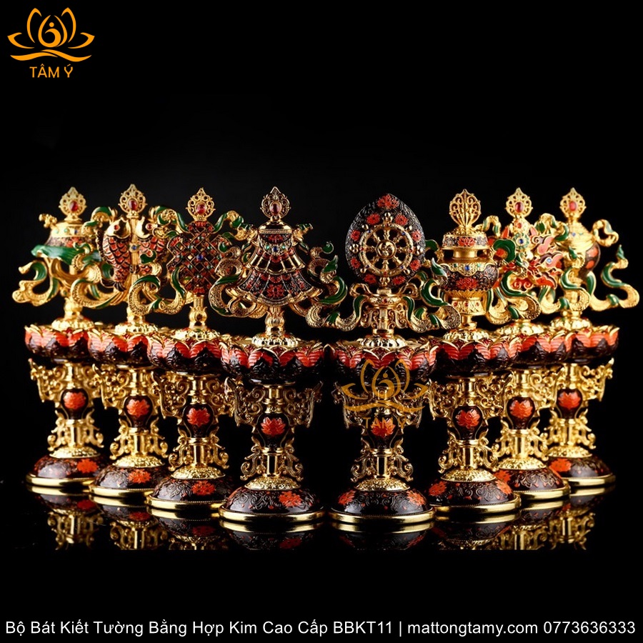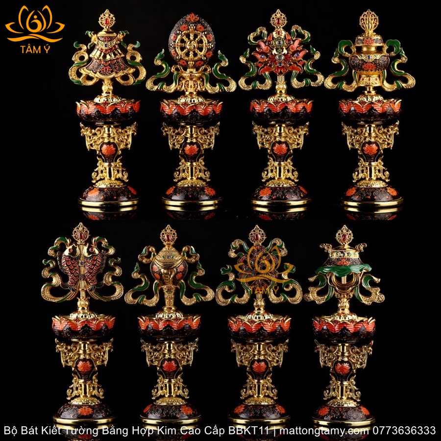 Bộ Bát Kiết Tường (Bát Đại Cát Tường - Tám Tướng Cát Tường) Bệ Sen Cao 24cm Bằng Hợp Kim Cao Cấp, Hoàn Thiện Thủ Công BBKT11