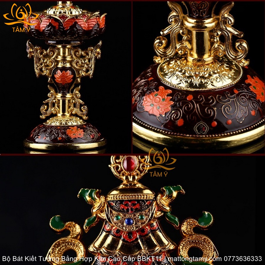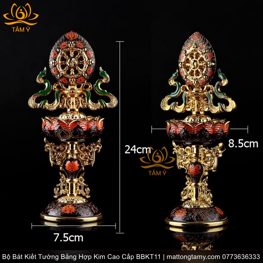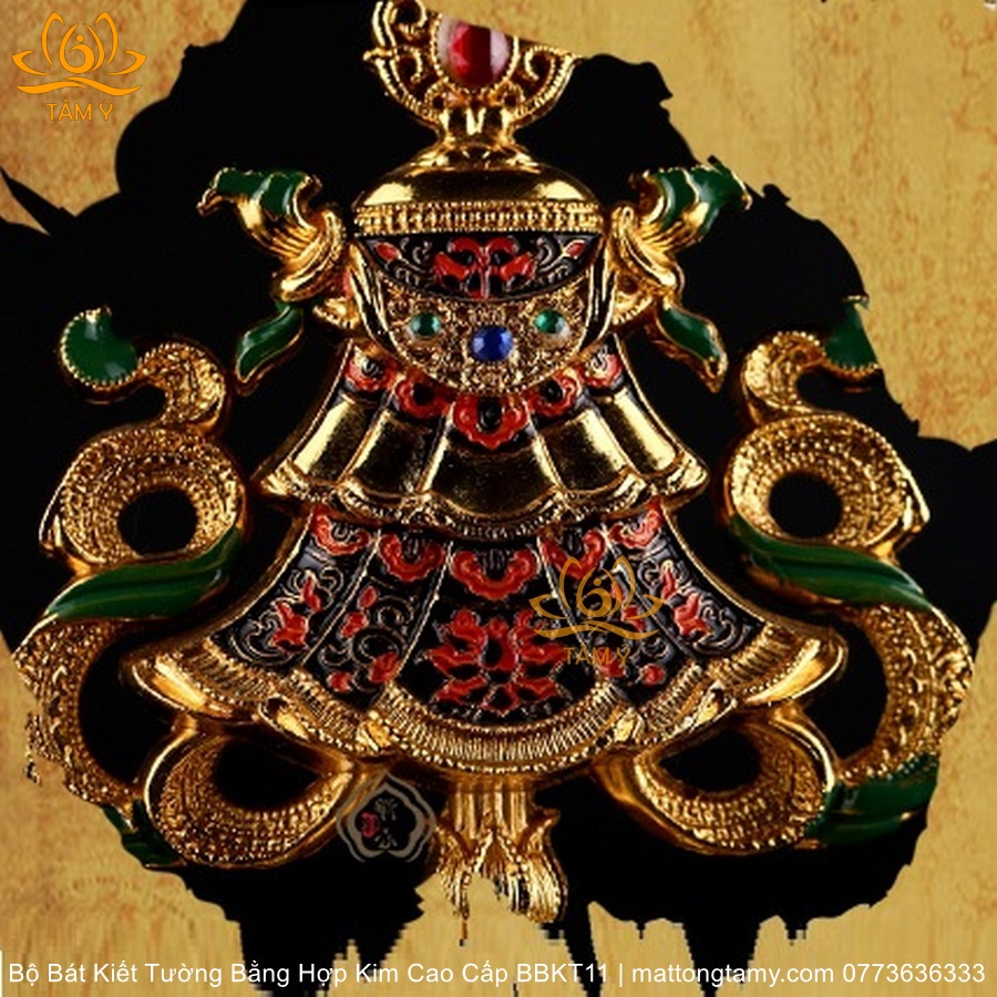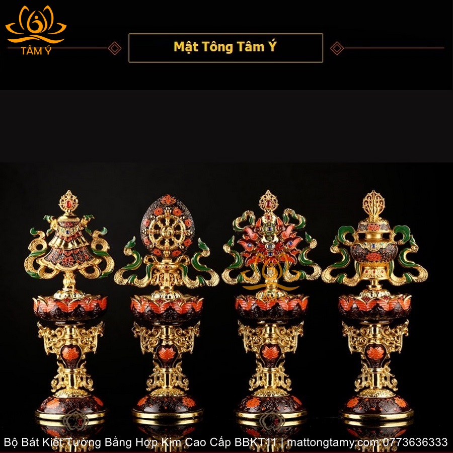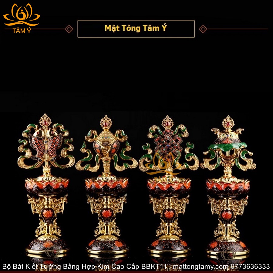 Bộ Bát Kiết Tường (Bát Đại Cát Tường - Tám Tướng Cát Tường) Bệ Sen Cao 24cm Bằng Hợp Kim Cao Cấp, Hoàn Thiện Thủ Công BBKT11