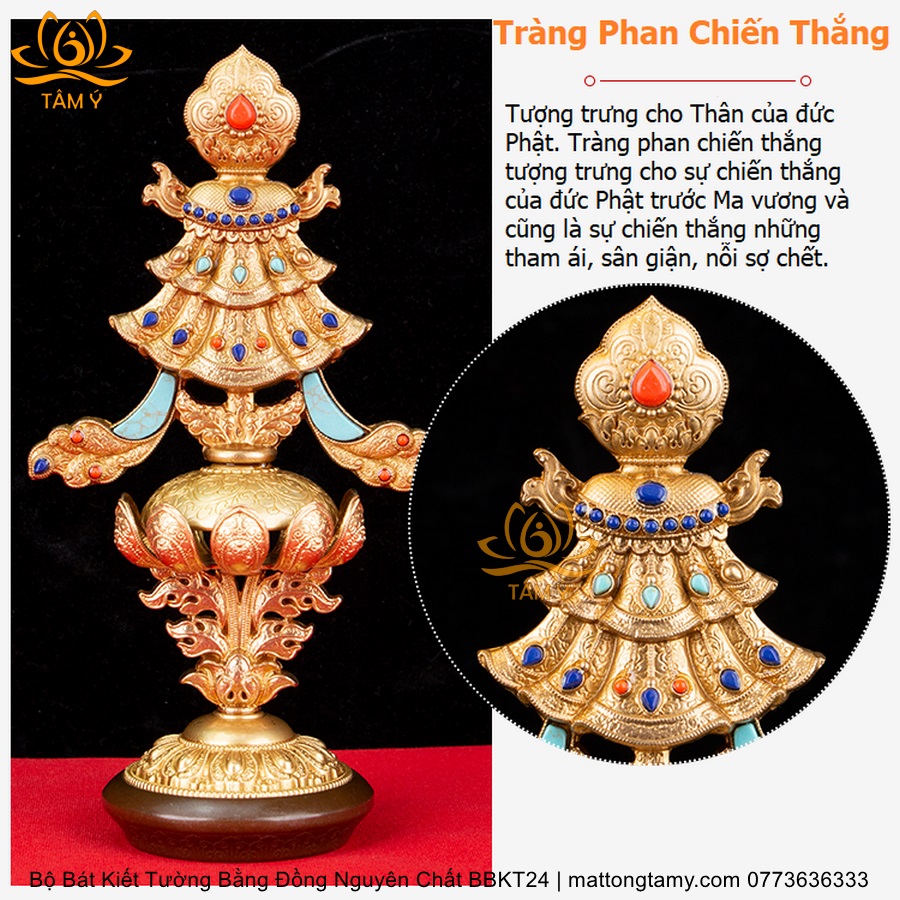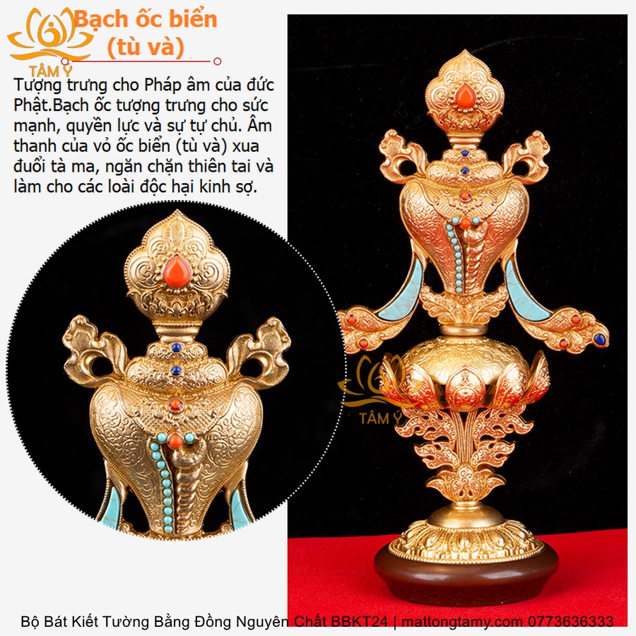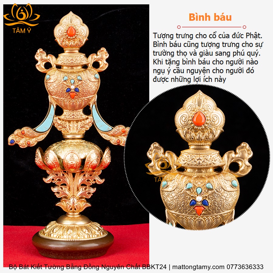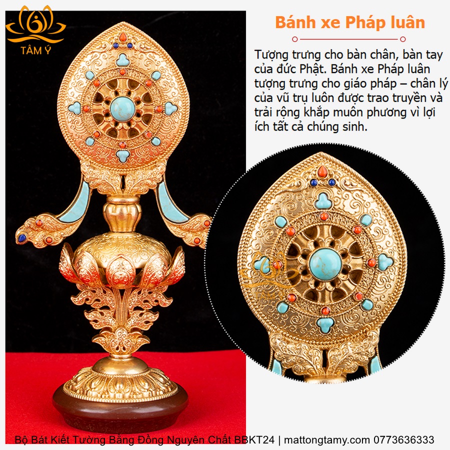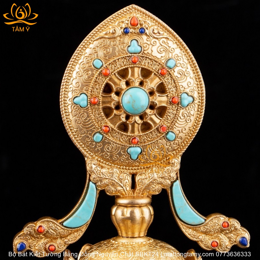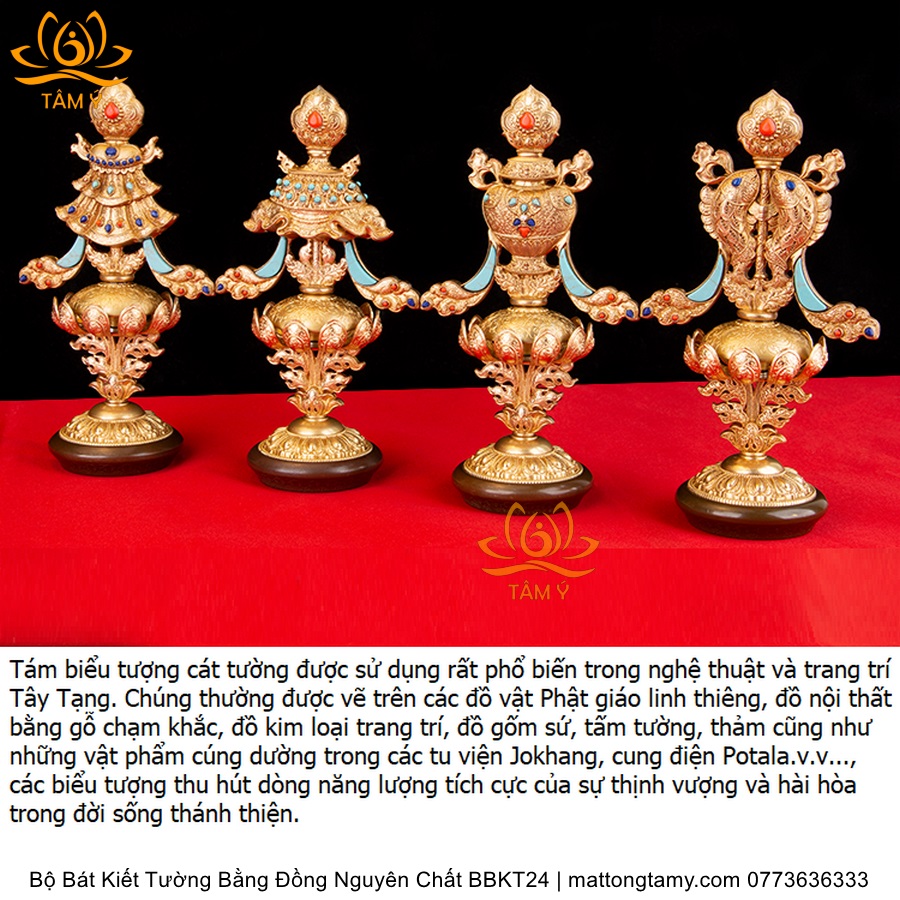 Bộ Bát Kiết Tường (Bát Đại Cát Tường - Tám Tướng Cát Tường) Bệ Sen Mạ Vàng Cao 16.5cm Bằng Đồng Nguyên Chất, Hoàn Thiện Thủ Công BBKT24