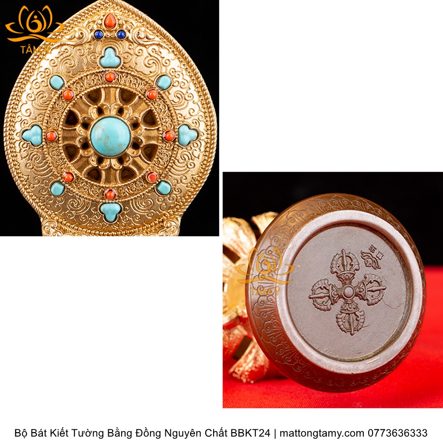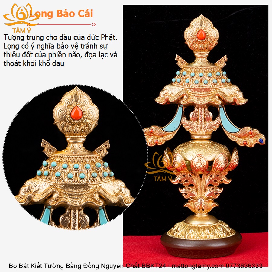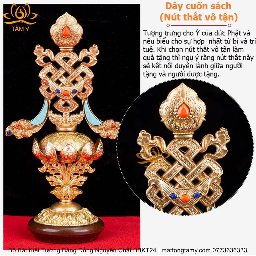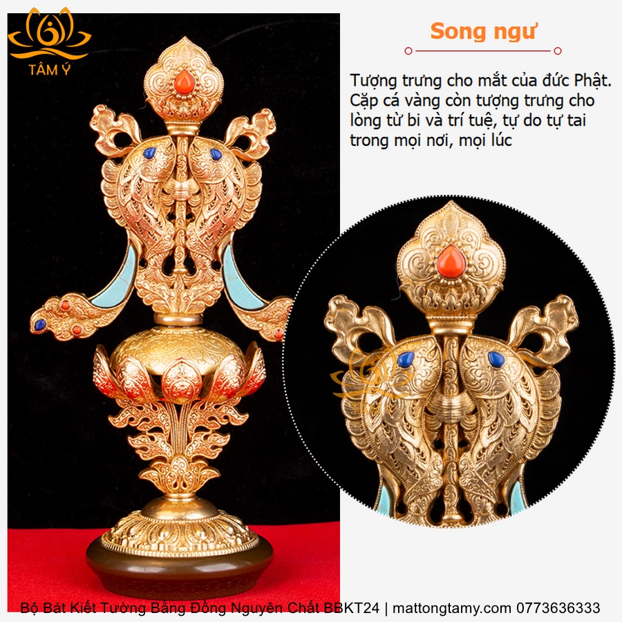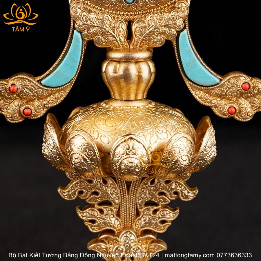 Bộ Bát Kiết Tường (Bát Đại Cát Tường - Tám Tướng Cát Tường) Bệ Sen Mạ Vàng Cao 16.5cm Bằng Đồng Nguyên Chất, Hoàn Thiện Thủ Công BBKT24