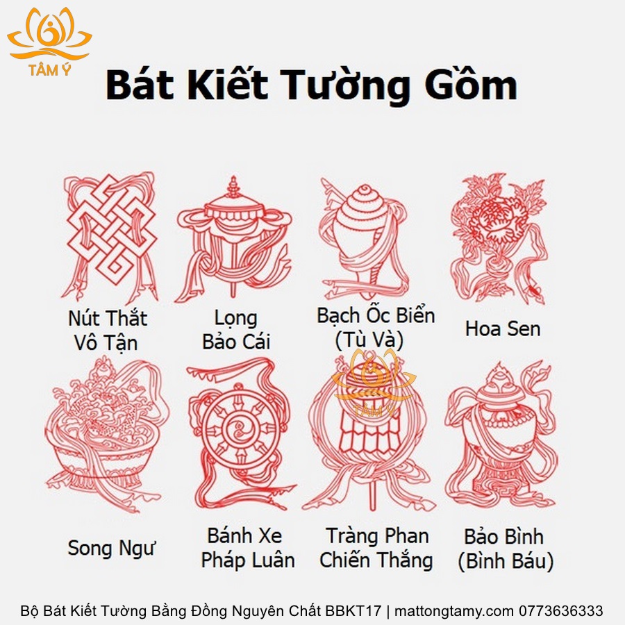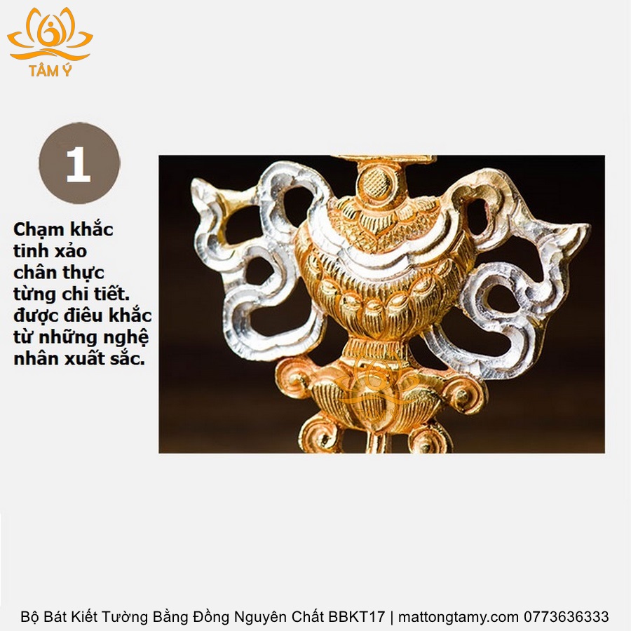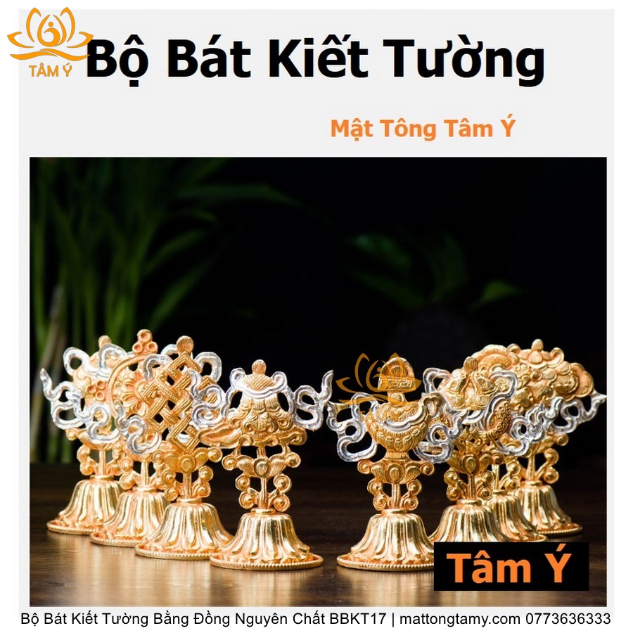Bộ Bát Kiết Tường (Bát Đại Cát Tường - Tám Tướng Cát Tường) Cao 11.6cm Bằng Đồng Nguyên Chất, Hoàn Thiện Thủ Công BBKT17