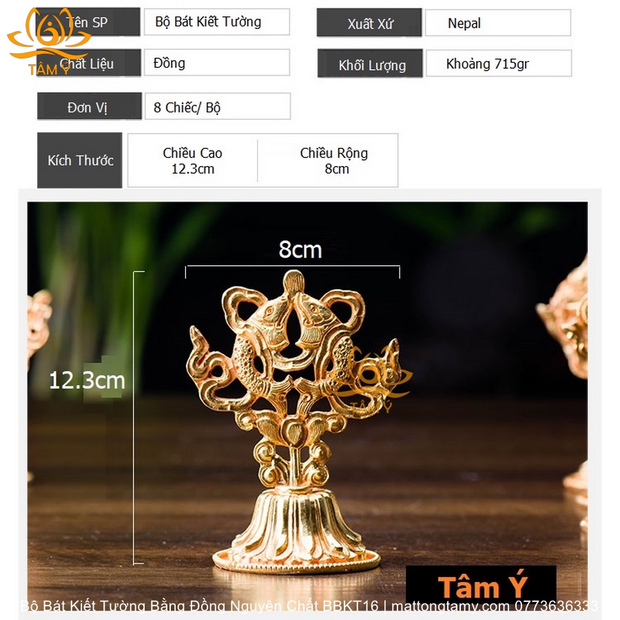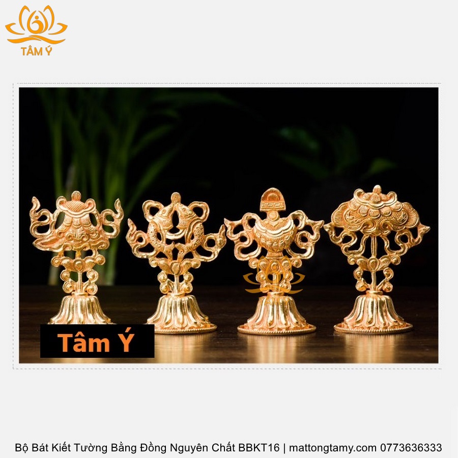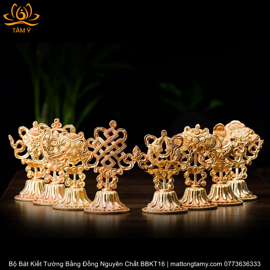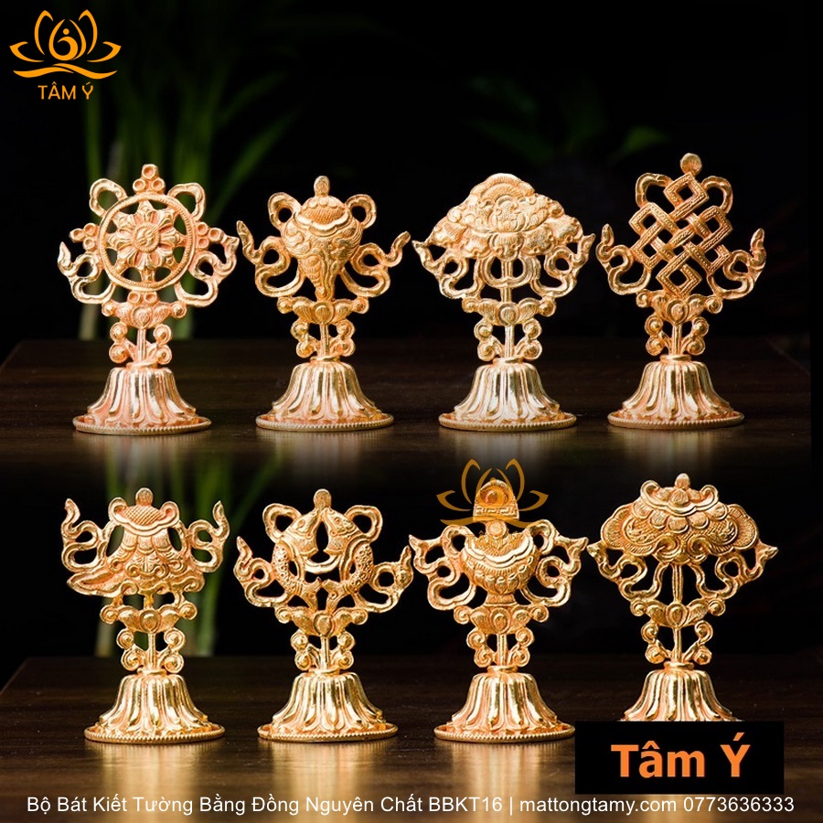 Bộ Bát Kiết Tường (Bát Đại Cát Tường - Tám Tướng Cát Tường) Cao 12,5cm Bằng Đồng Nguyên Chất, Hoàn Thiện Thủ Công BBKT16