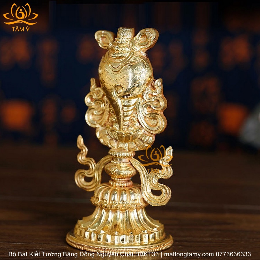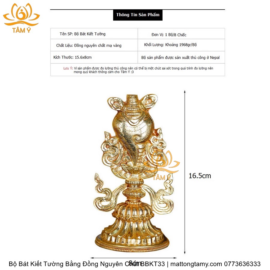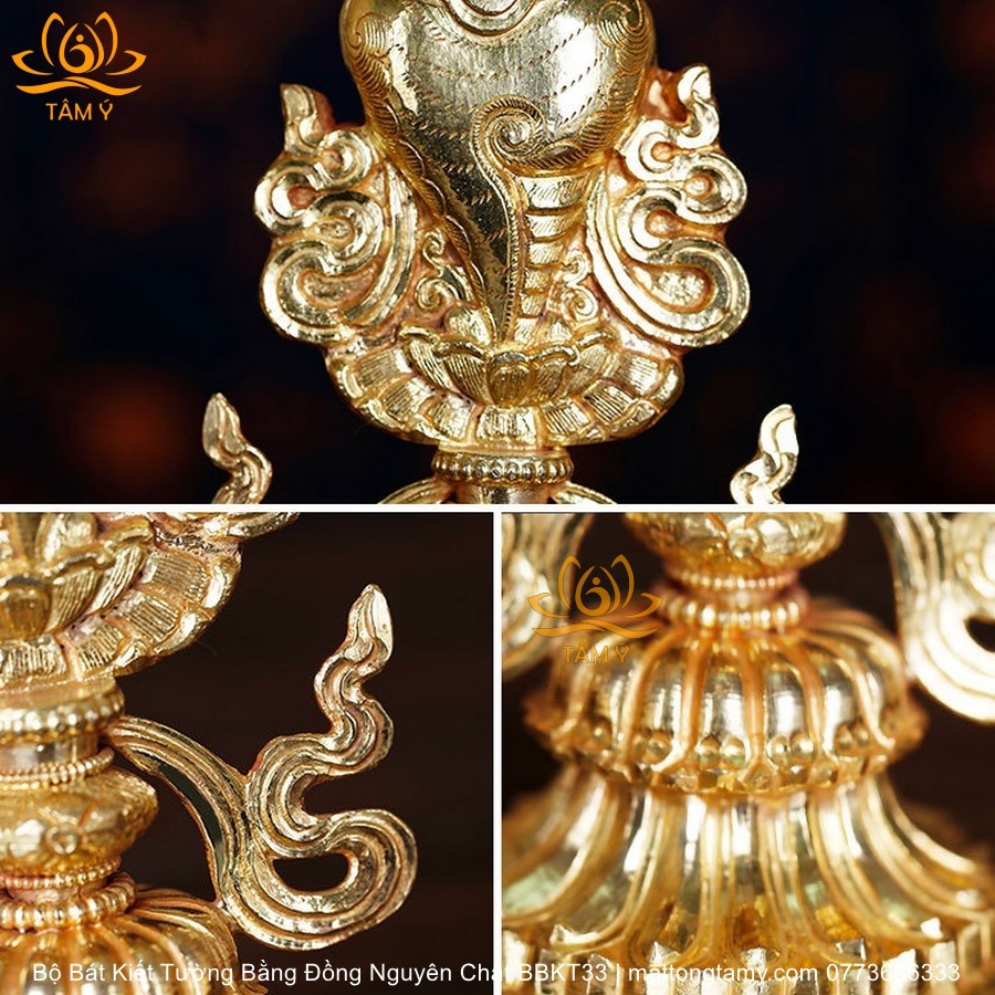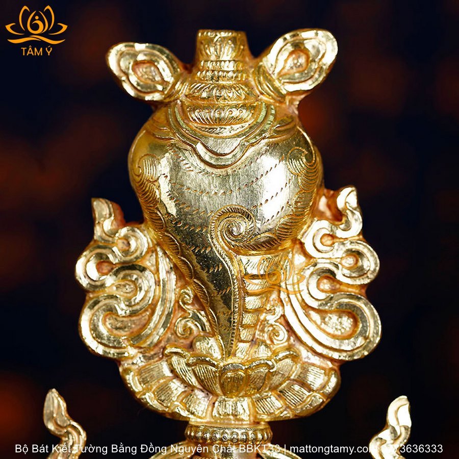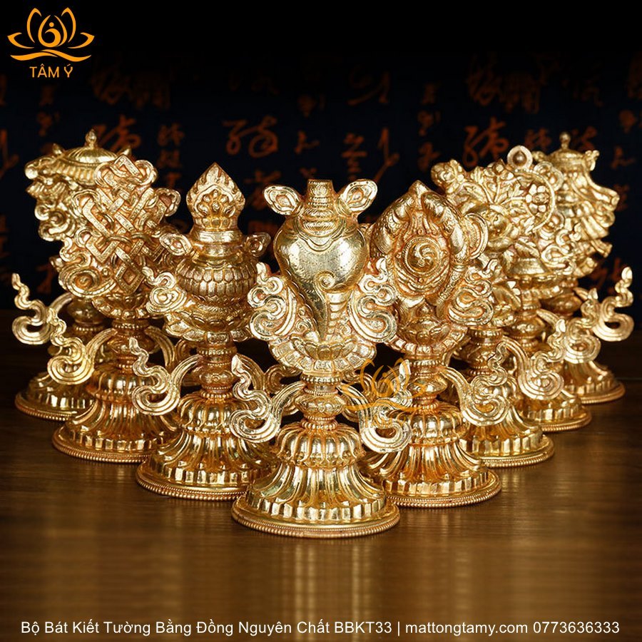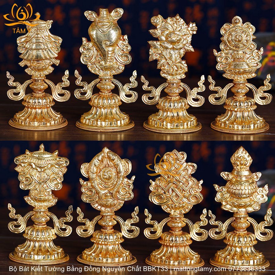 Bộ Bát Kiết Tường (Bát Đại Cát Tường - Tám Tướng Cát Tường) Cao 15.6cm Bằng Đồng Nguyên Chất Mạ Vàng, Hoàn Thiện Thủ Công BBKT33