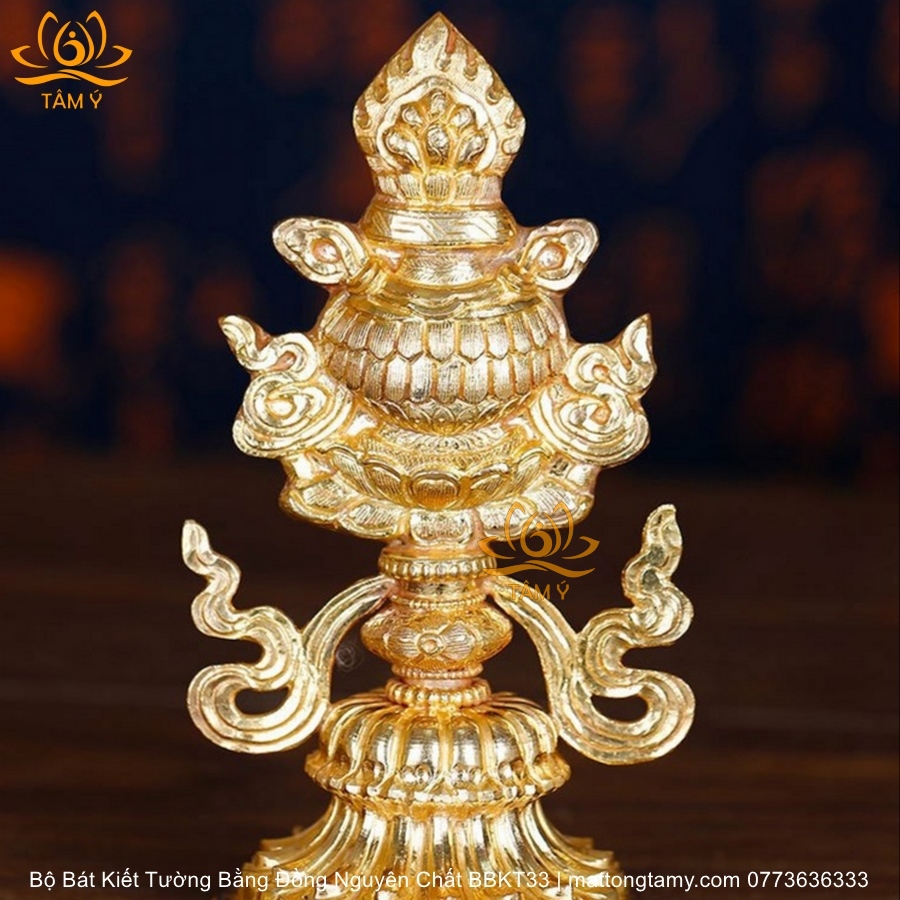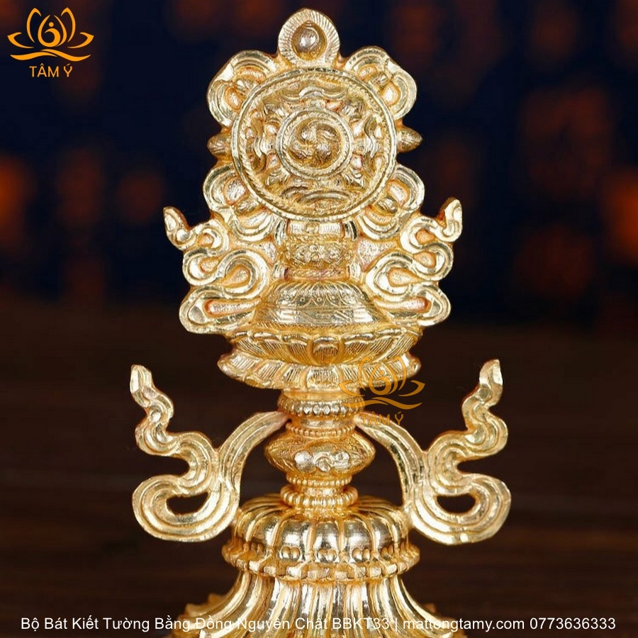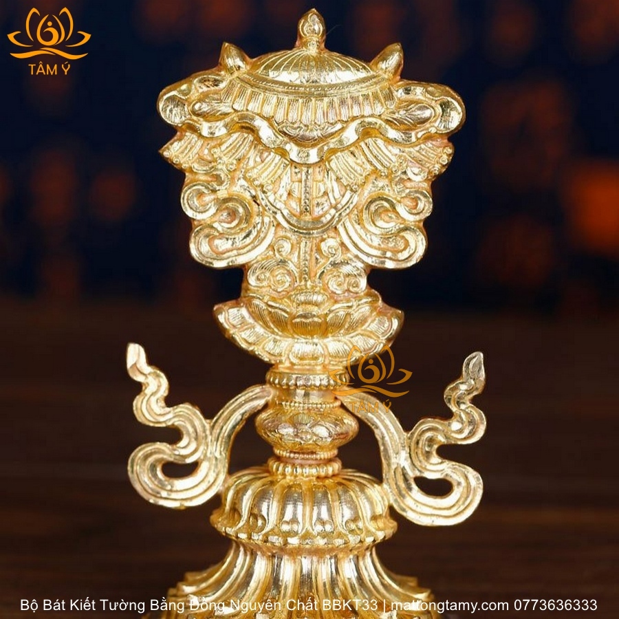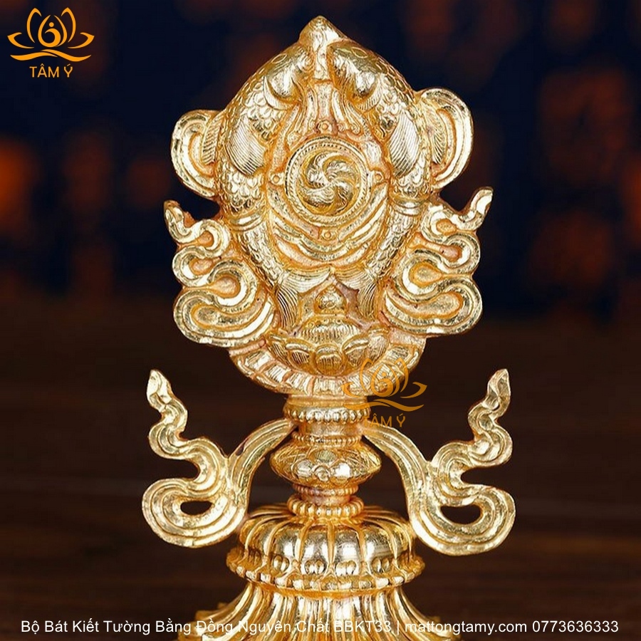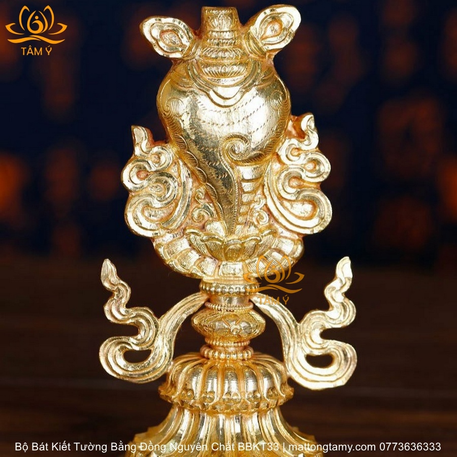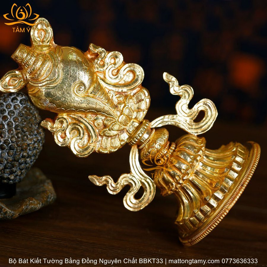 Bộ Bát Kiết Tường (Bát Đại Cát Tường - Tám Tướng Cát Tường) Cao 15.6cm Bằng Đồng Nguyên Chất Mạ Vàng, Hoàn Thiện Thủ Công BBKT33