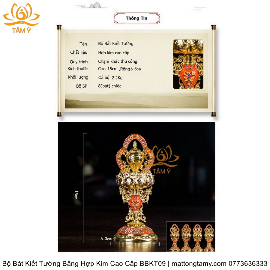 Bộ Bát Kiết Tường (Bát Đại Cát Tường - Tám Tướng Cát Tường) Cao 15cm Bằng Hợp Kim Cao Cấp, Hoàn Thiện Thủ Công BBKT09