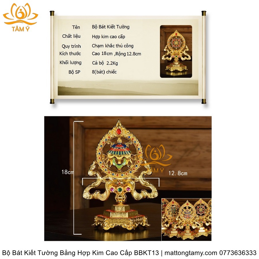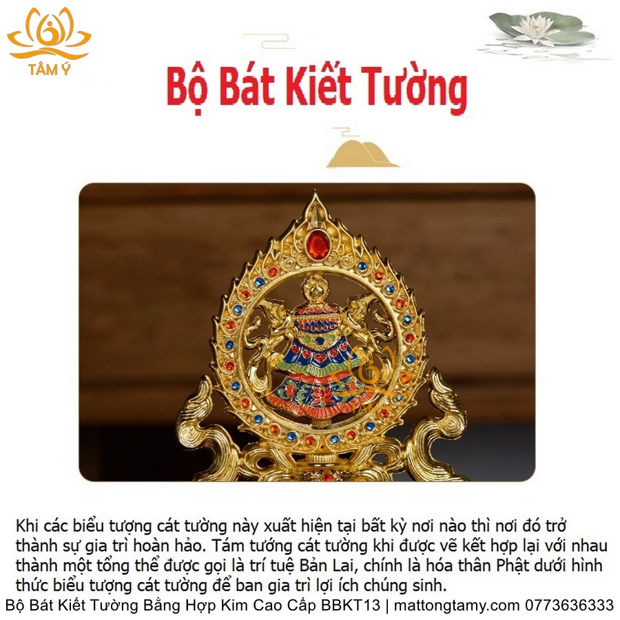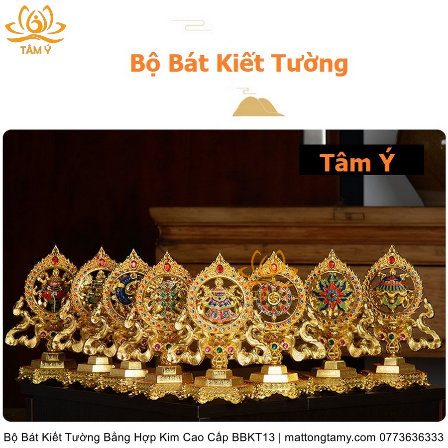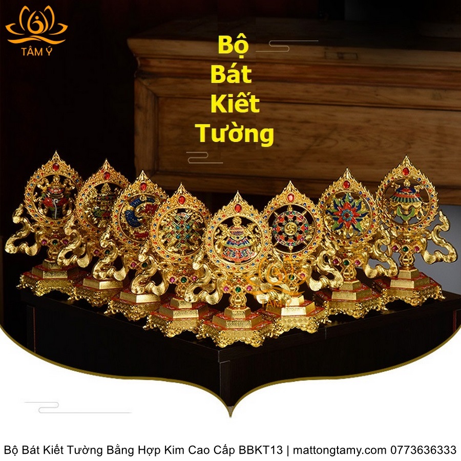 Bộ Bát Kiết Tường (Bát Đại Cát Tường - Tám Tướng Cát Tường) Cao 18cm Bằng Hợp Kim Cao Cấp, Hoàn Thiện Thủ Công BBKT13