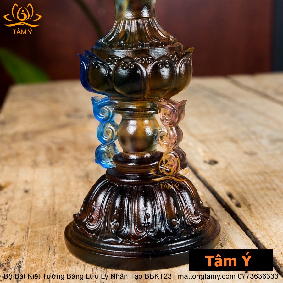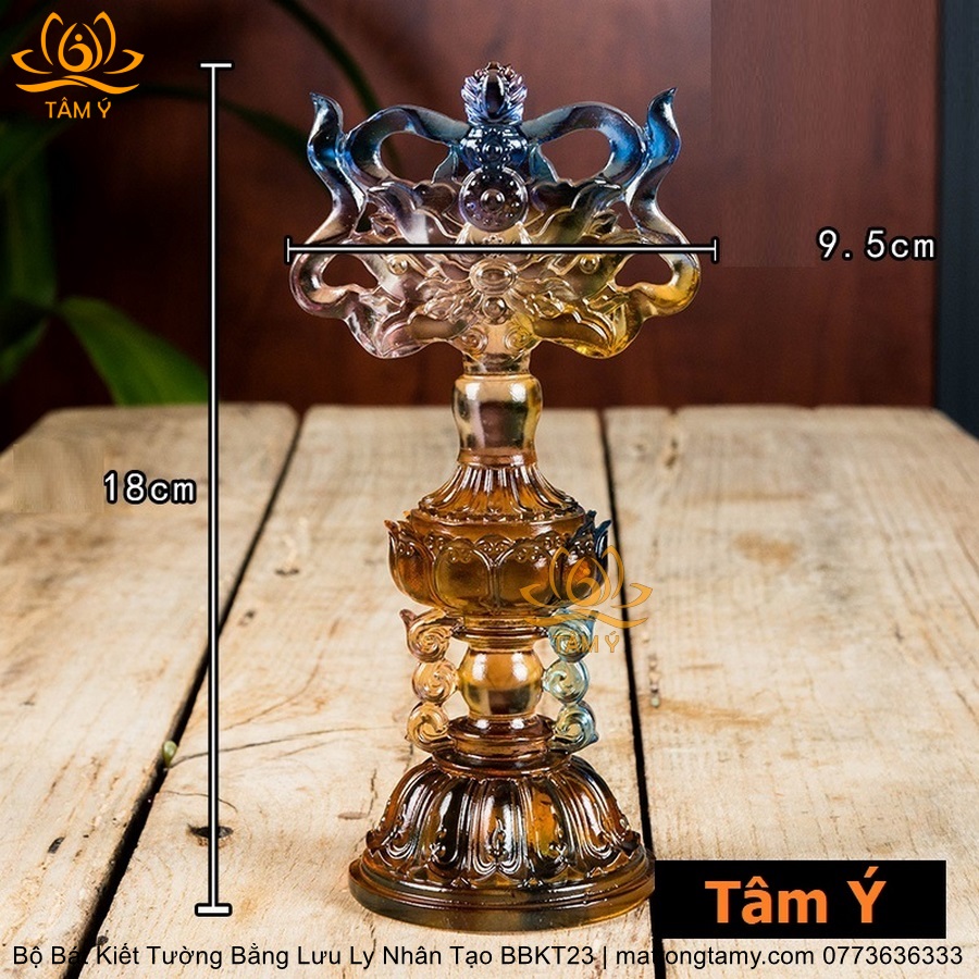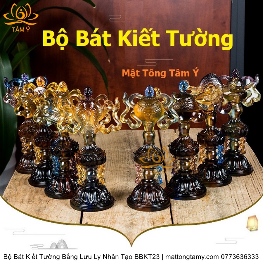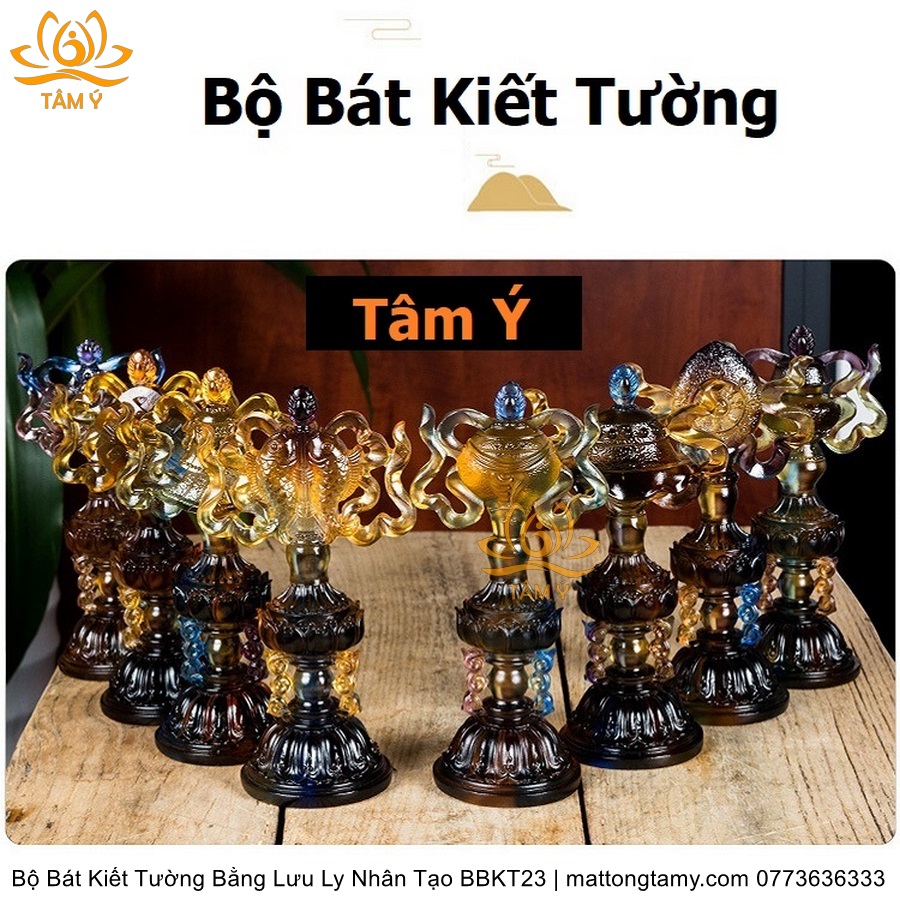 Bộ Bát Kiết Tường (Bát Đại Cát Tường - Tám Tướng Cát Tường) Cao 18cm Bằng Lưu Ly Nhân Tạo, Hoàn Thiện Thủ Công BBKT23