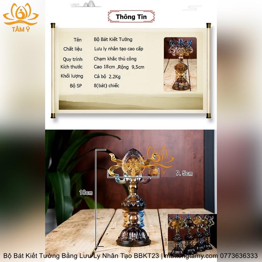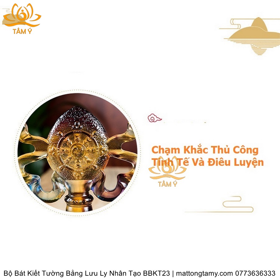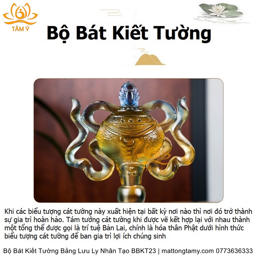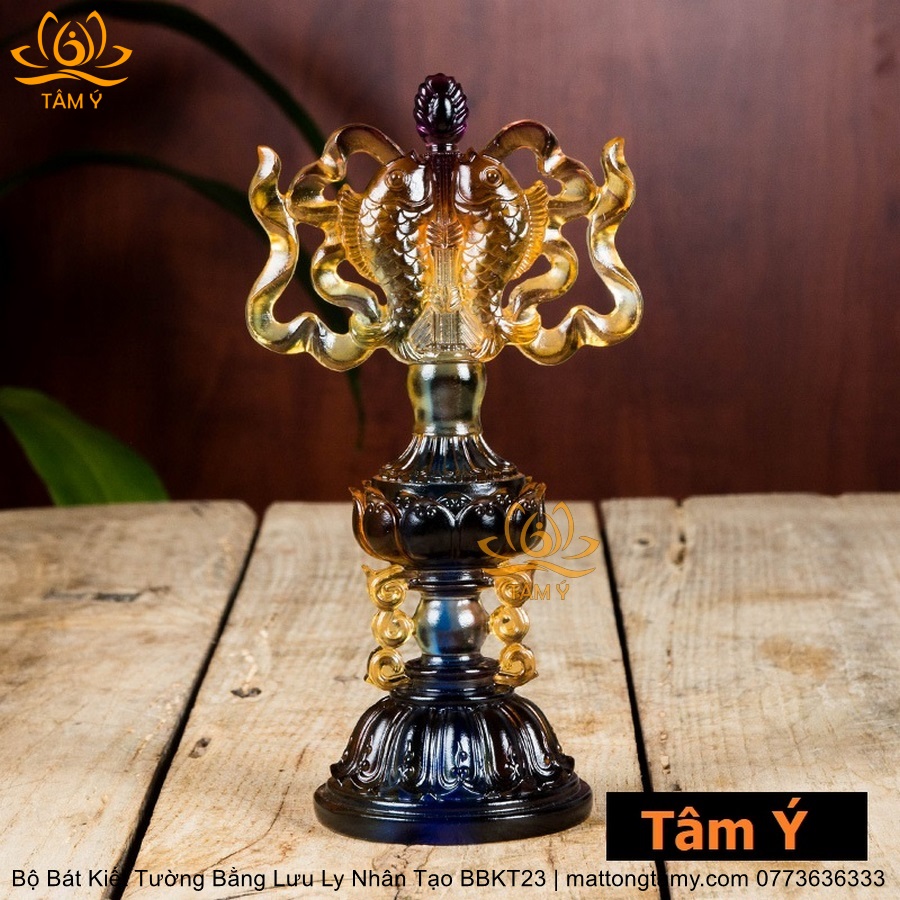 Bộ Bát Kiết Tường (Bát Đại Cát Tường - Tám Tướng Cát Tường) Cao 18cm Bằng Lưu Ly Nhân Tạo, Hoàn Thiện Thủ Công BBKT23