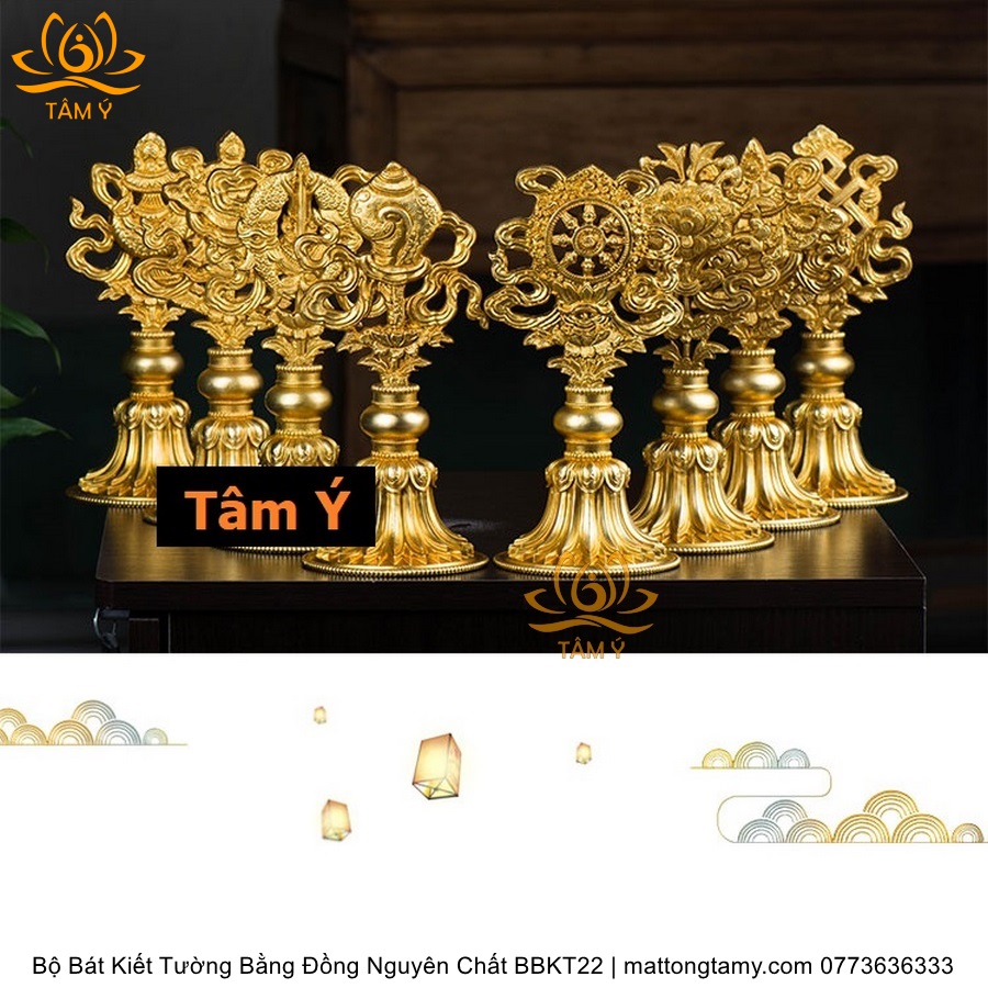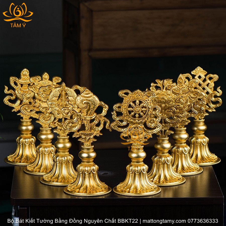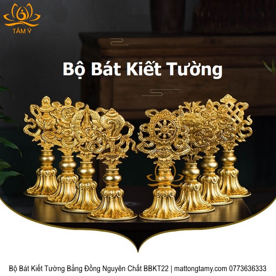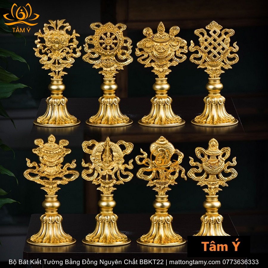 Bộ Bát Kiết Tường (Bát Đại Cát Tường - Tám Tướng Cát Tường) Cao 20.5cm Bằng Đồng Nguyên Chất, Hoàn Thiện Thủ Công BBKT22