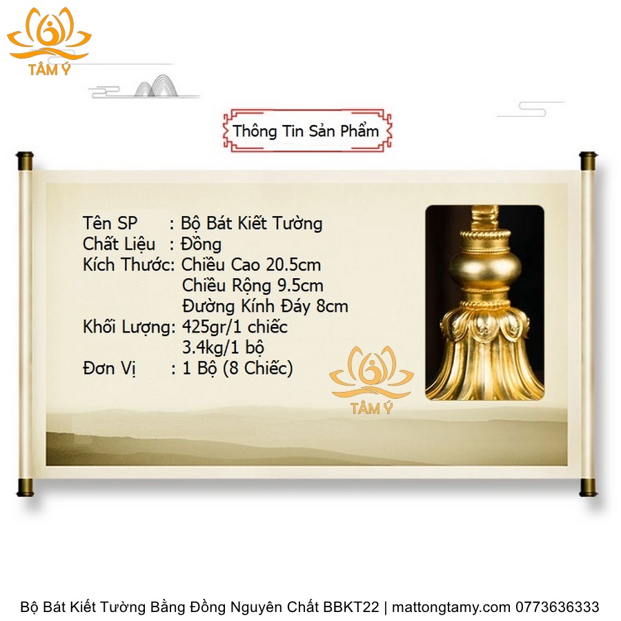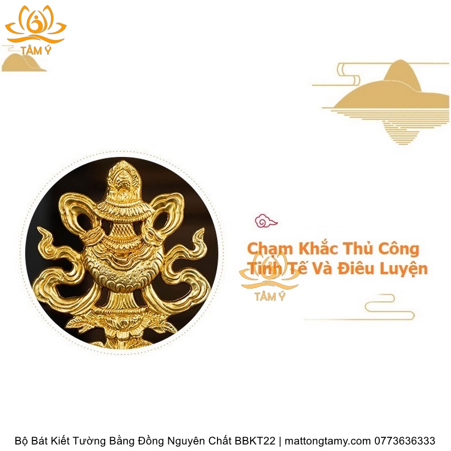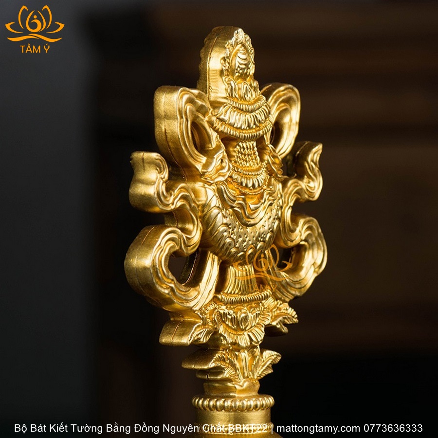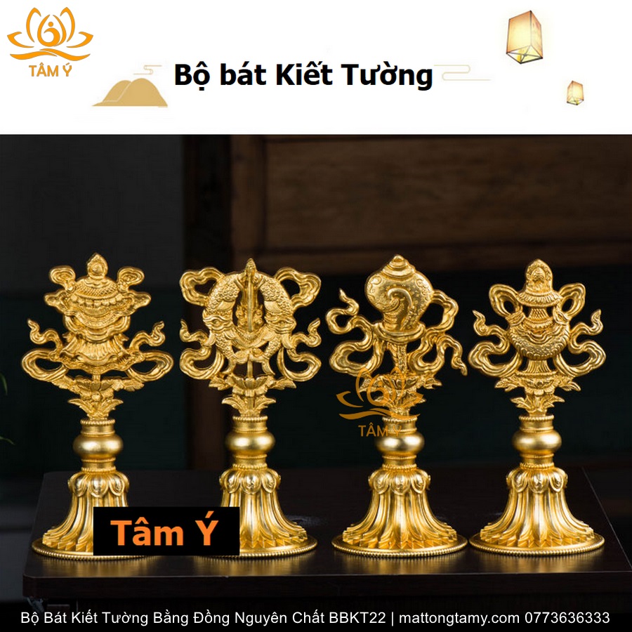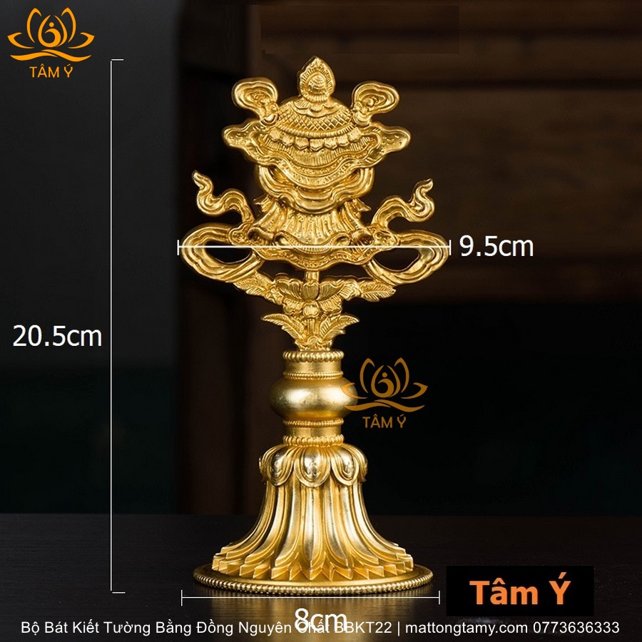 Bộ Bát Kiết Tường (Bát Đại Cát Tường - Tám Tướng Cát Tường) Cao 20.5cm Bằng Đồng Nguyên Chất, Hoàn Thiện Thủ Công BBKT22