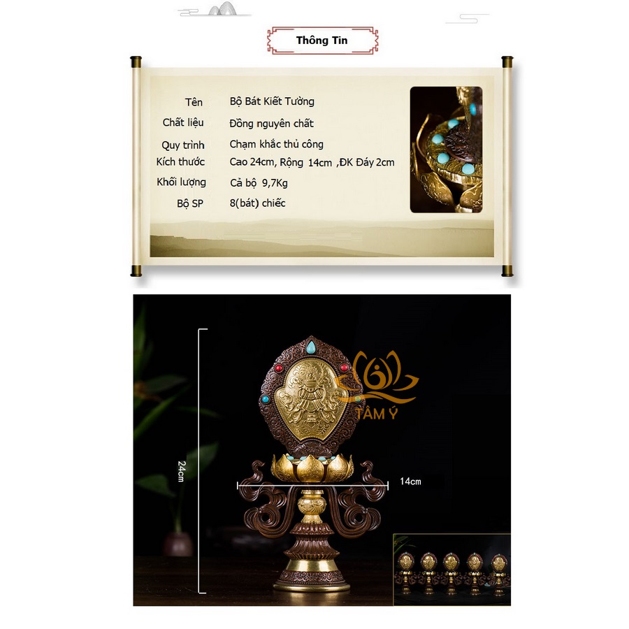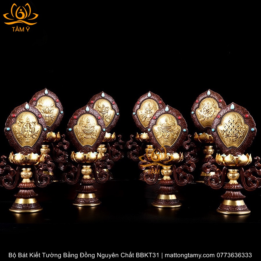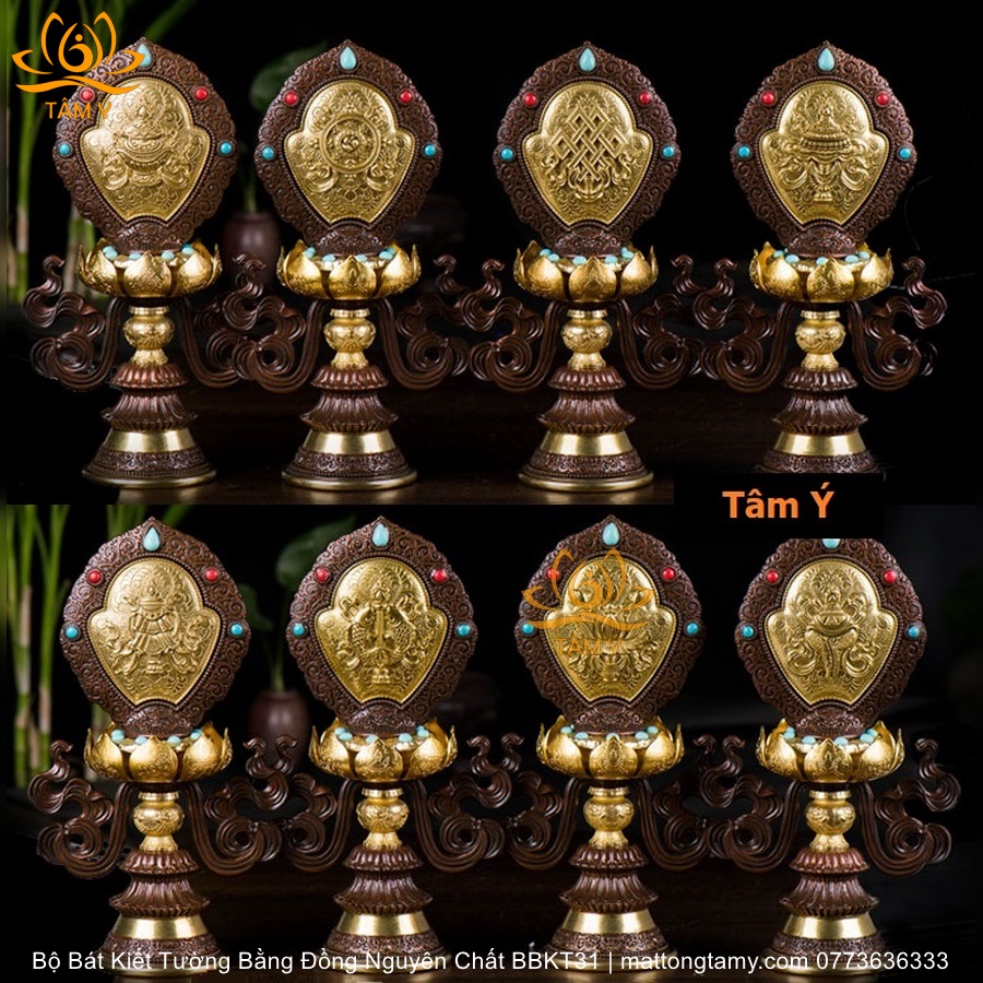 Bộ Bát Kiết Tường (Bát Đại Cát Tường - Tám Tướng Cát Tường) Cao 24cm Bằng Đồng Nguyên Chất, Hoàn Thiện Thủ Công BBKT31