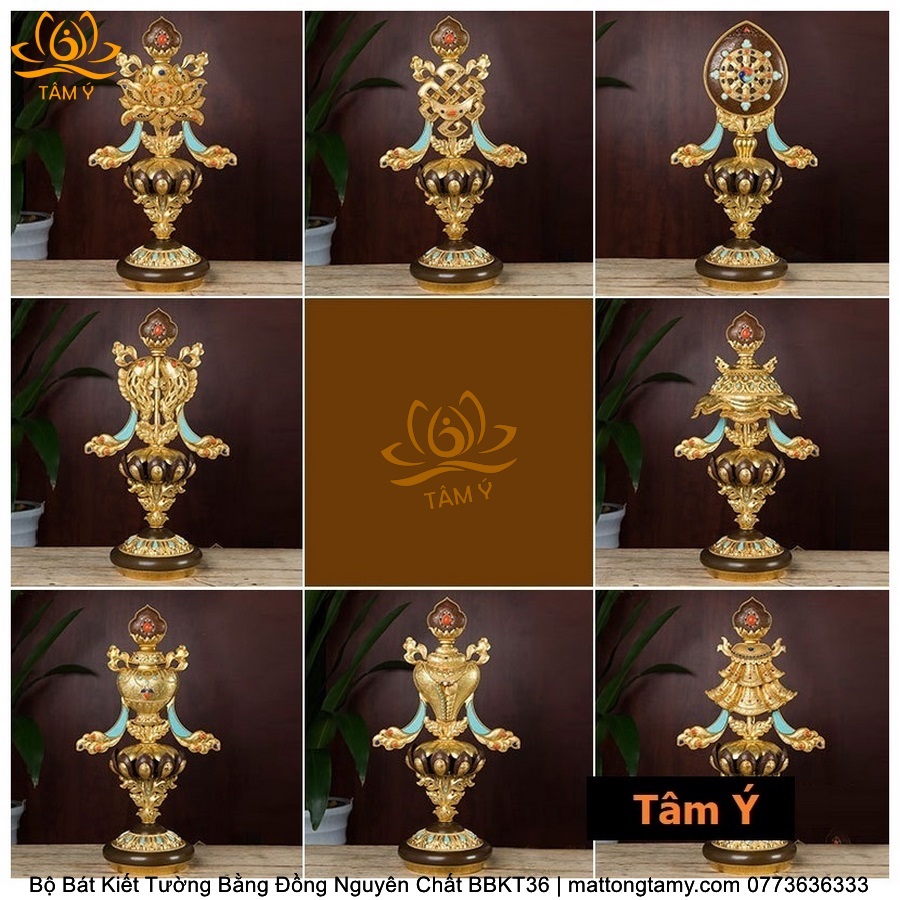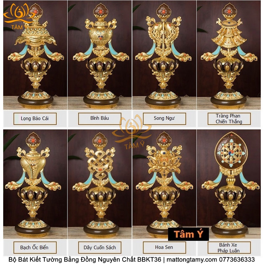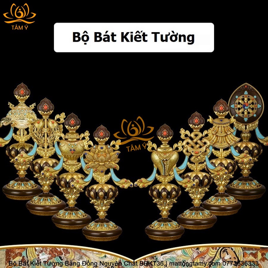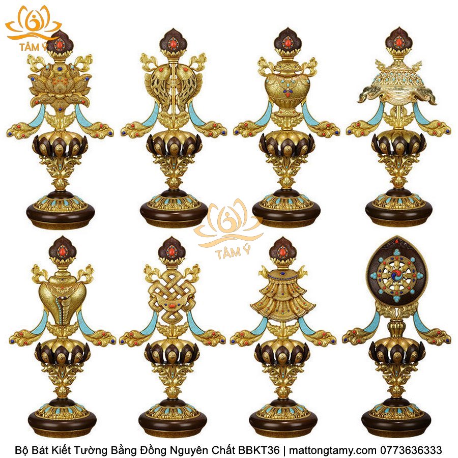 Bộ Bát Kiết Tường (Bát Đại Cát Tường - Tám Tướng Cát Tường) Cao 49cm Bằng Đồng Thau, Hoàn Thiện Thủ Công BBKT36